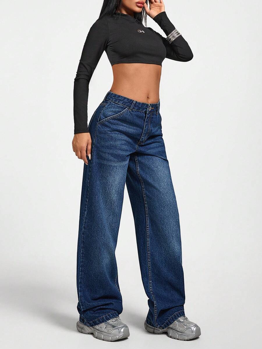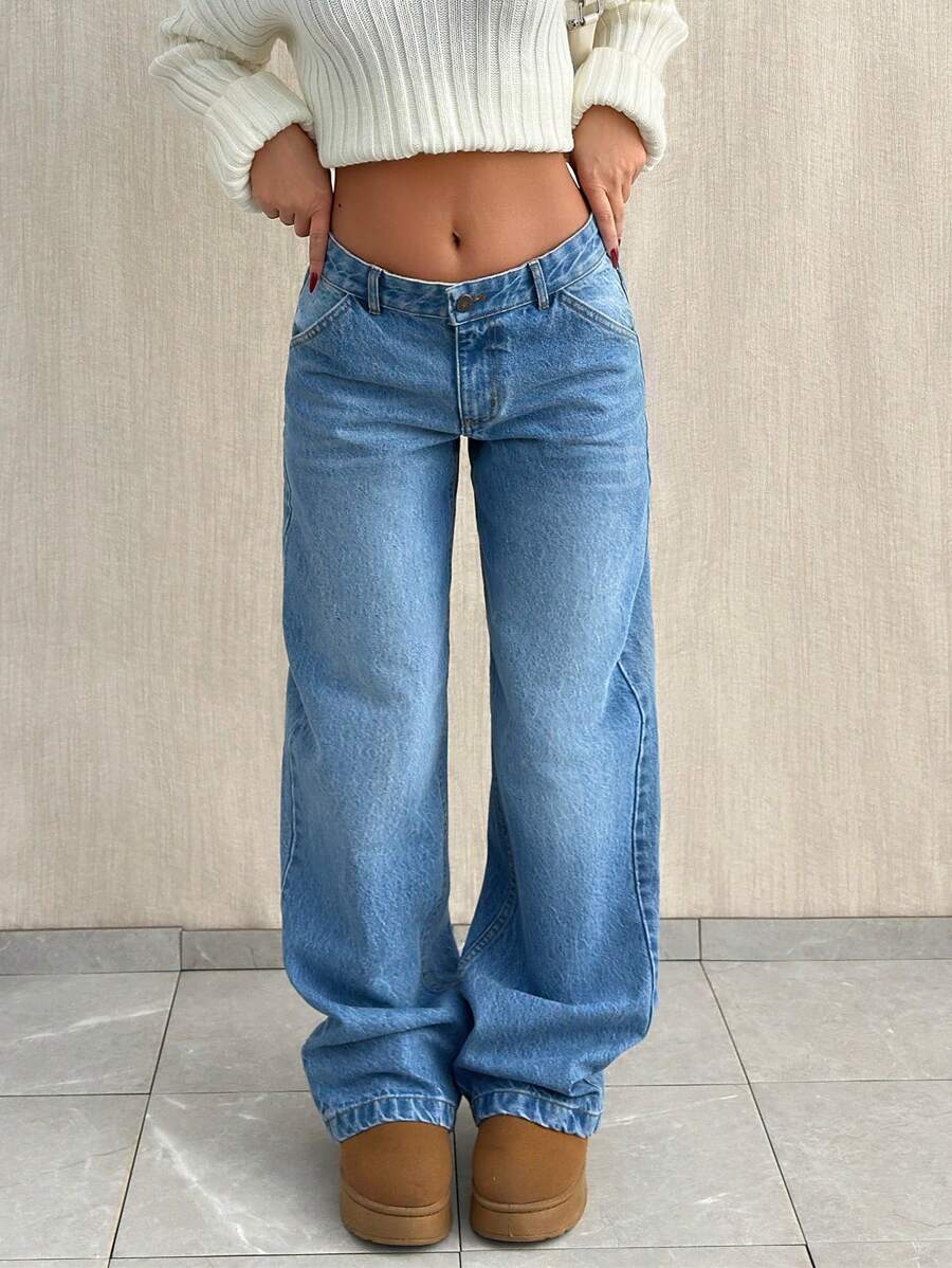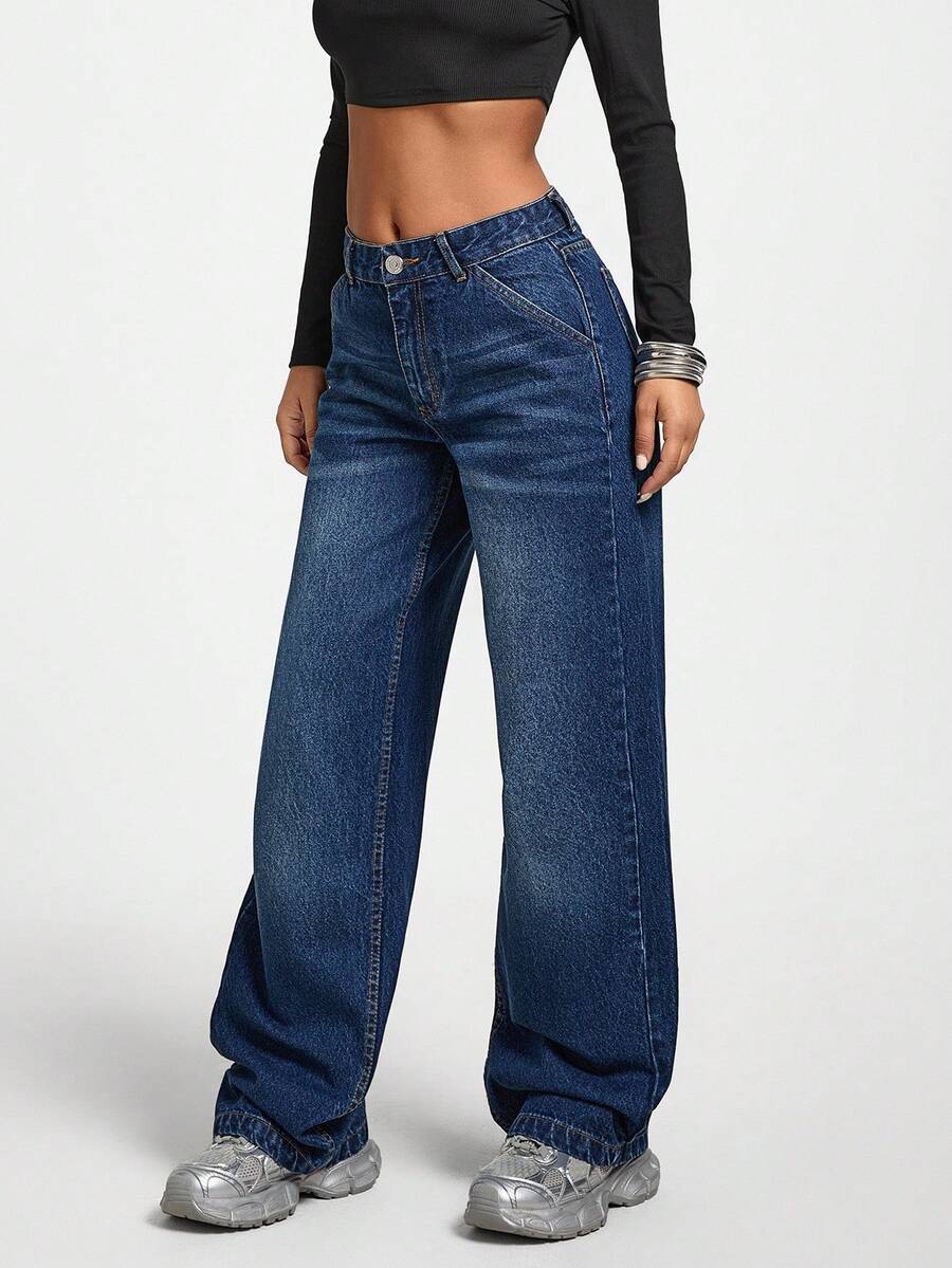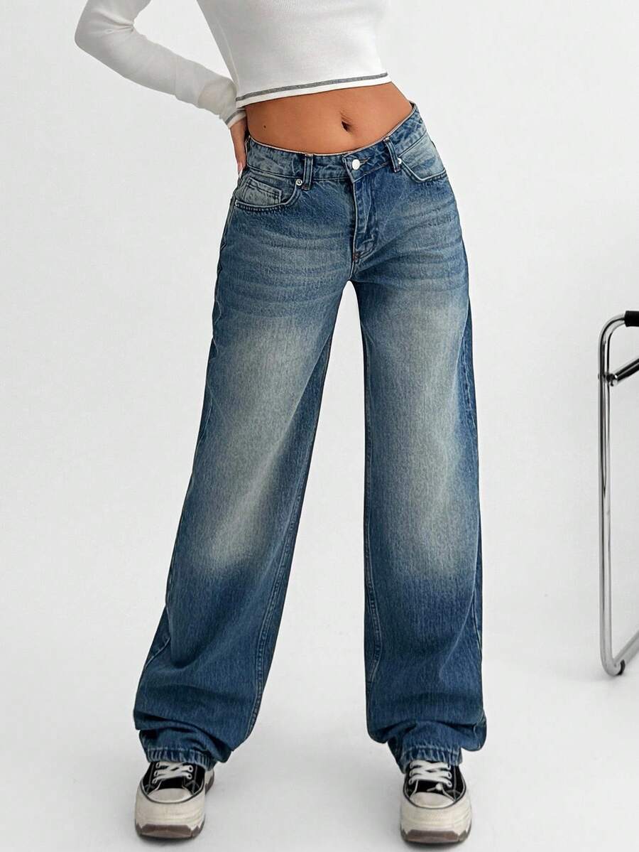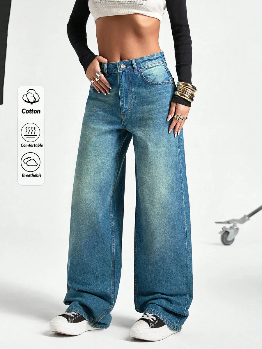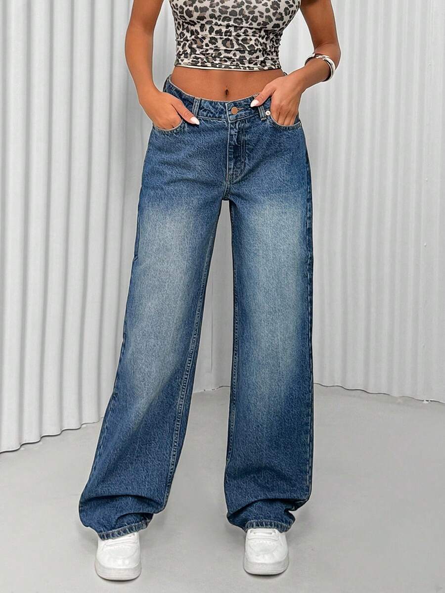 Jeans casual larghi a vita media e gamba dritta da donna