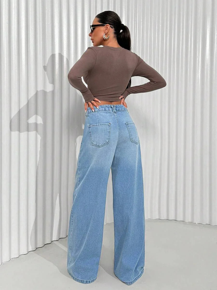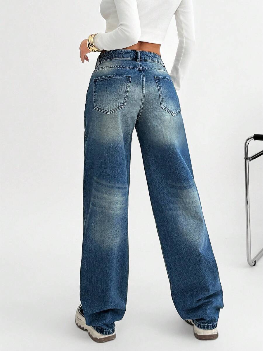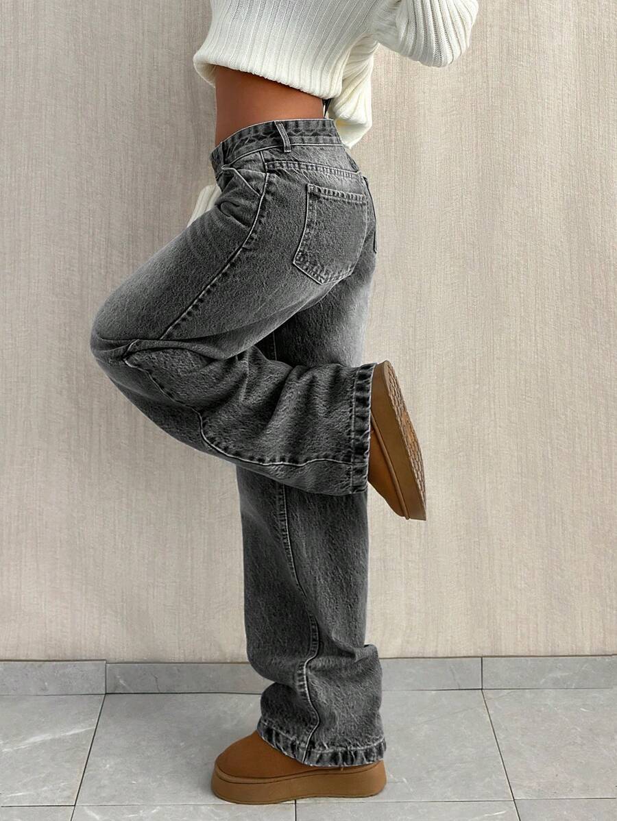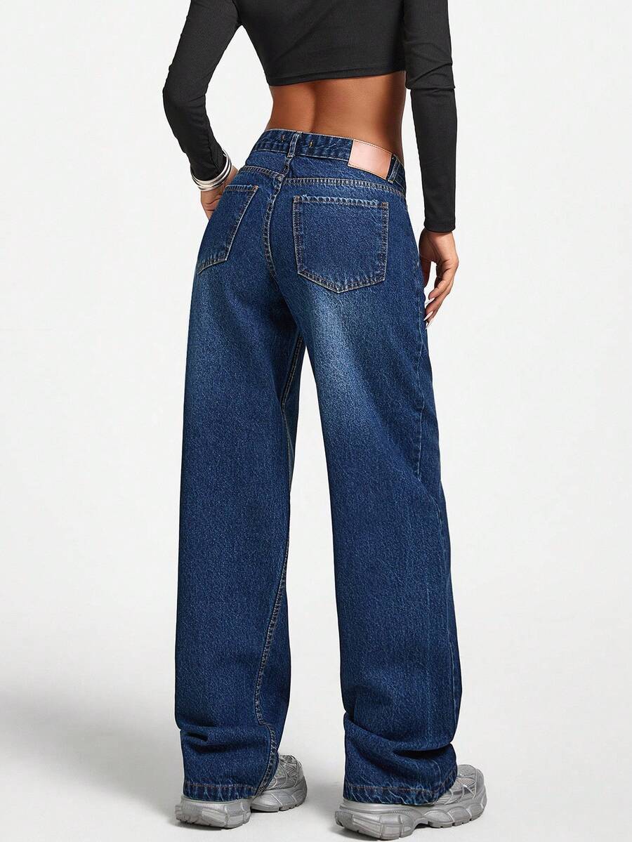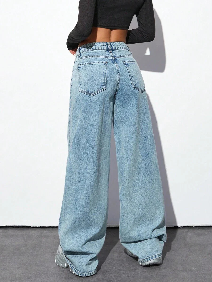 Jeans casual larghi a vita media e gamba dritta da donna