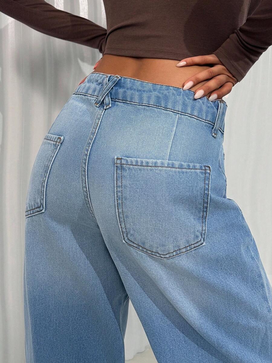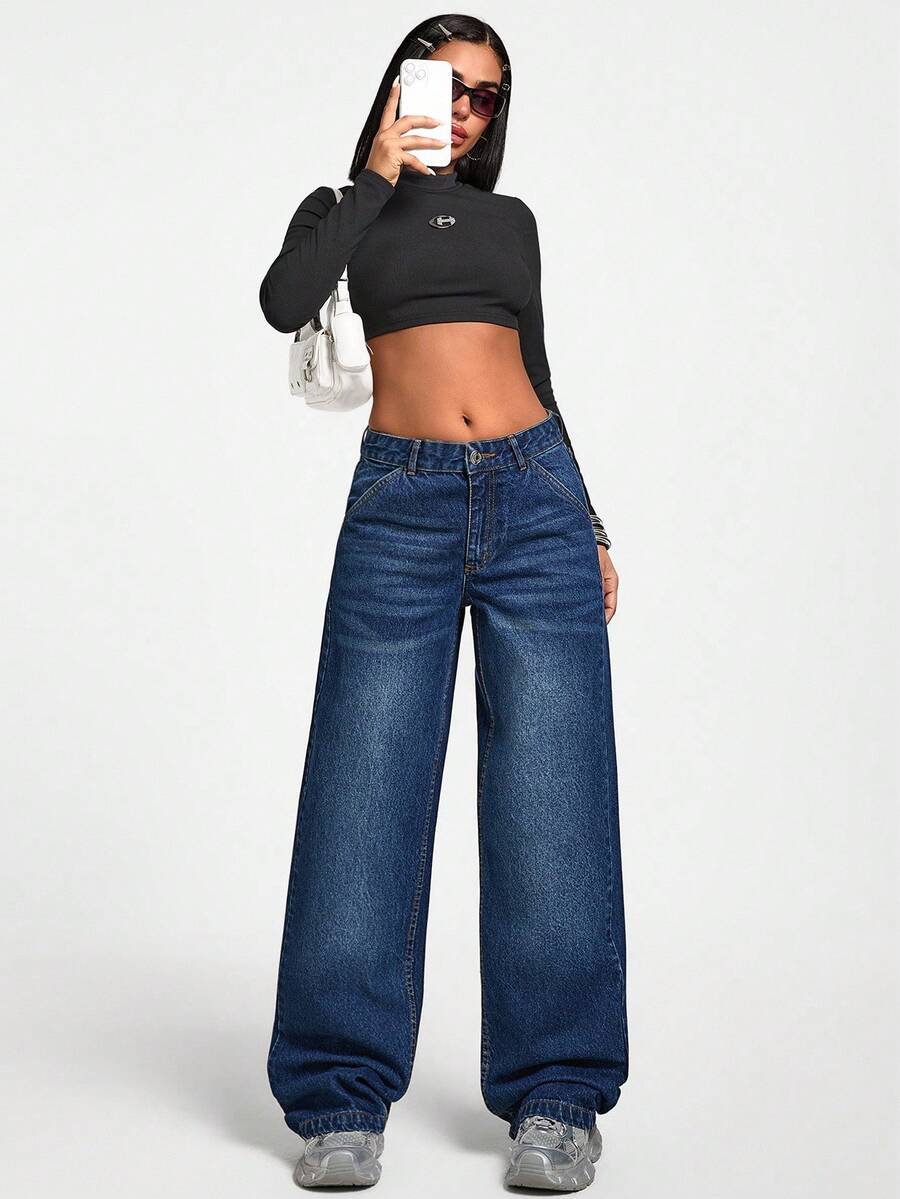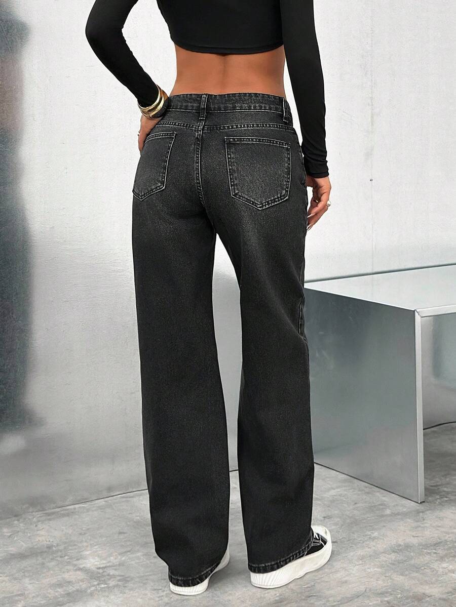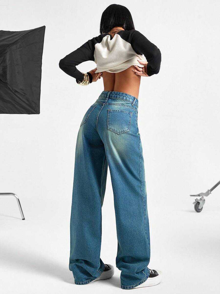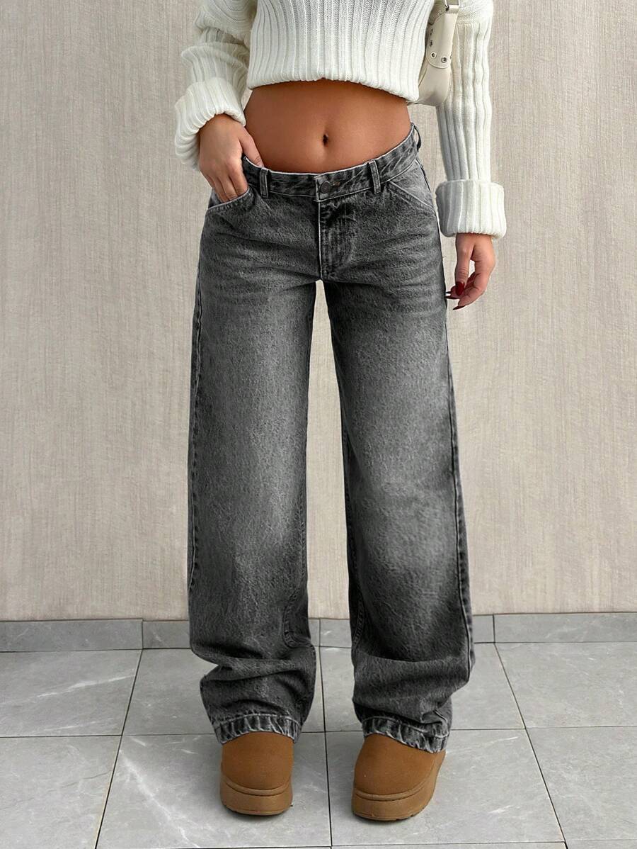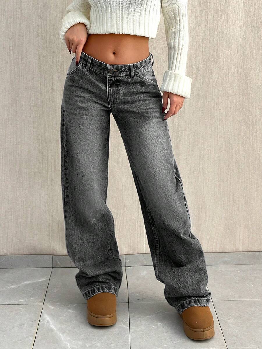 Jeans casual larghi a vita media e gamba dritta da donna