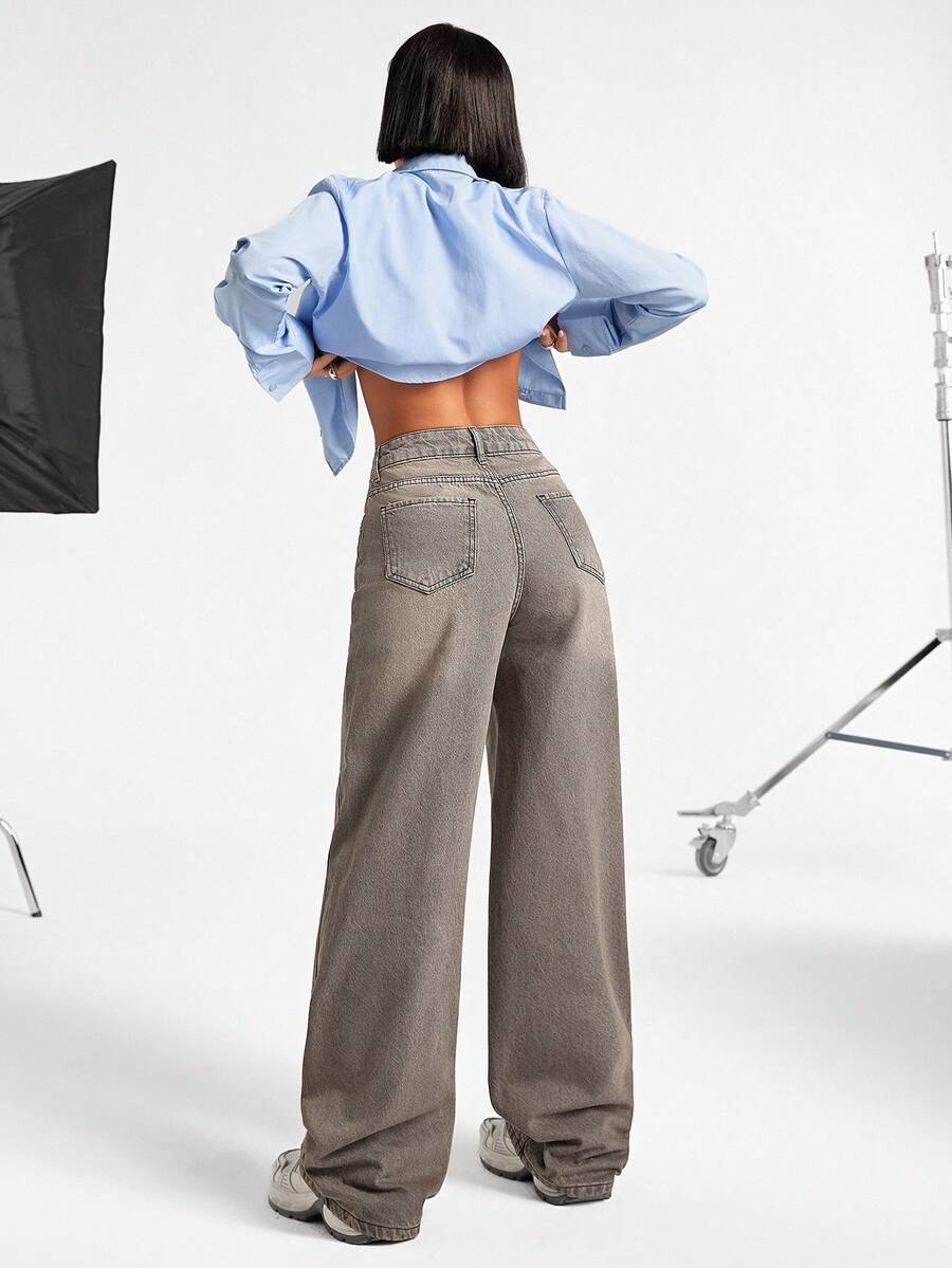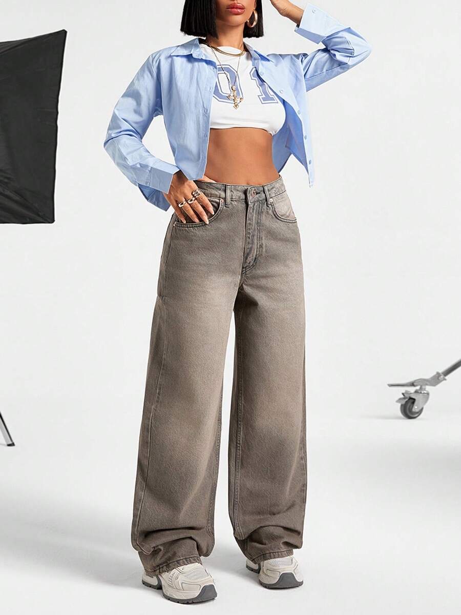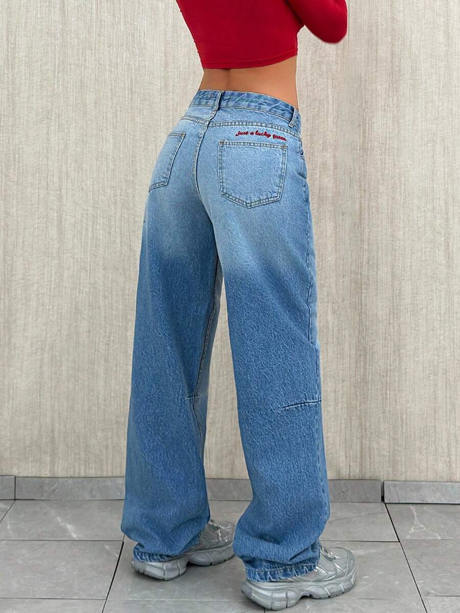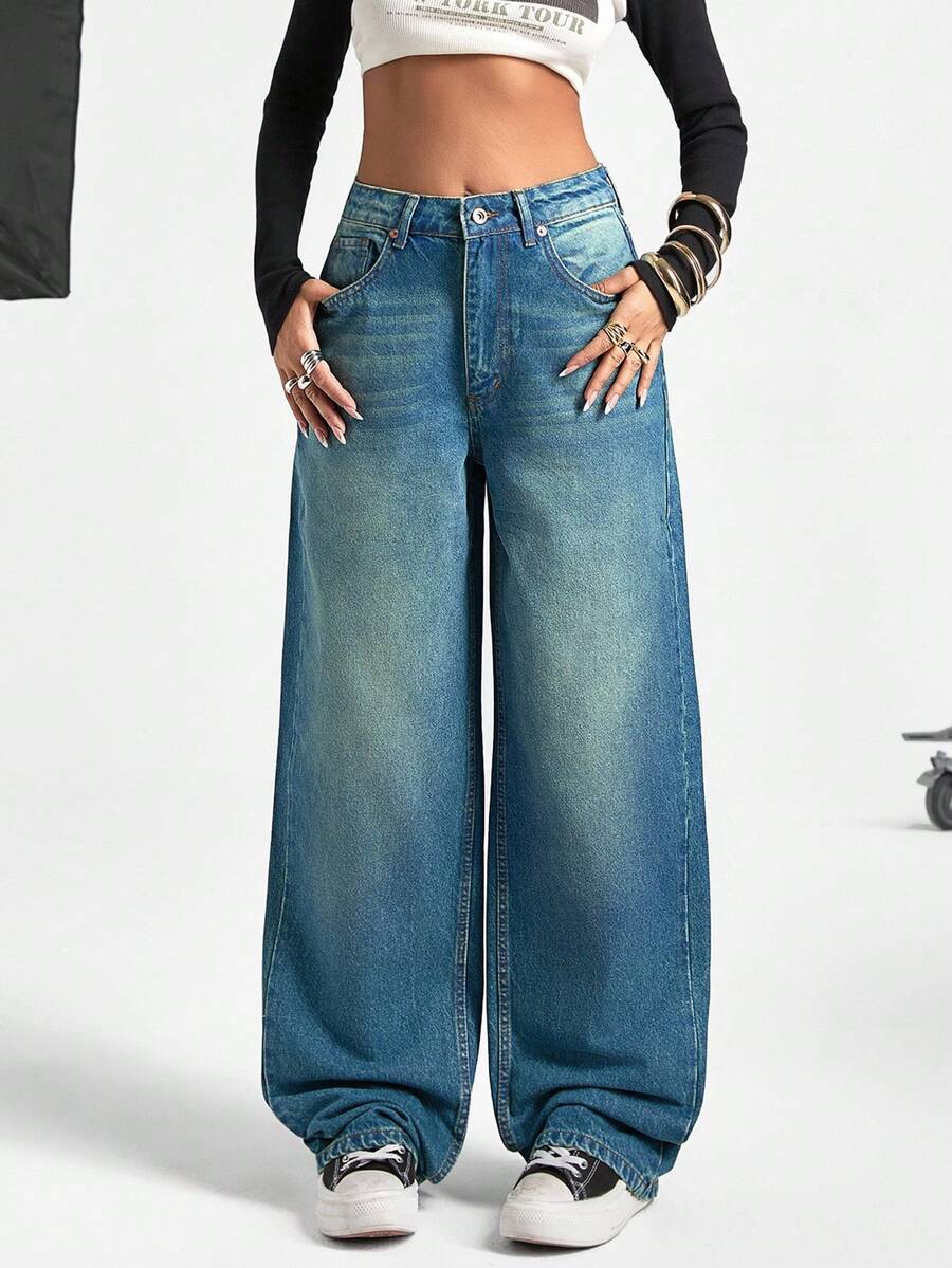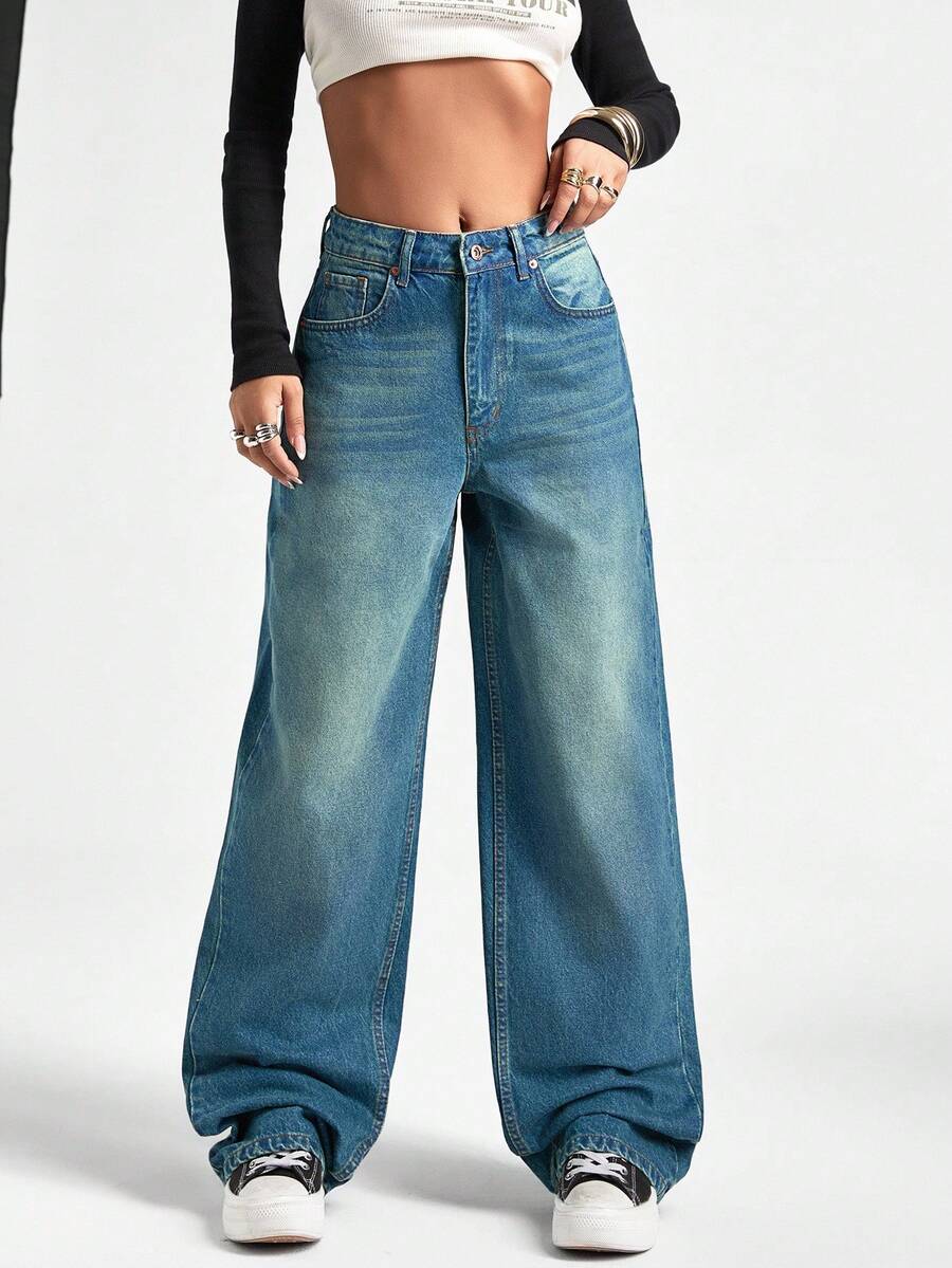 Jeans casual larghi a vita media e gamba dritta da donna