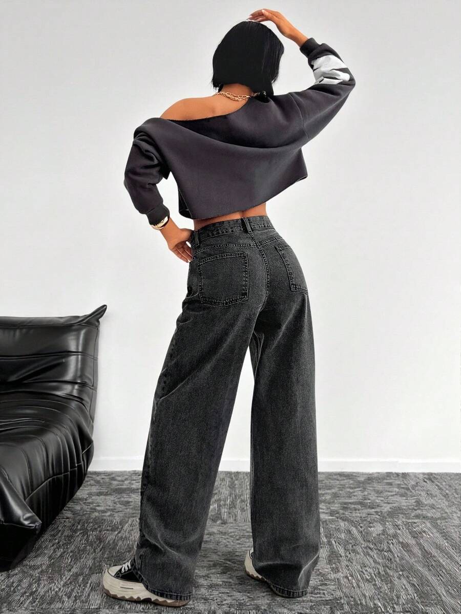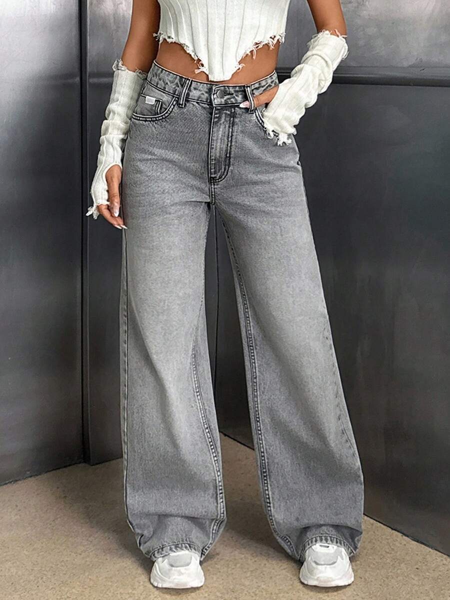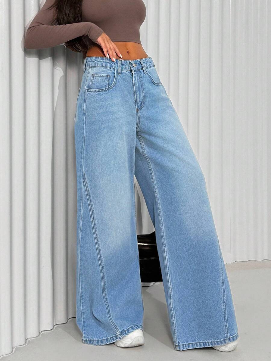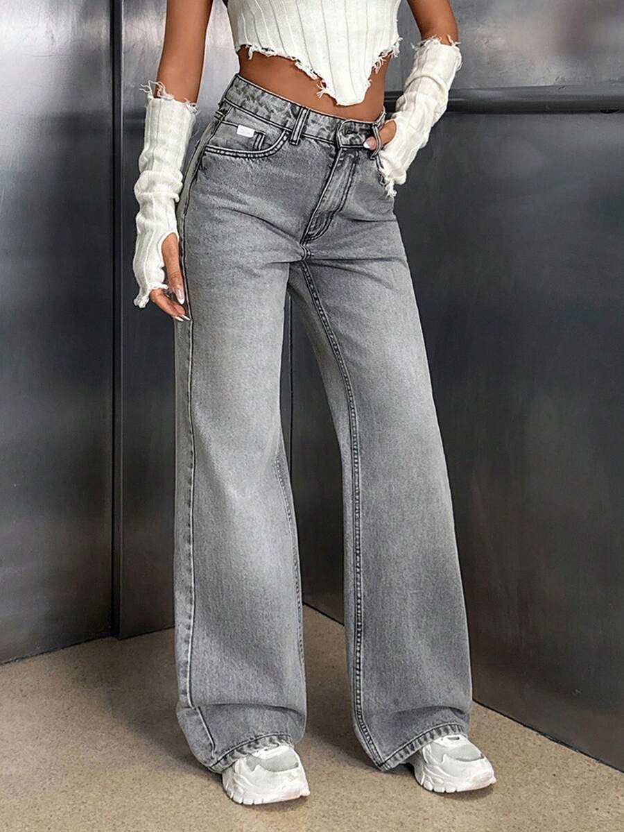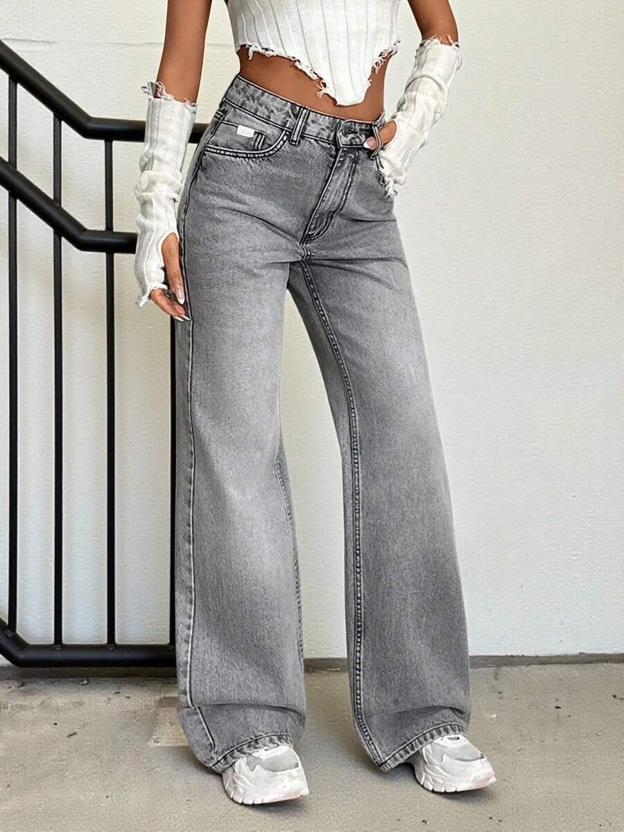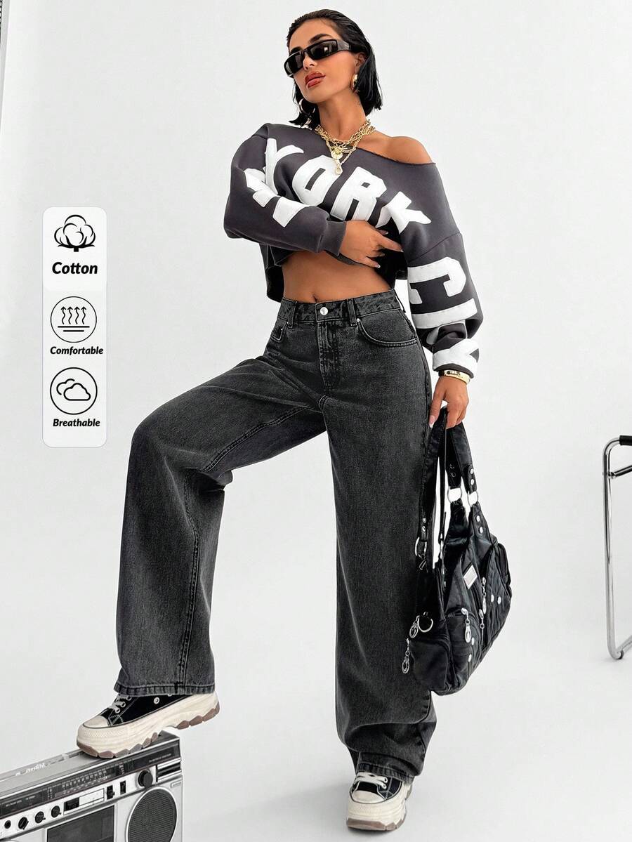 Jeans casual larghi a vita media e gamba dritta da donna