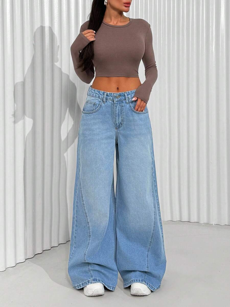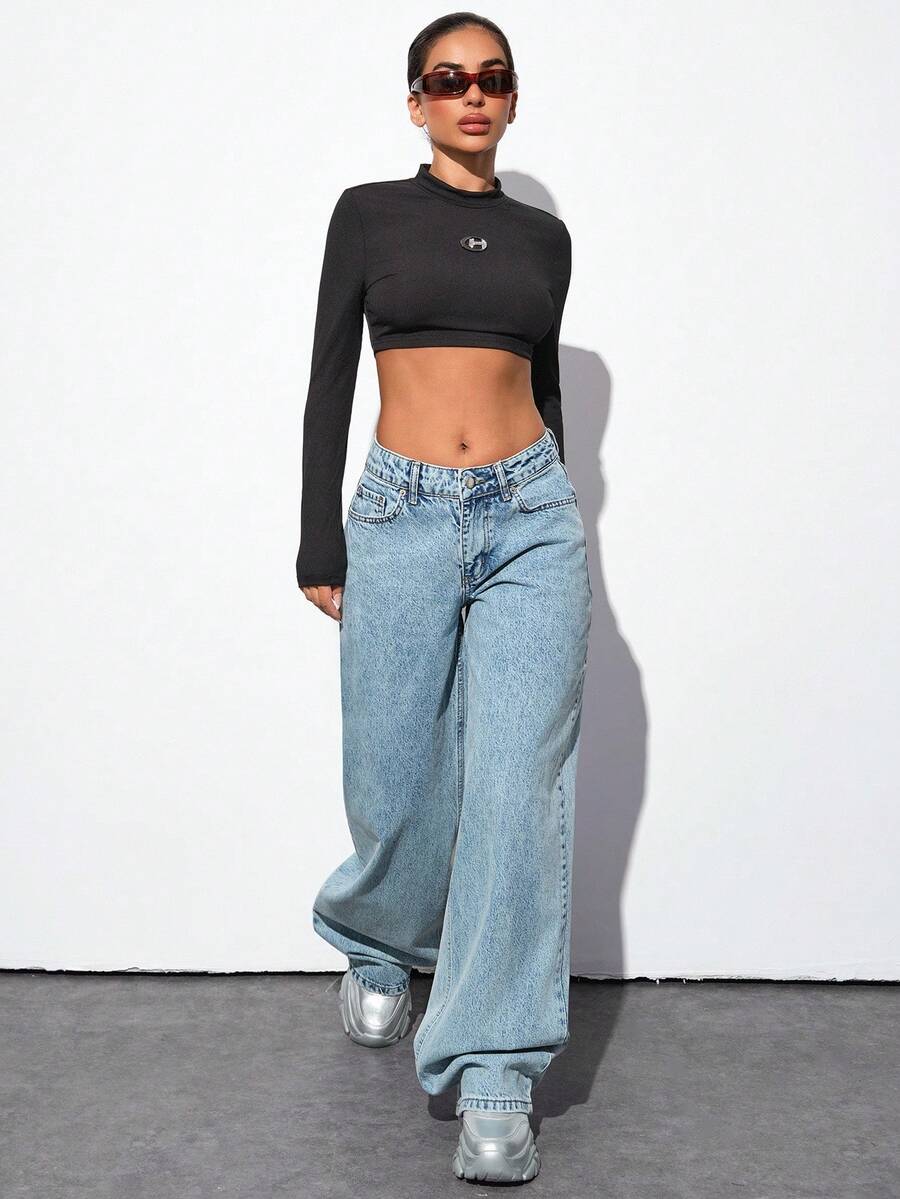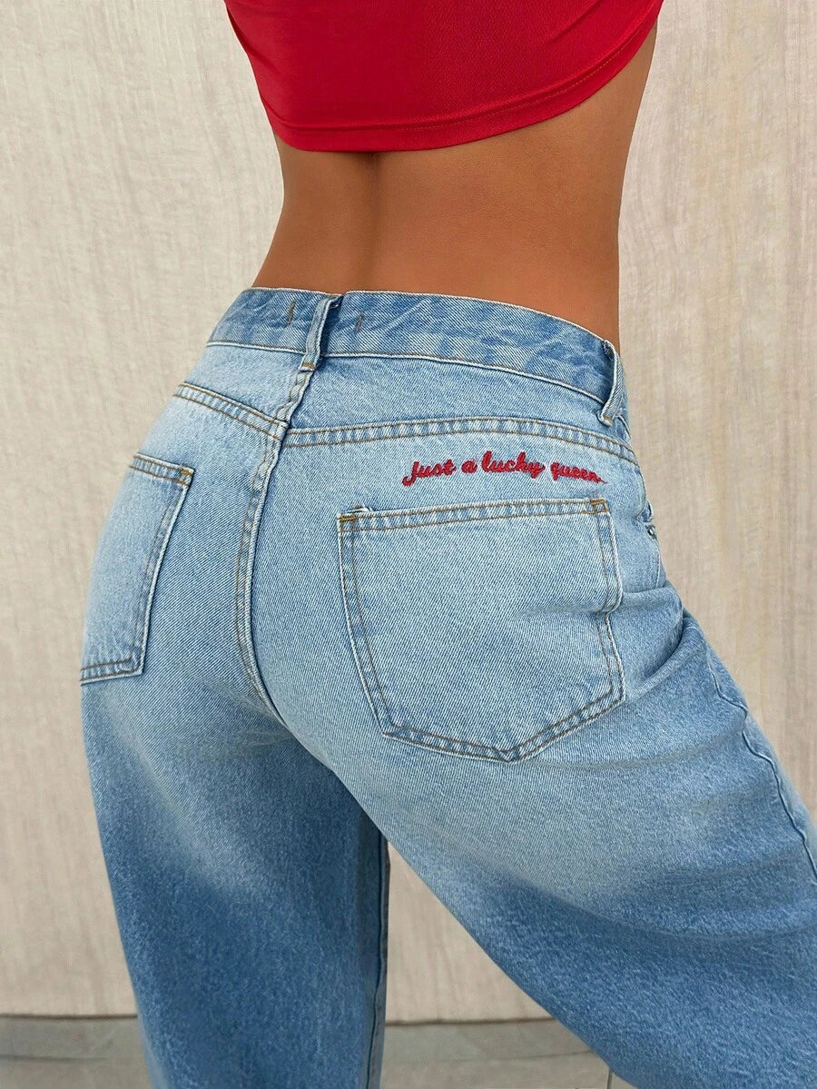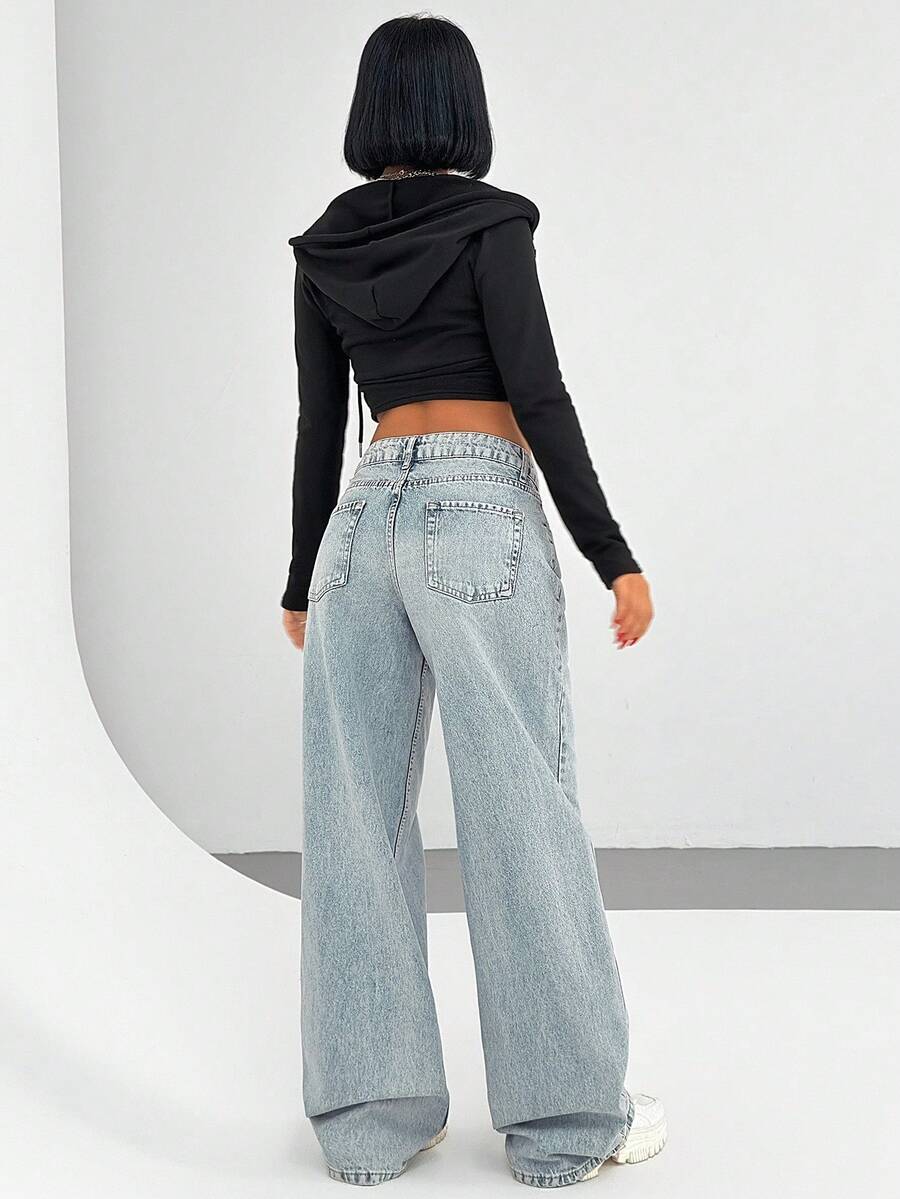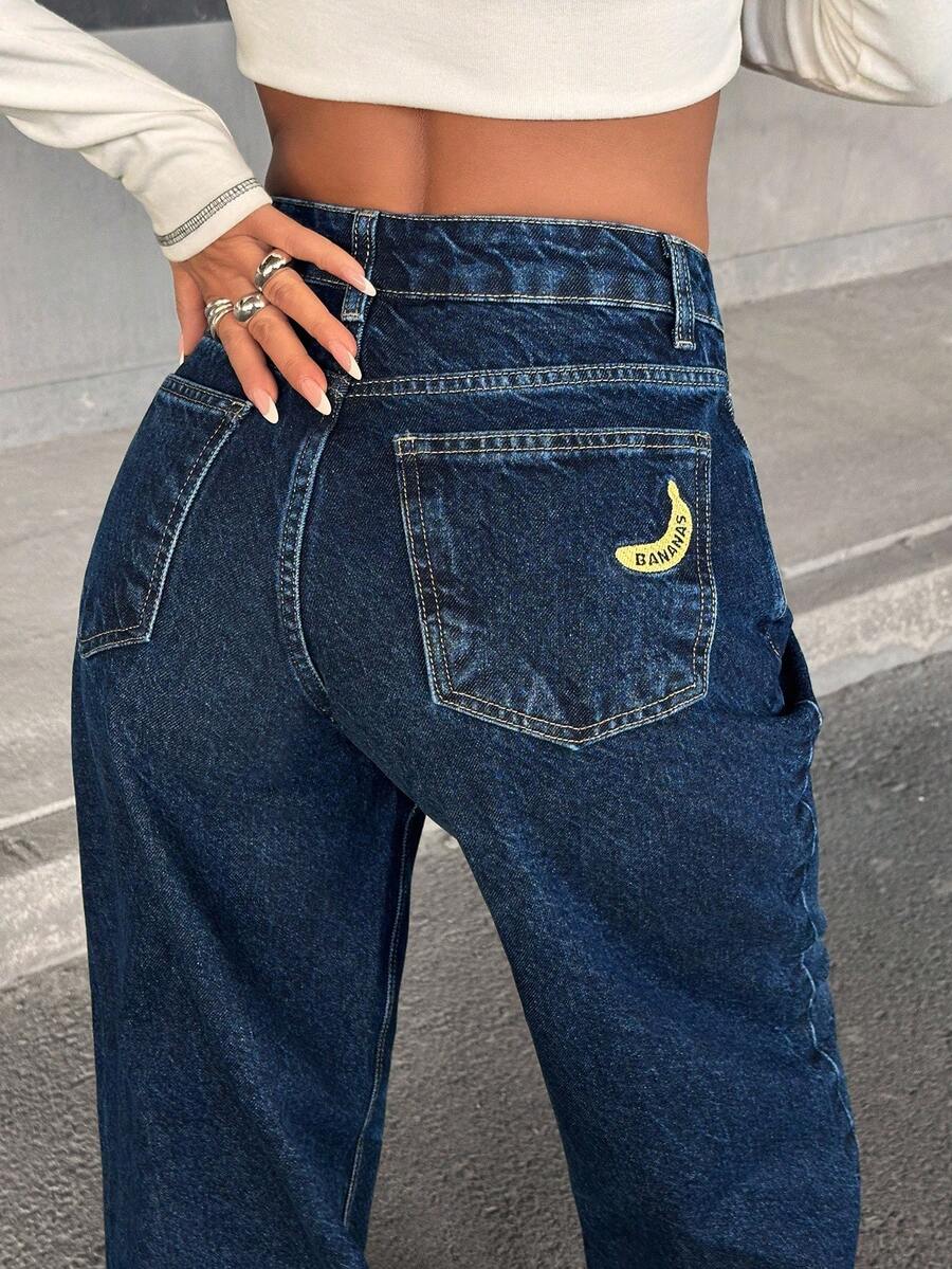 Jeans casual larghi a vita media e gamba dritta da donna
