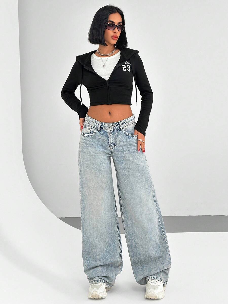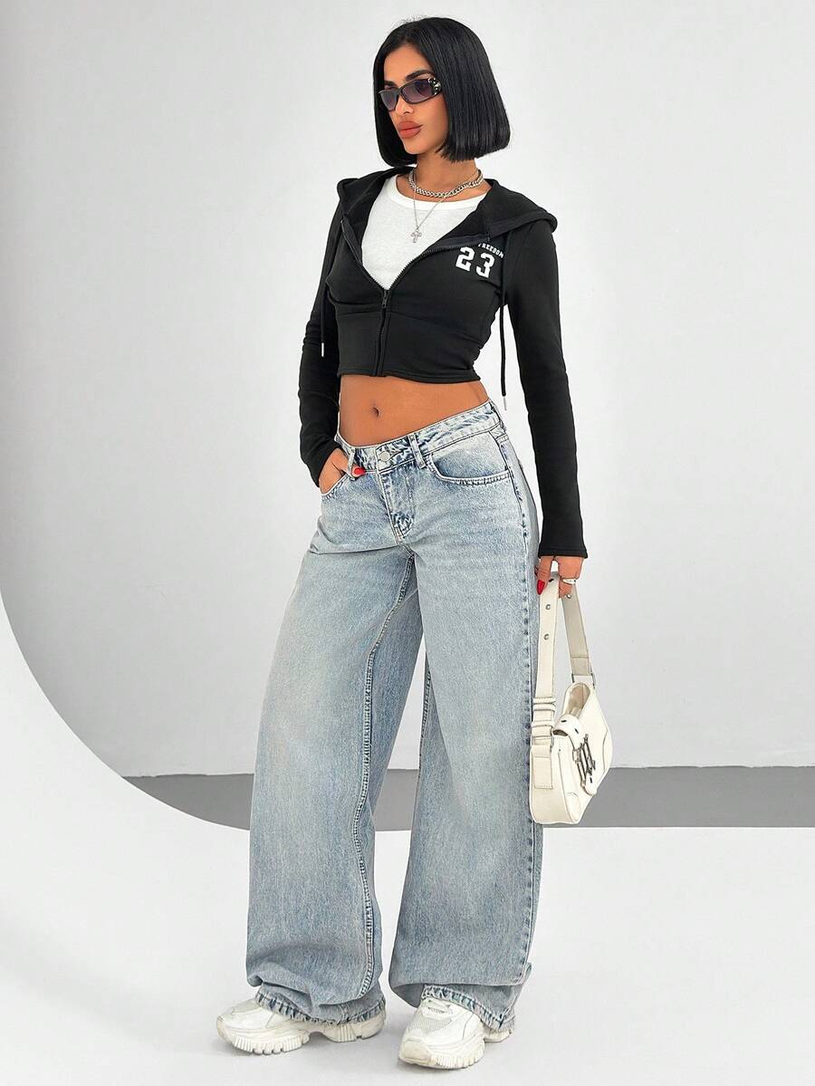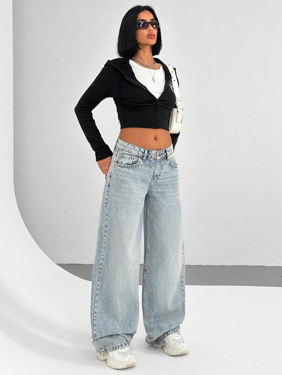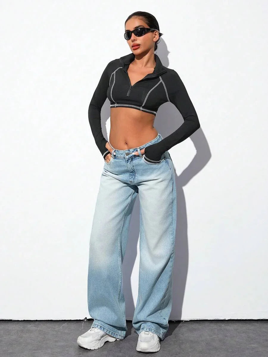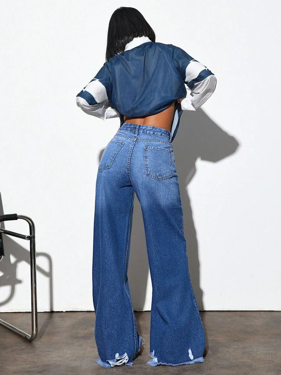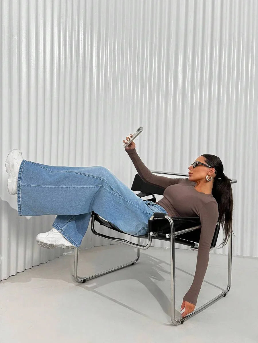 Jeans casual larghi a vita media e gamba dritta da donna