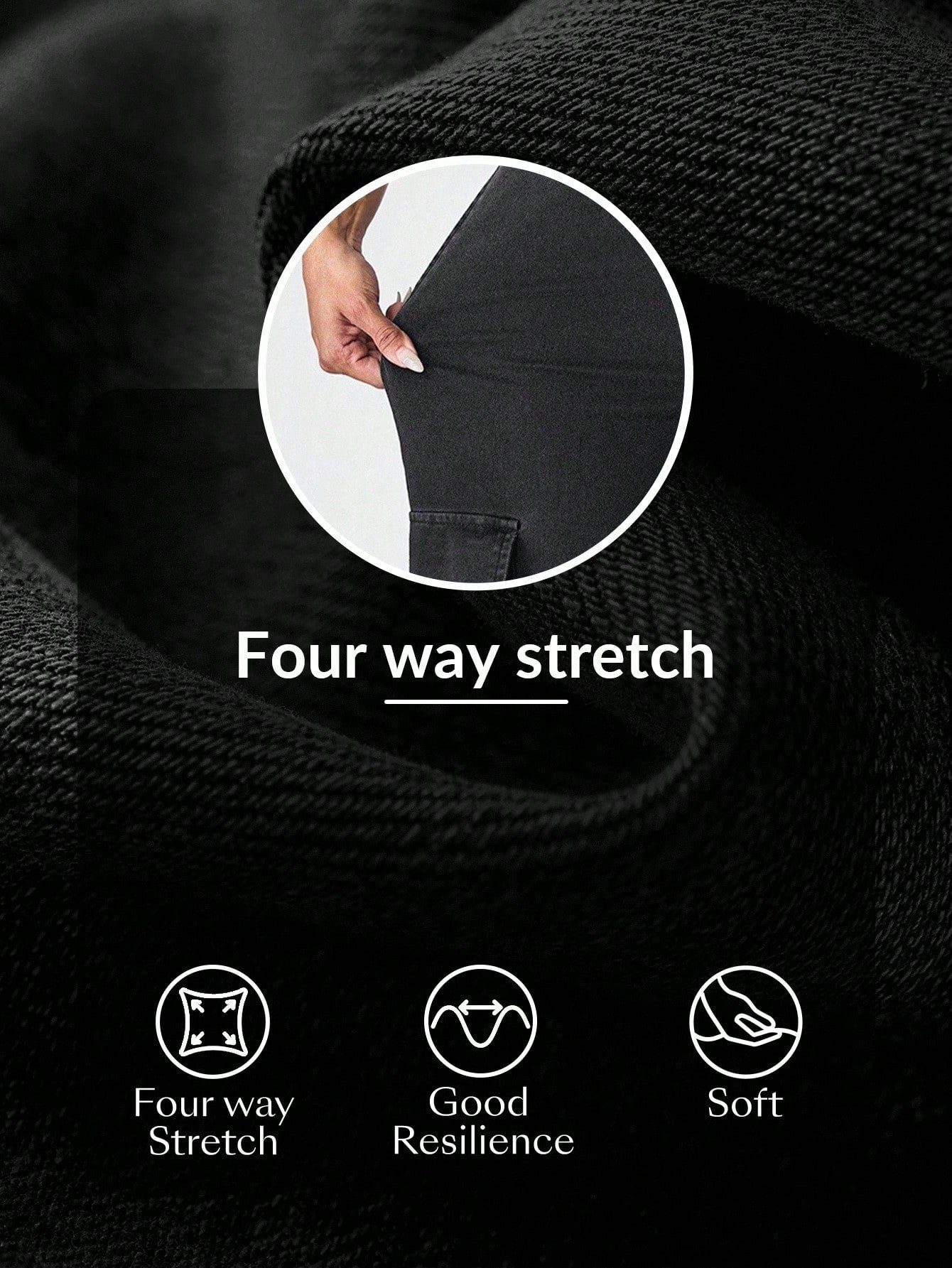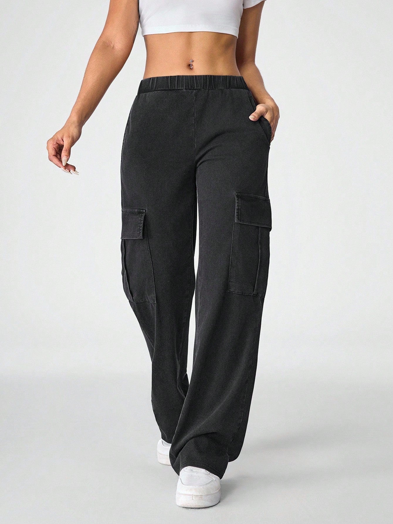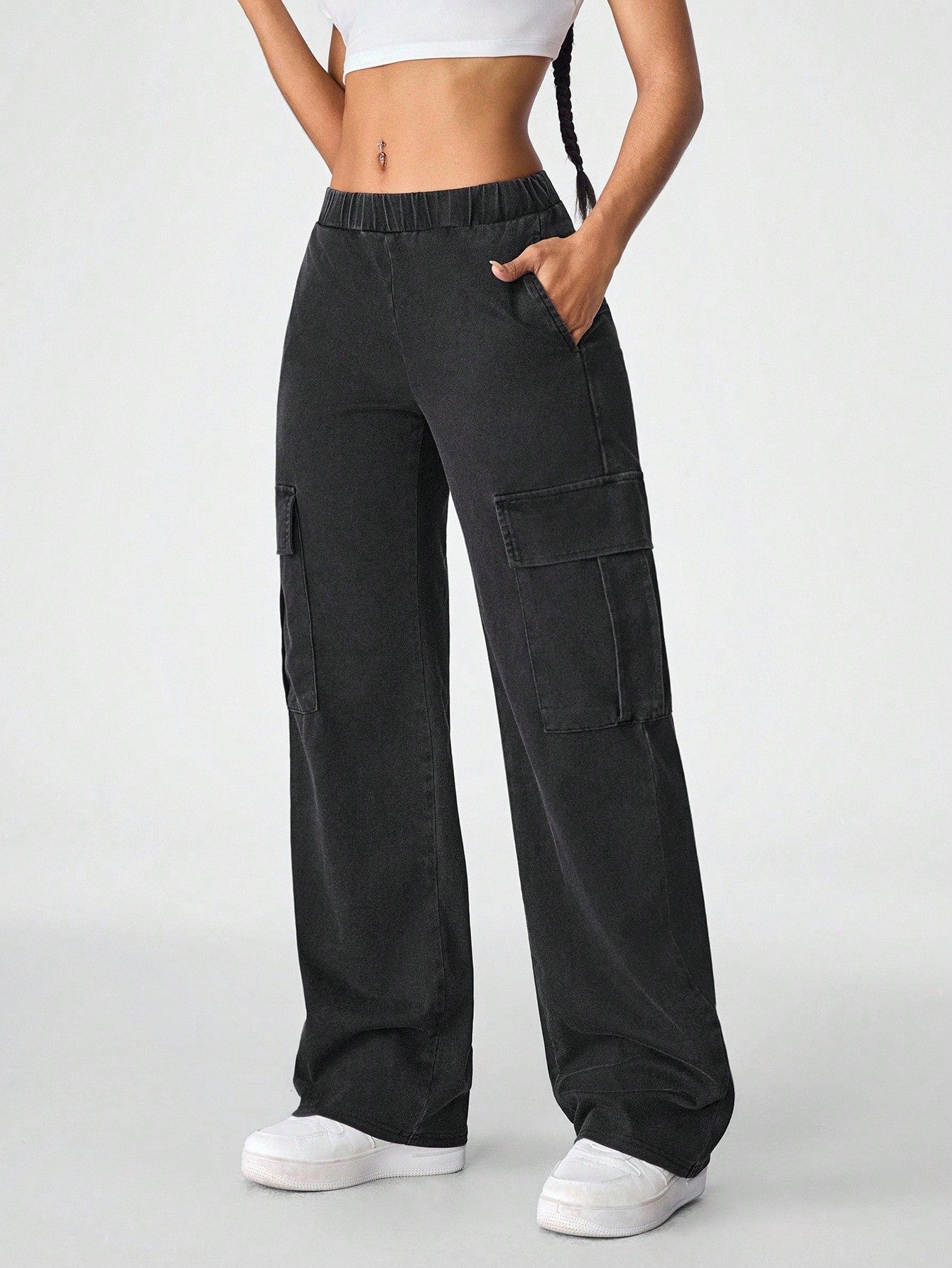 Jeans casual larghi con vita elastica e tasche cargo per donna