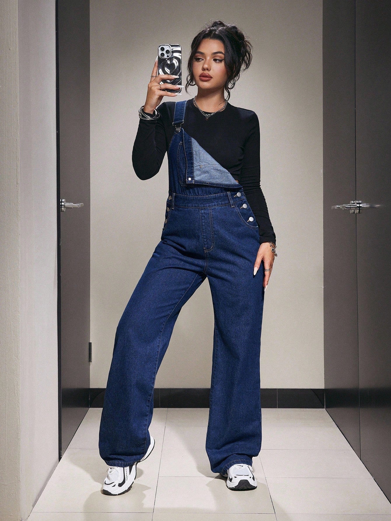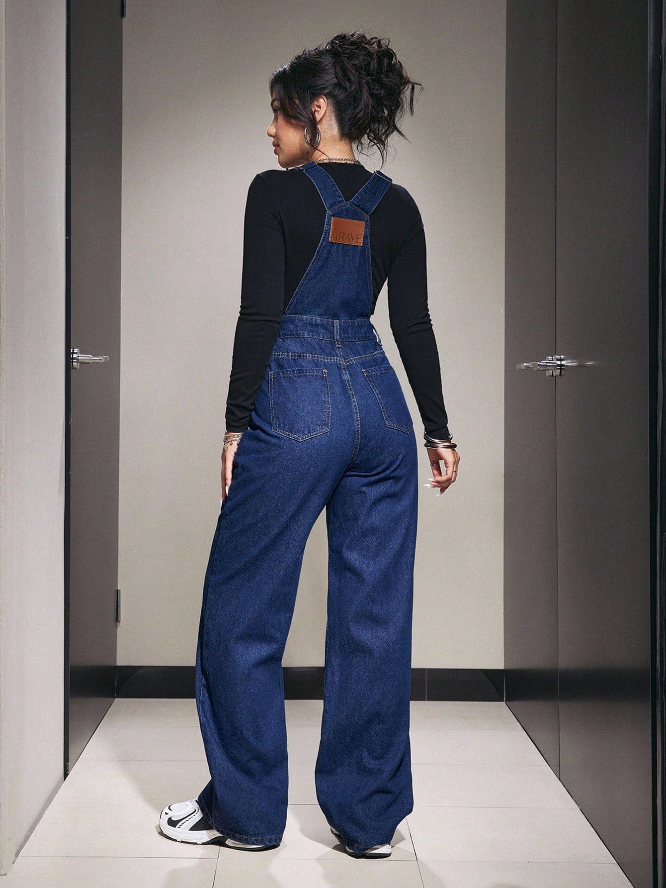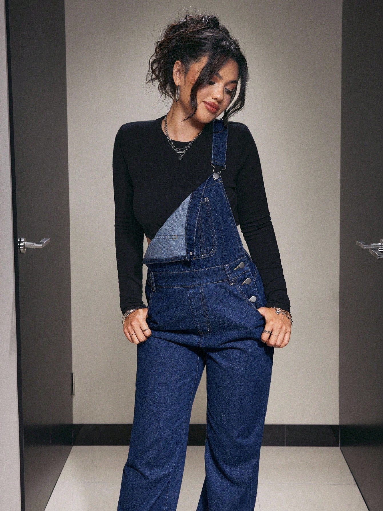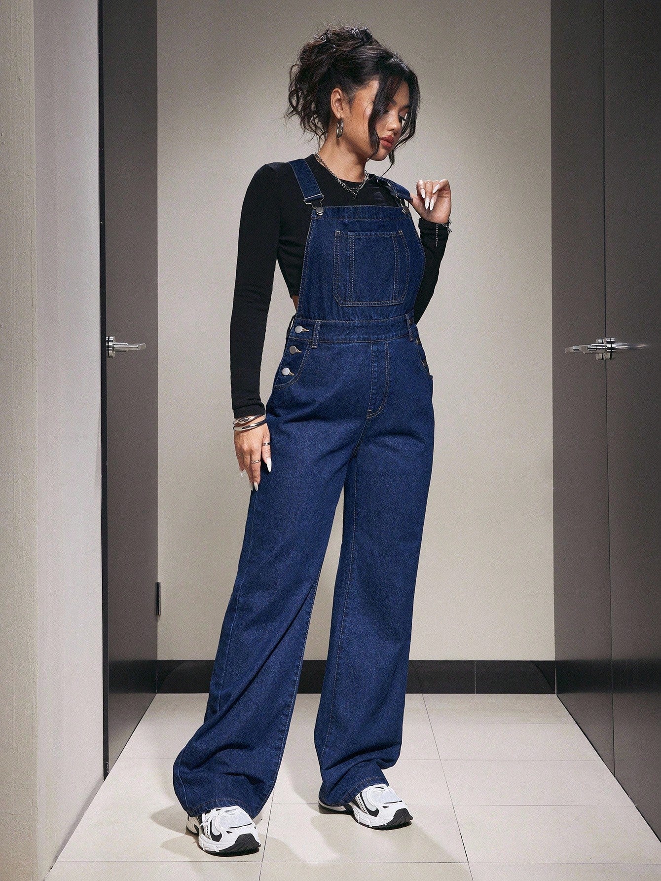 Salopette di jeans casual da donna con tasche e gamba dritta