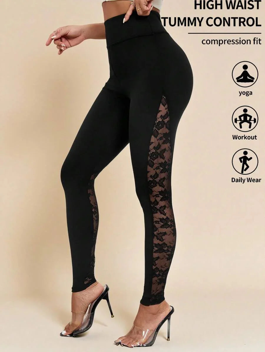 Leggings da donna in patchwork di rete e paillettes