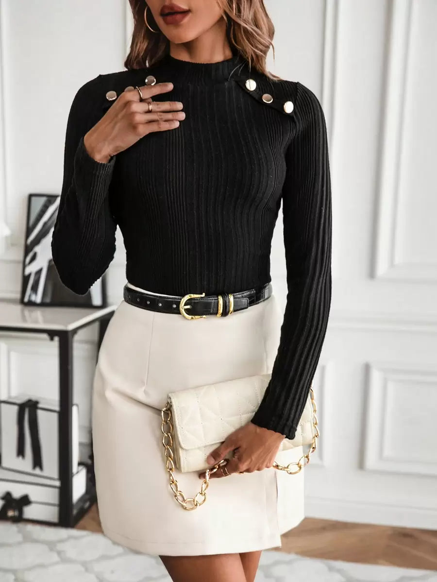 Maglietta A Maniche Lunghe Aderente Con Dettaglio A Pulsante