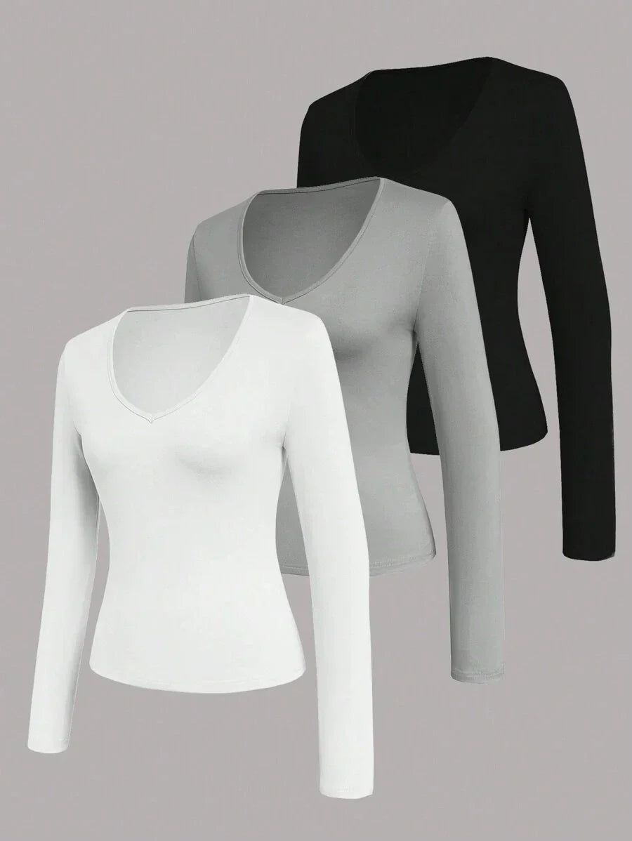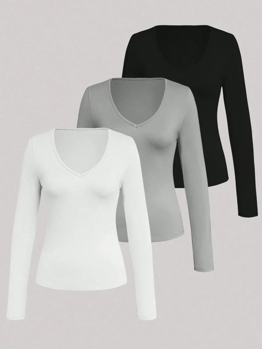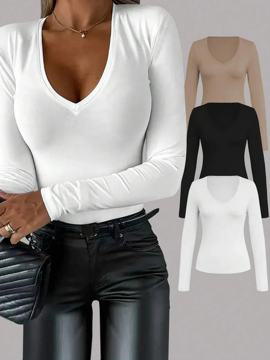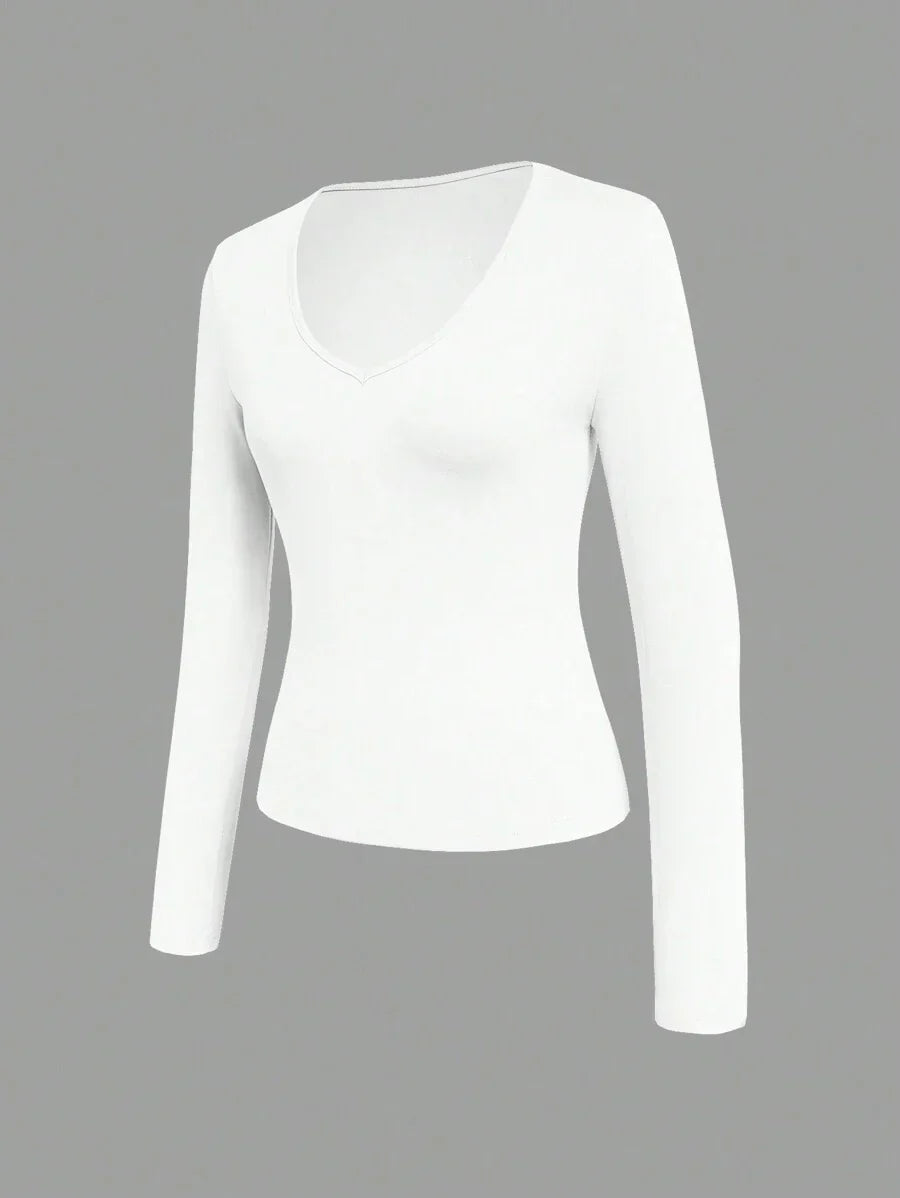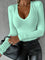 Maglietta a maniche lunghe con scollo a V, colore tinta unita, casual