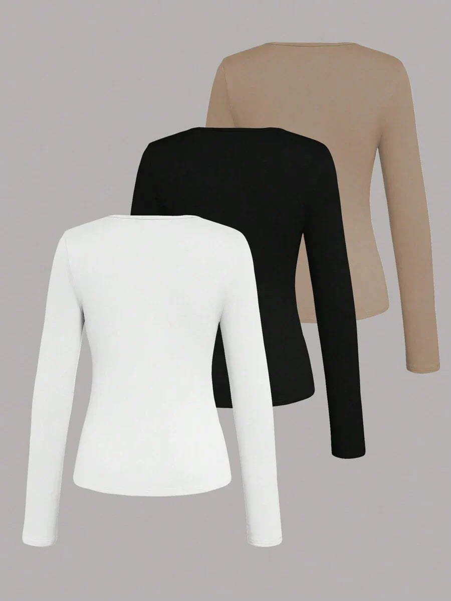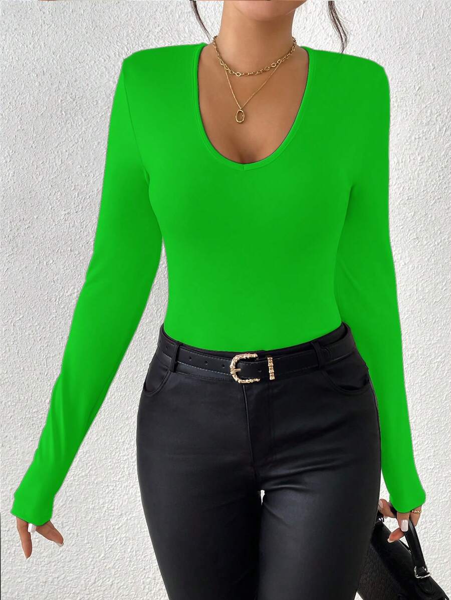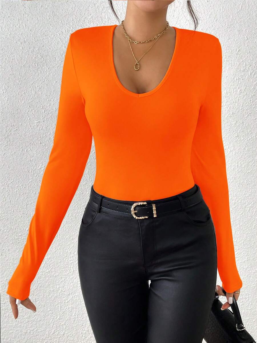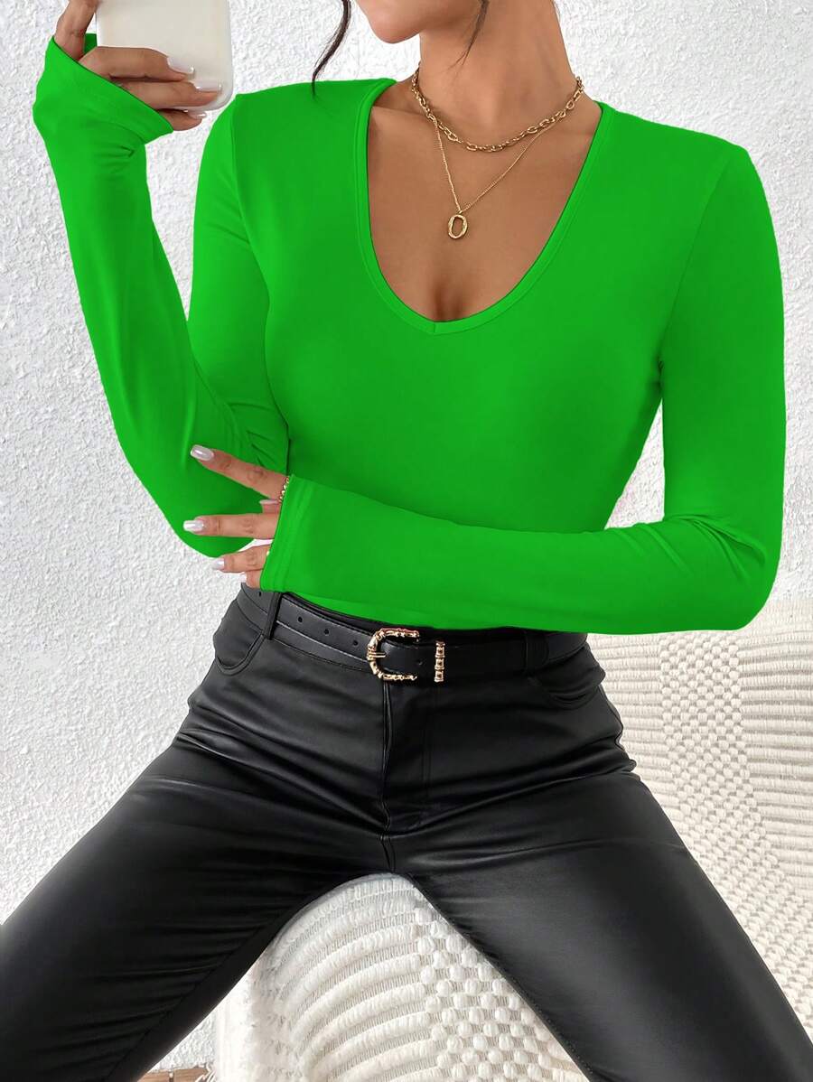 Maglietta a maniche lunghe con scollo a V, colore tinta unita, casual