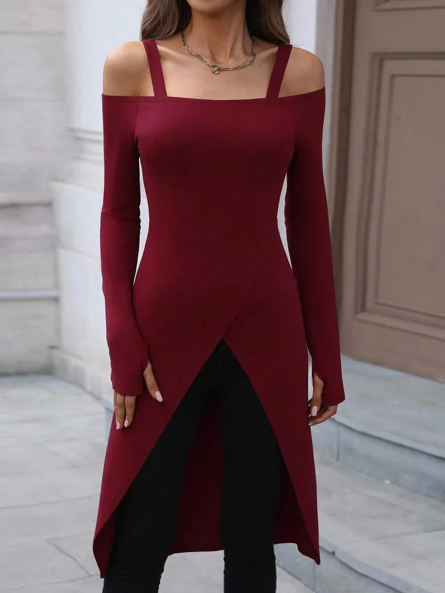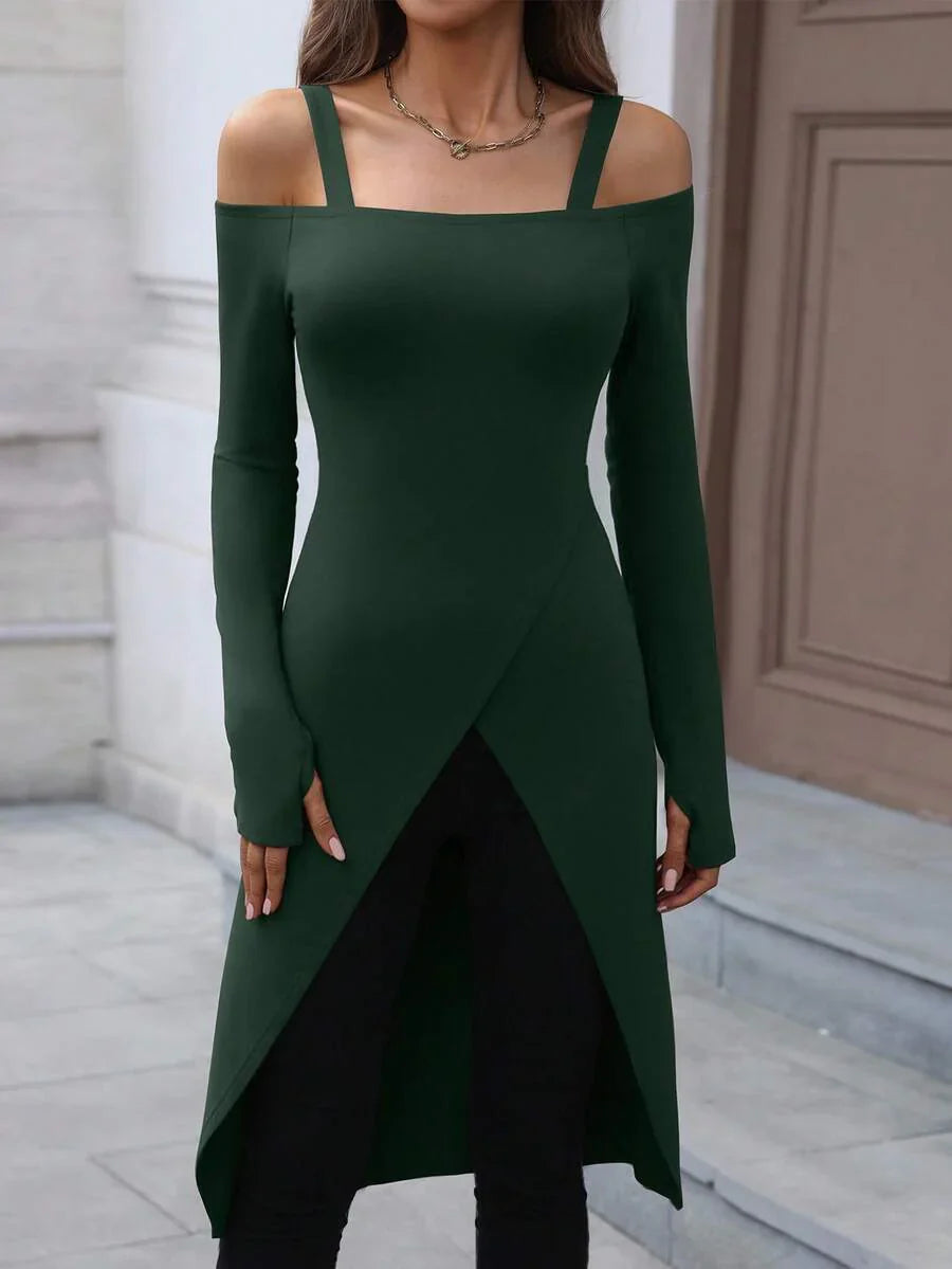 Maglietta da donna per primavera/estate con design asimmetrico senza maniche a spalle scoperte e orlo