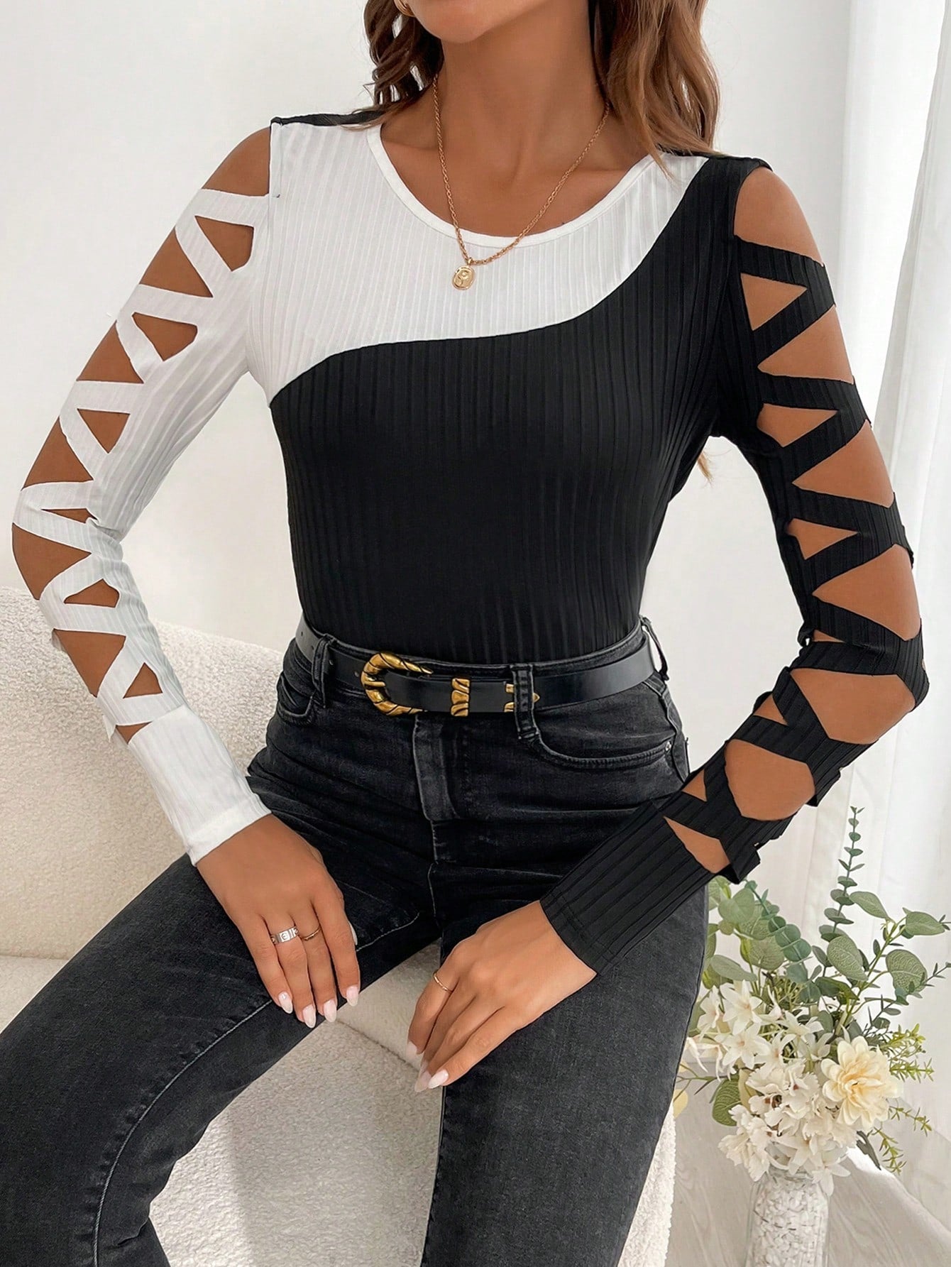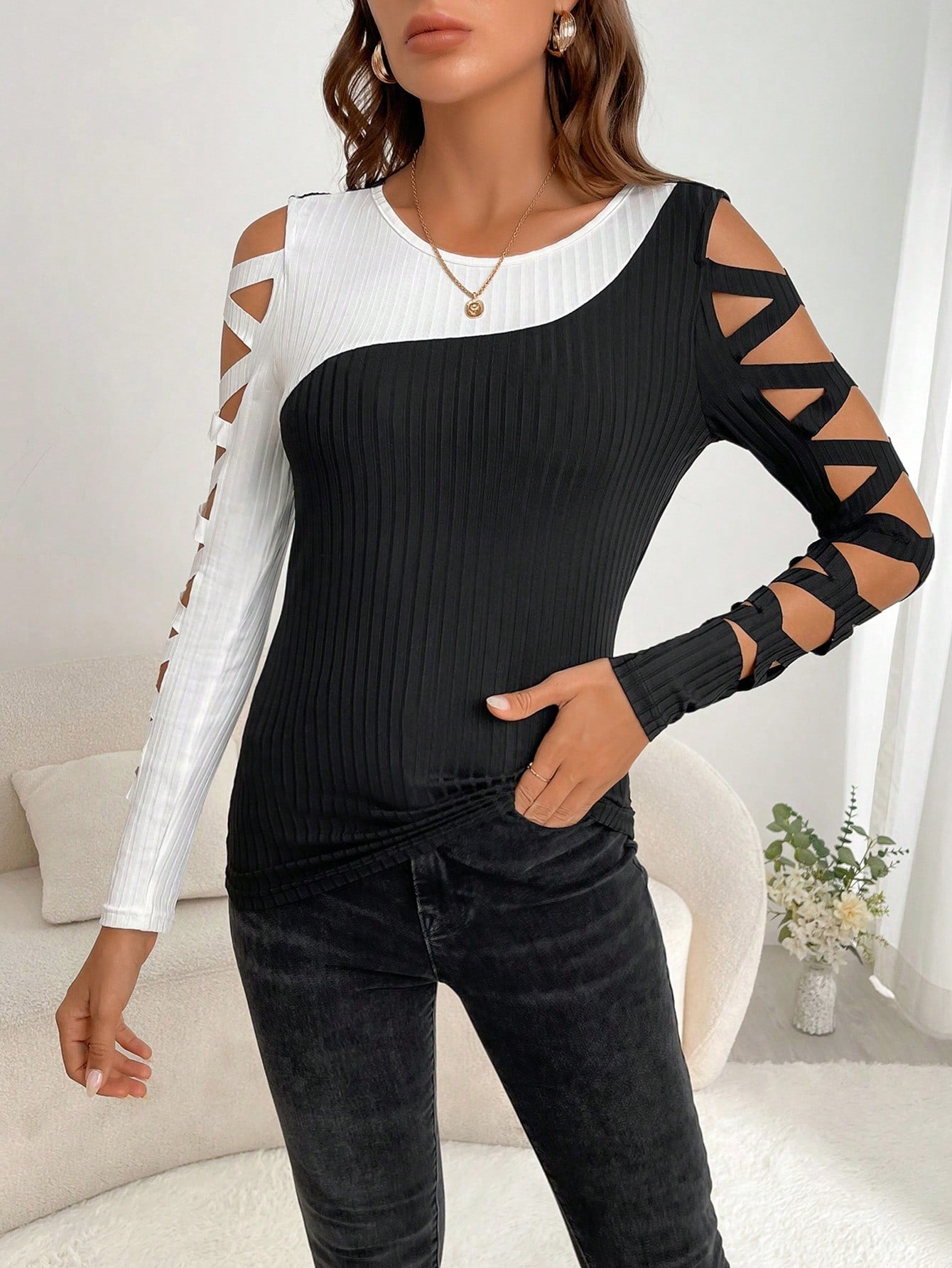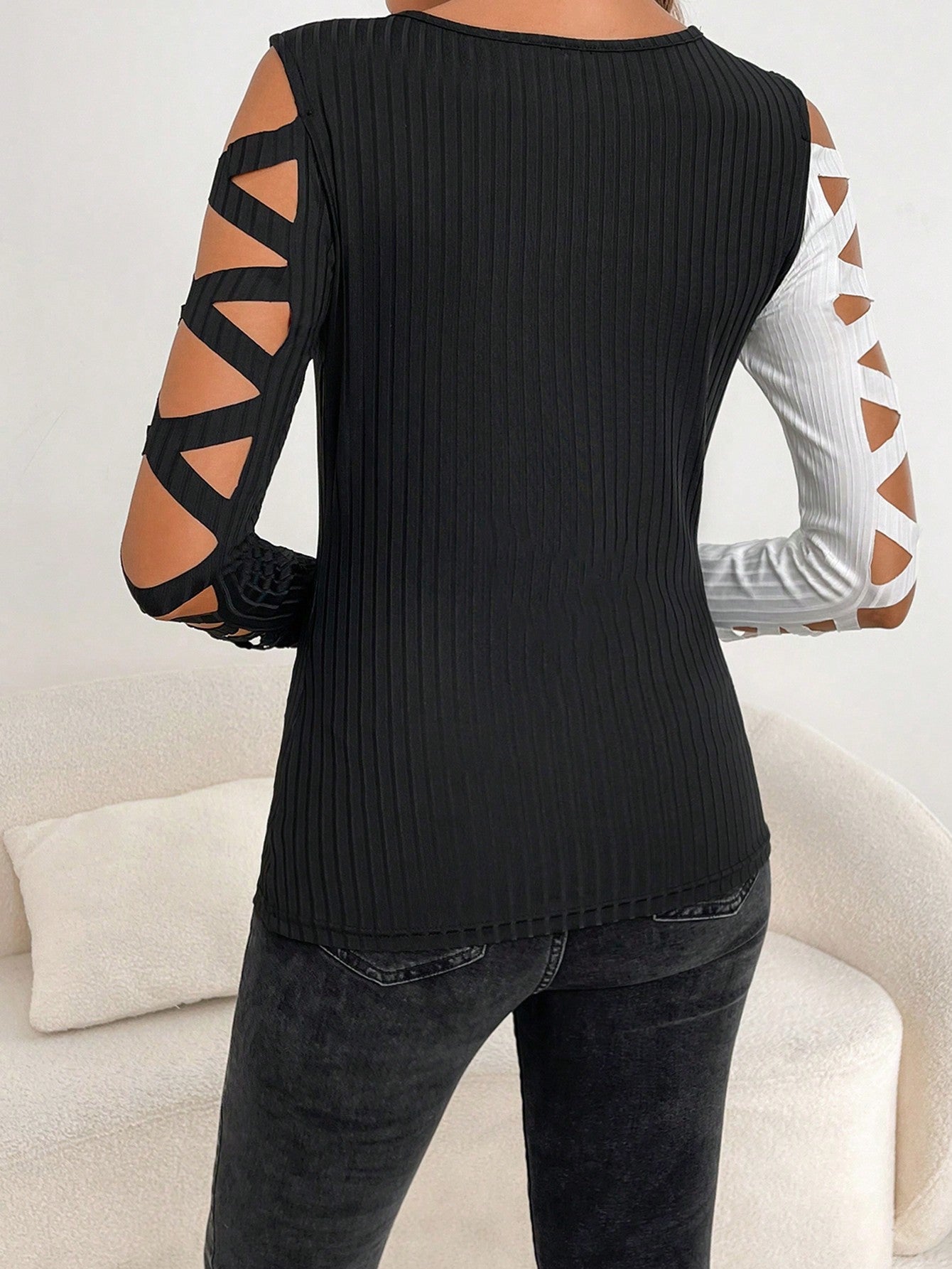 Maglia A Due Toni Con Incrocio A Croce E Taglio Asimmetrico