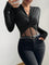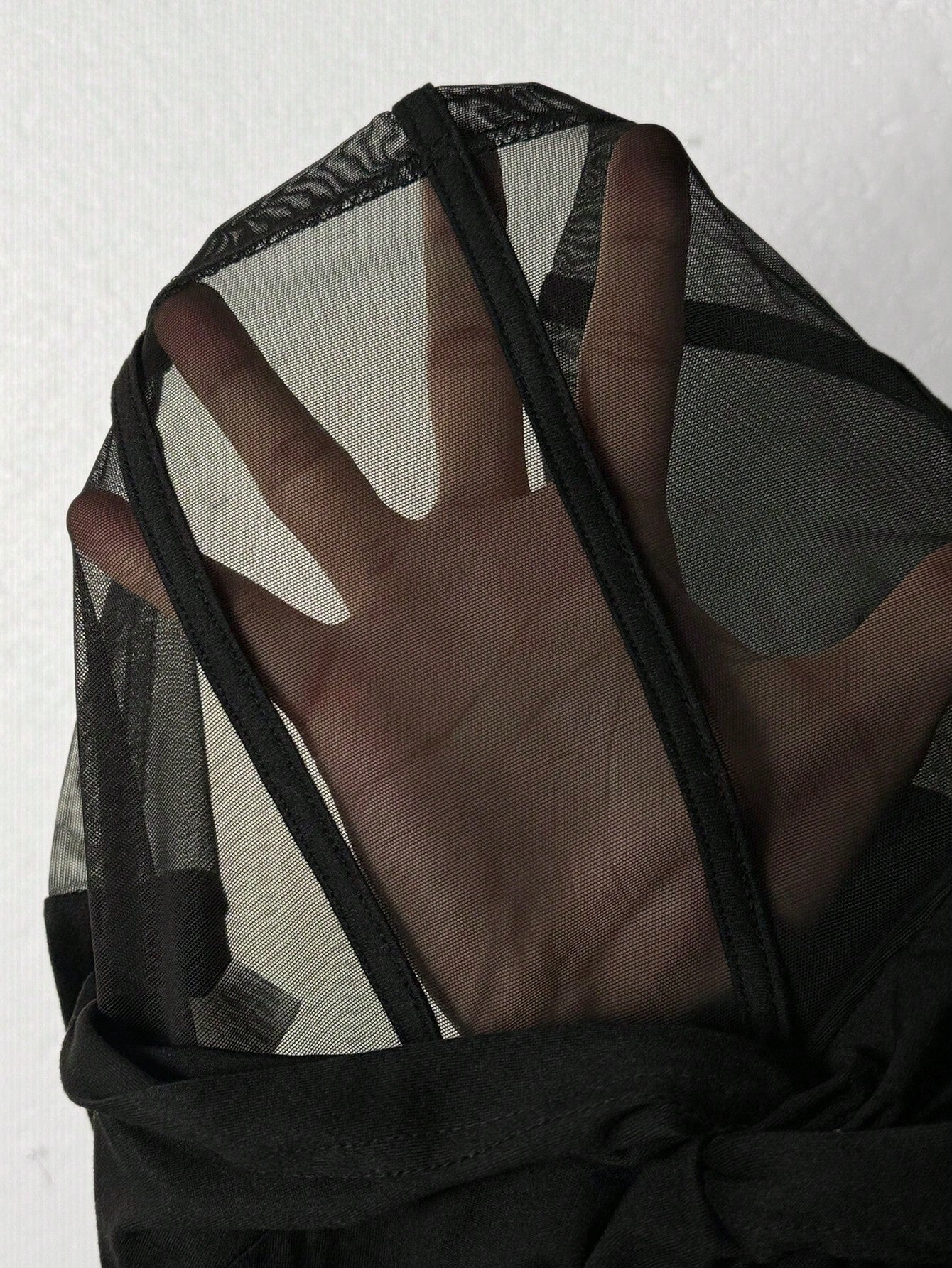 Maglietta casual ed elegante da donna con maniche lunghe, collo a V, design in rete a contrasto
