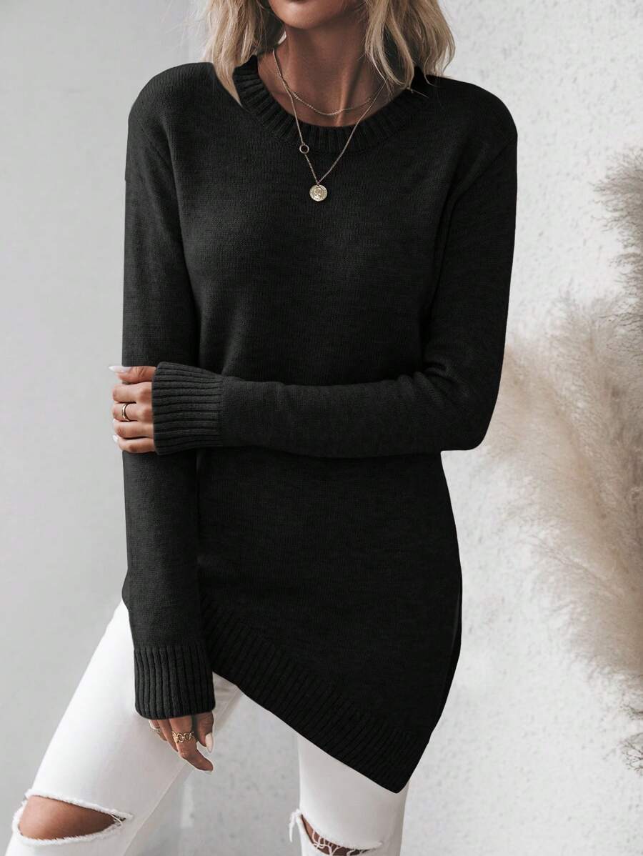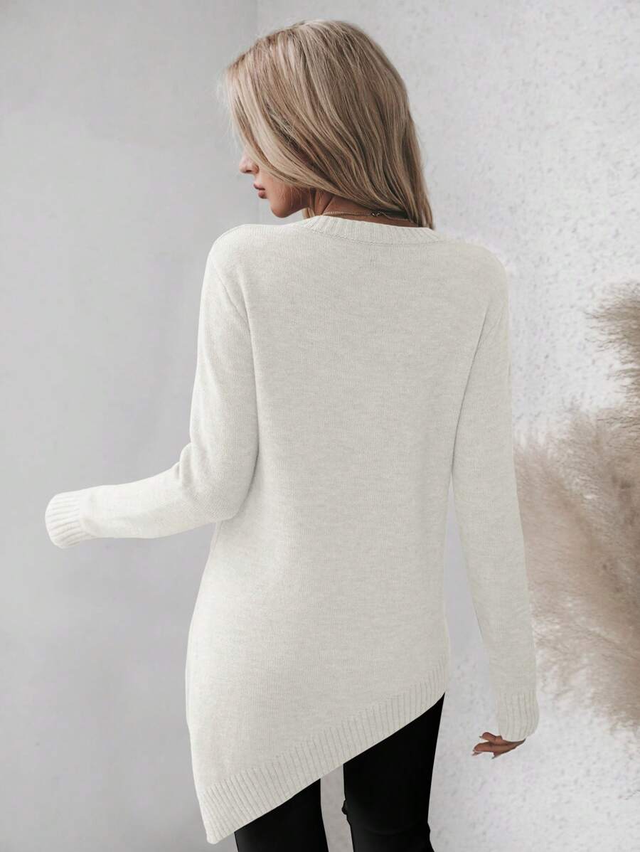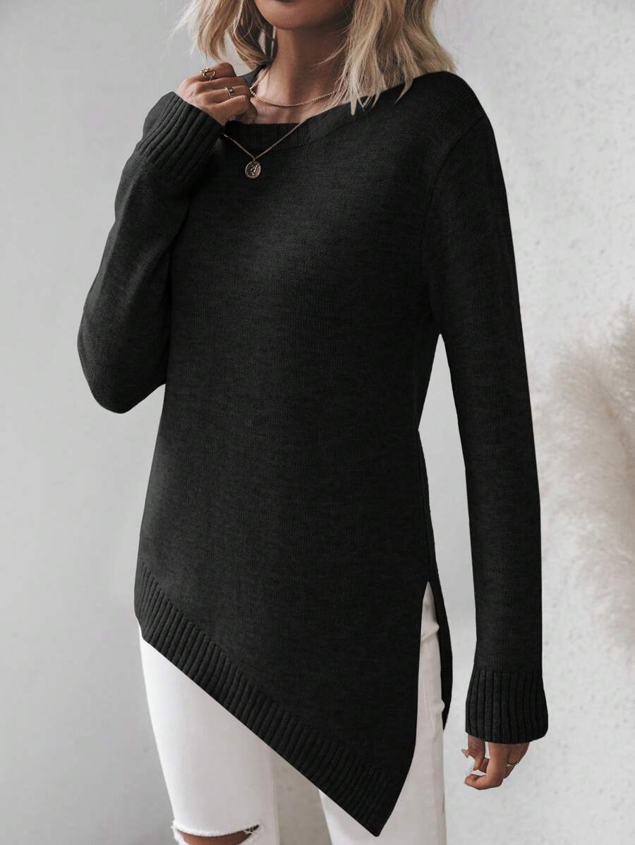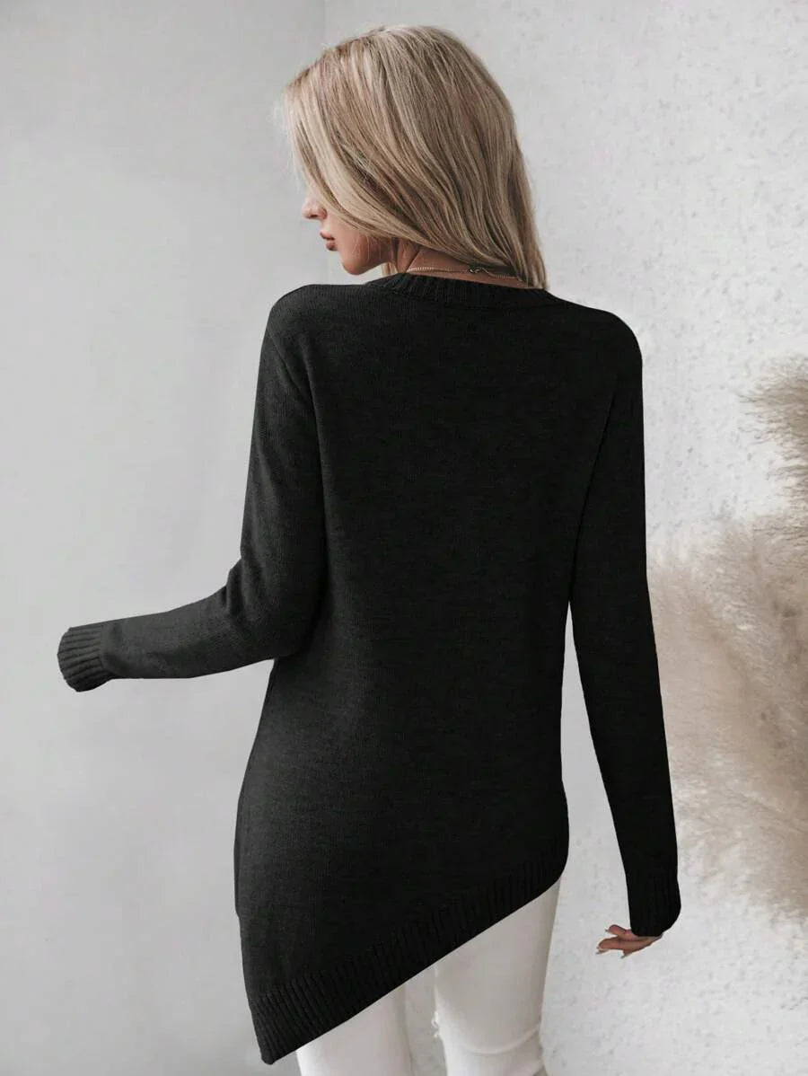 Maglione asimmetrico, maglione casual da donna a maniche lunghe, slim fit