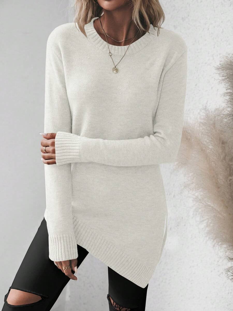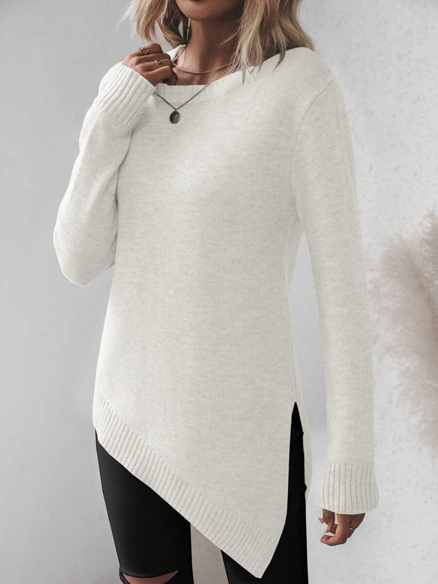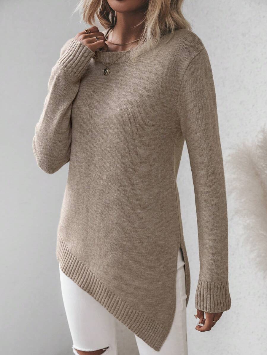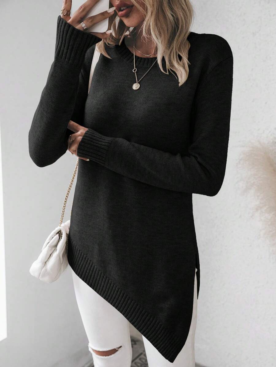 Maglione asimmetrico, maglione casual da donna a maniche lunghe, slim fit