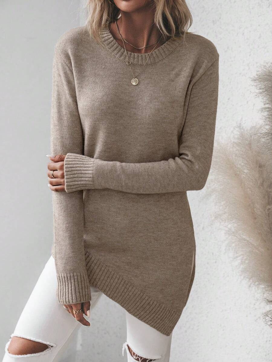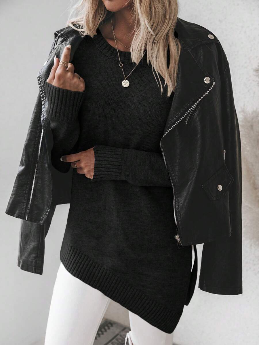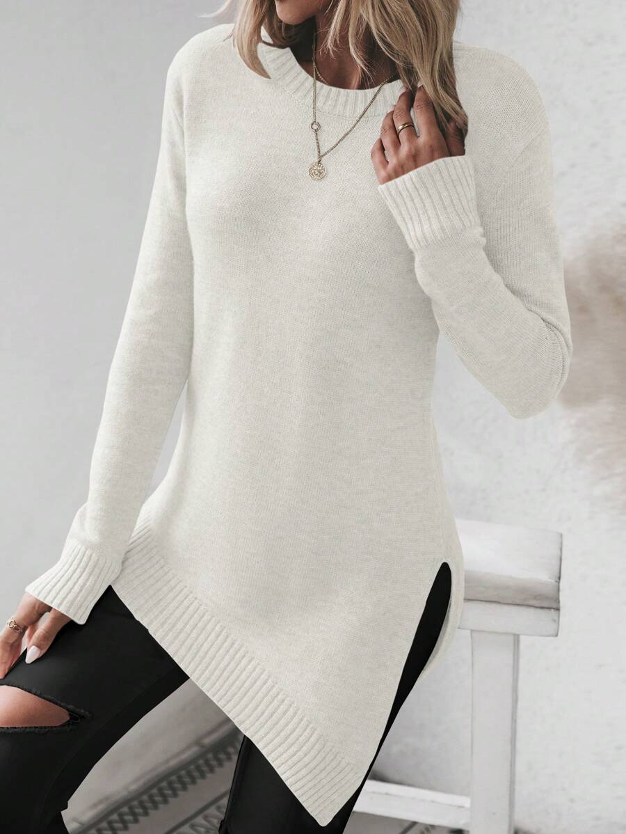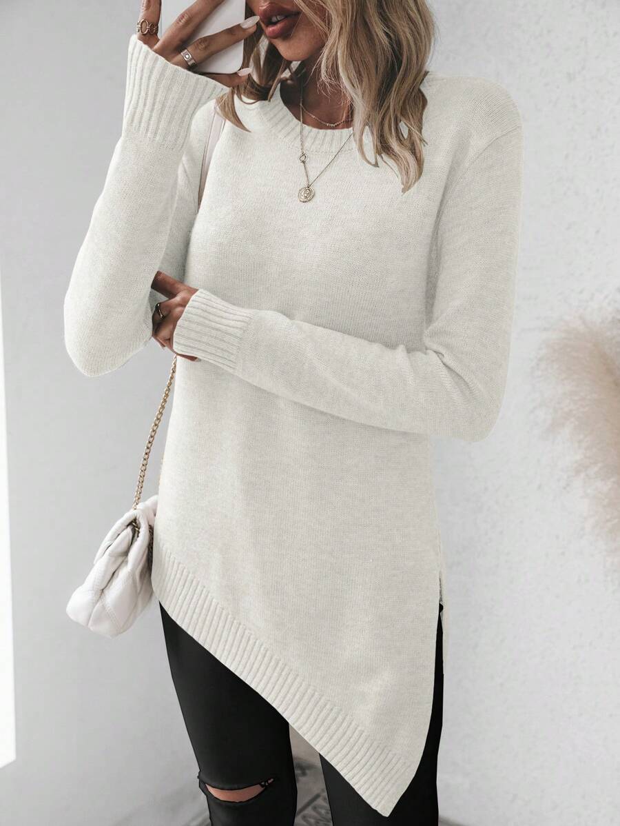 Maglione asimmetrico, maglione casual da donna a maniche lunghe, slim fit
