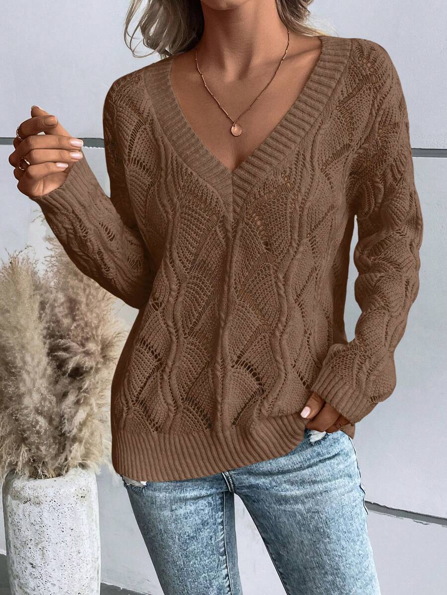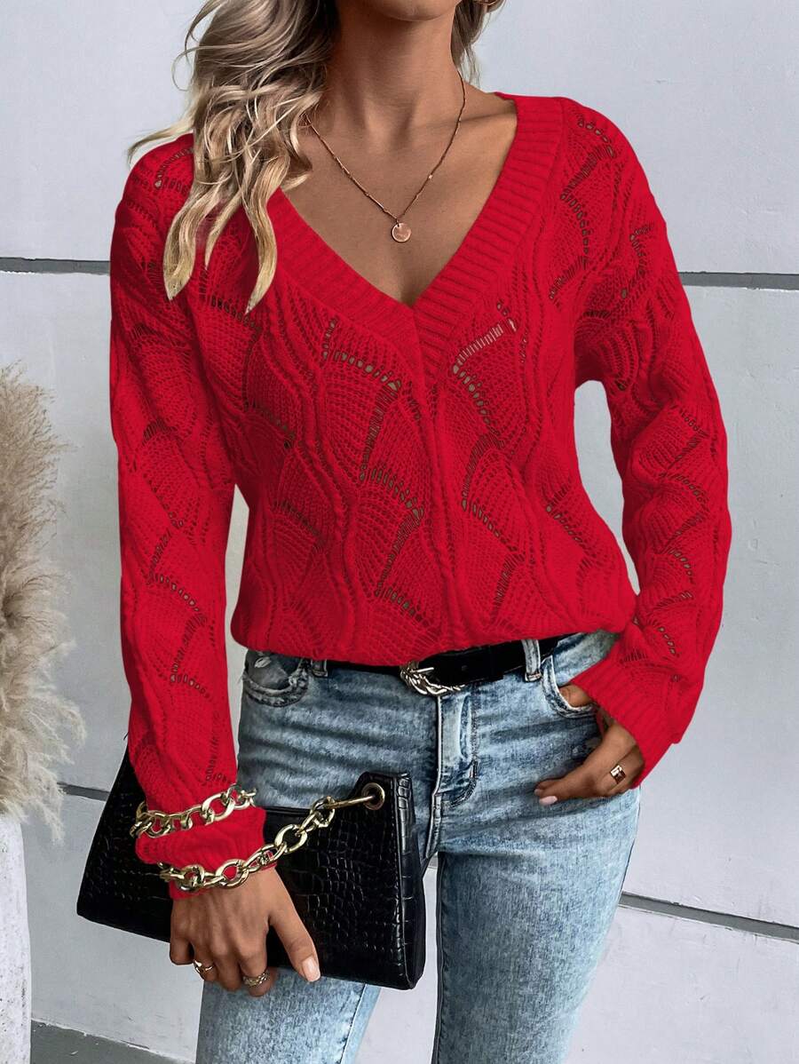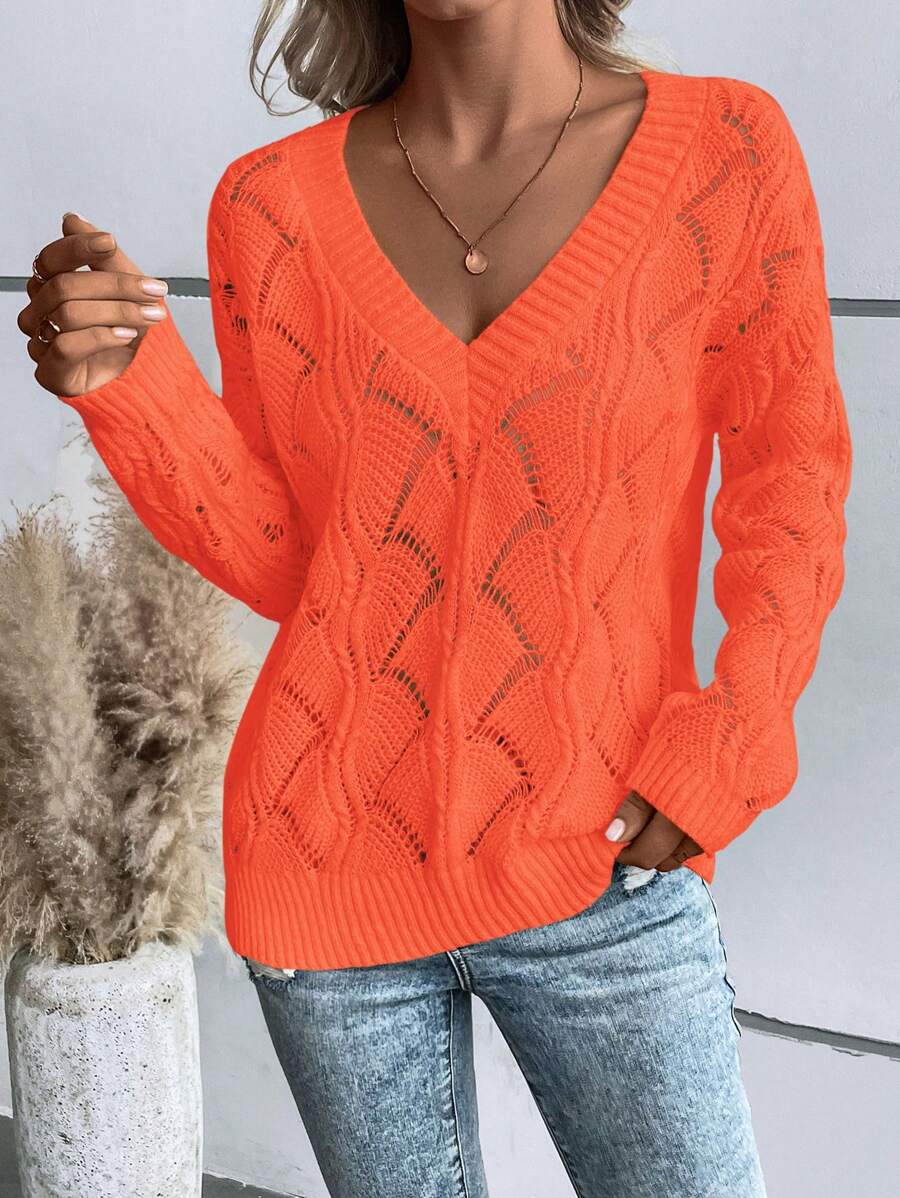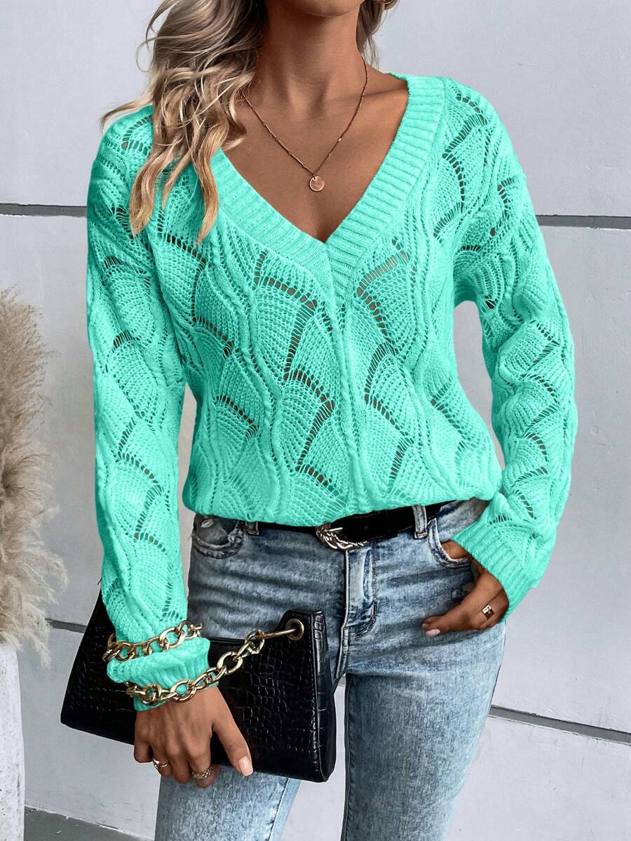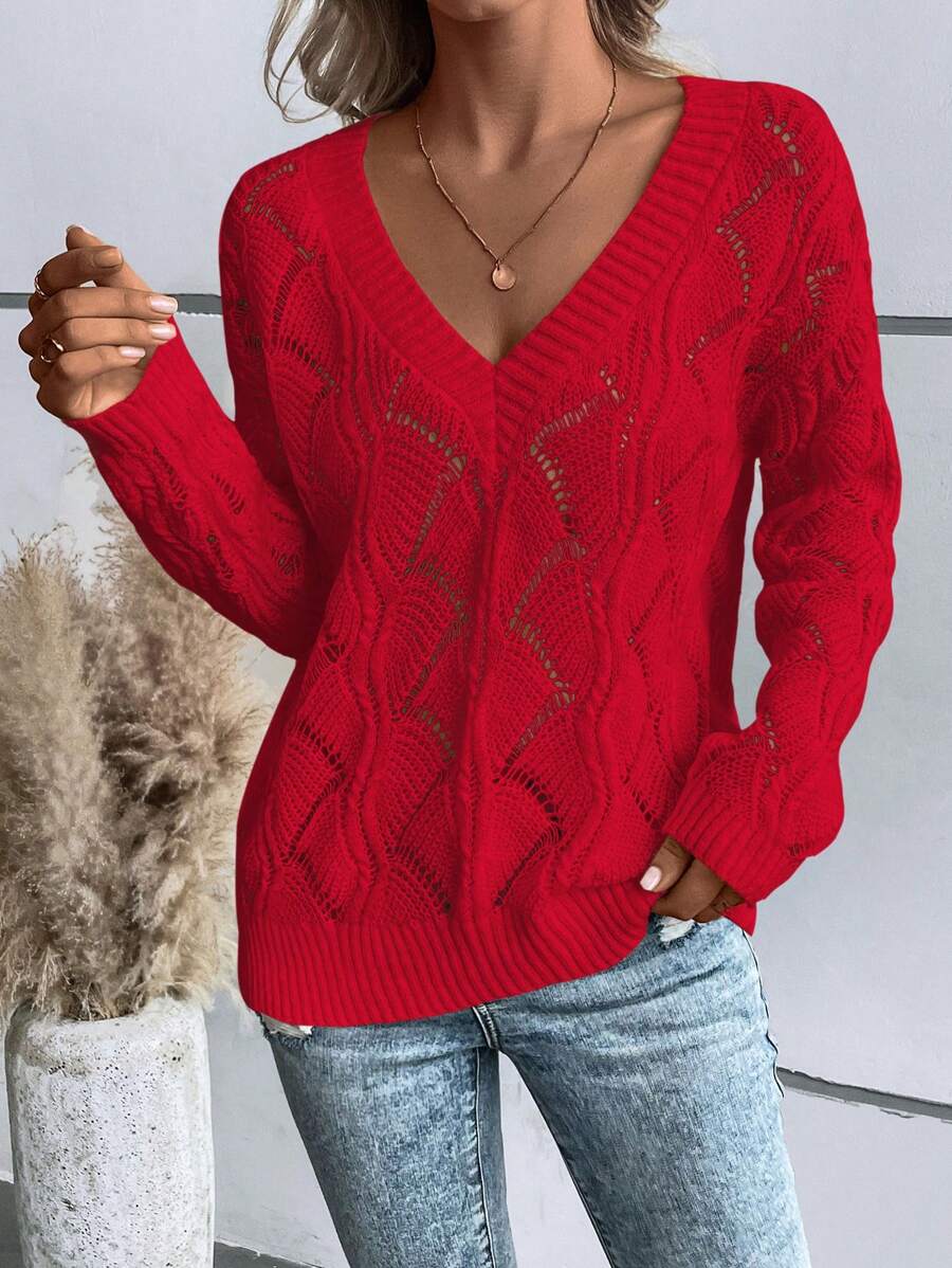 Maglione casual con scollo a V monocolore, a maniche lunghe