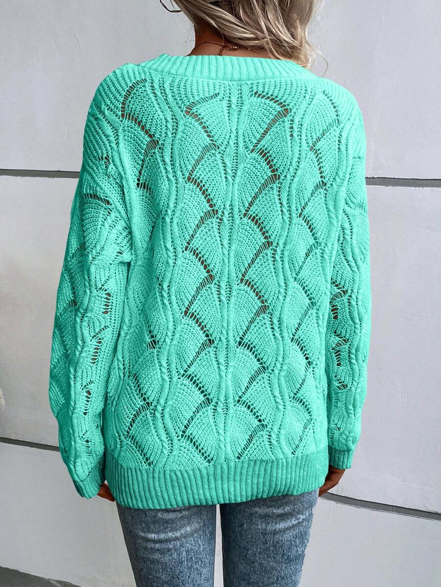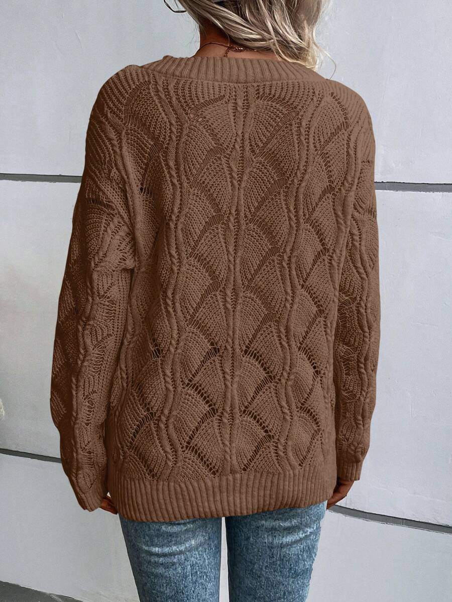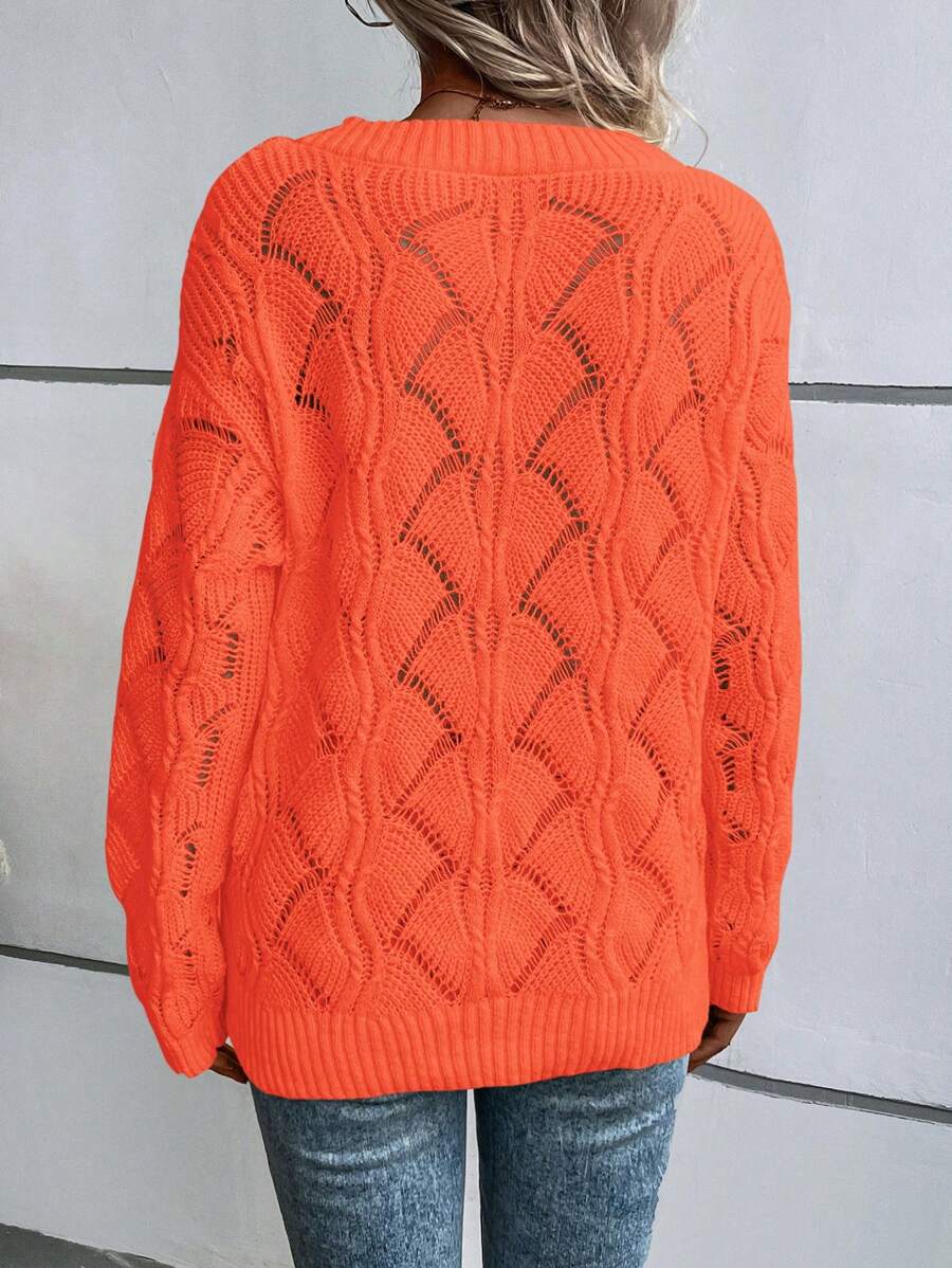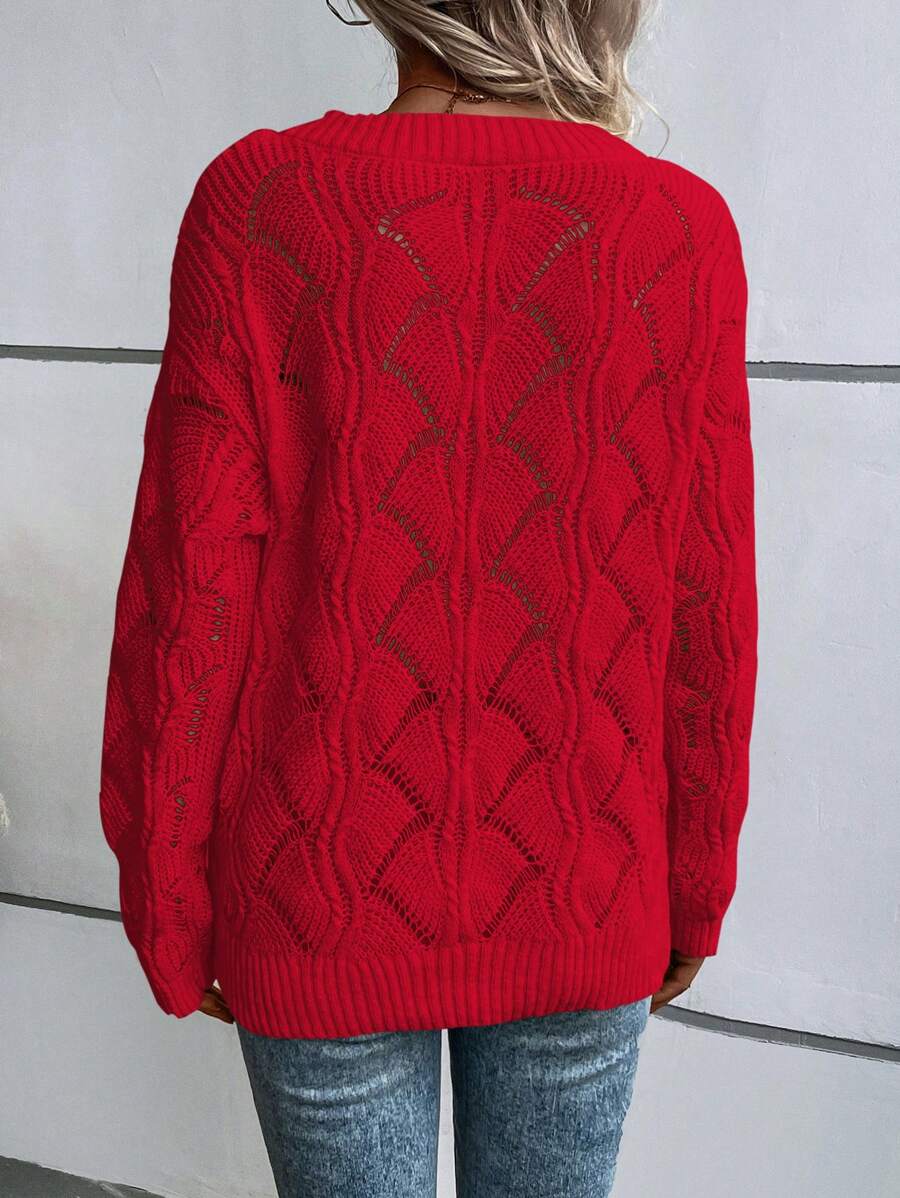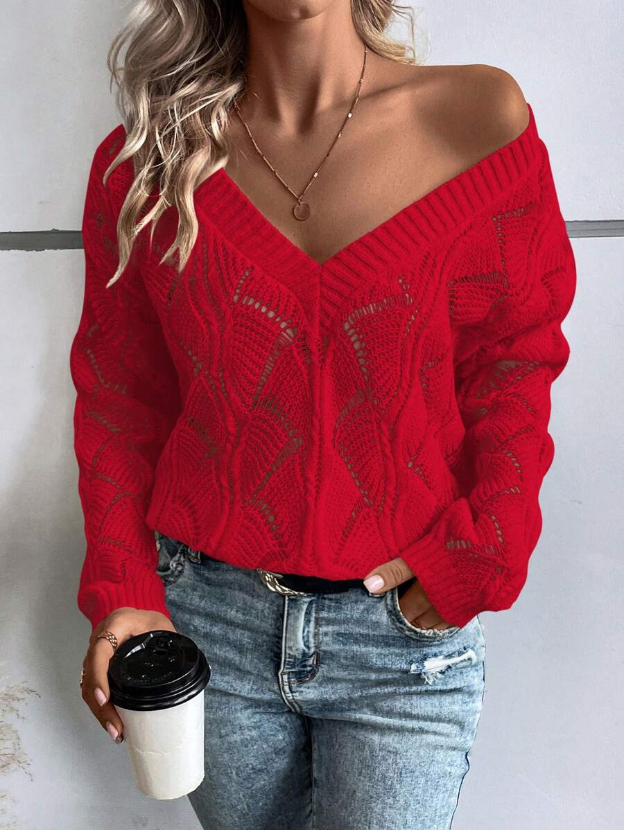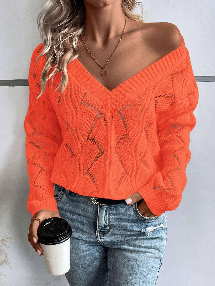 Maglione casual con scollo a V monocolore, a maniche lunghe
