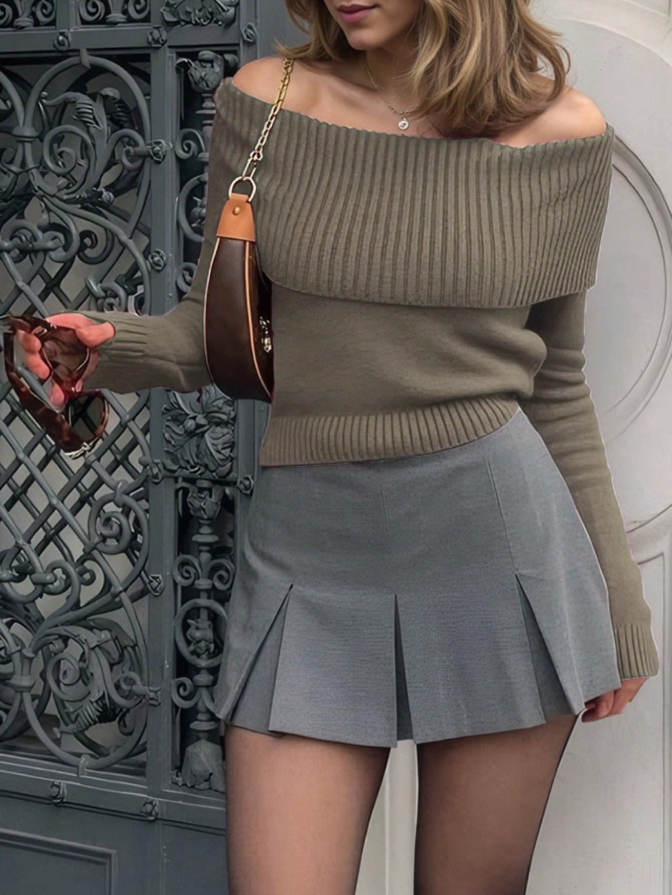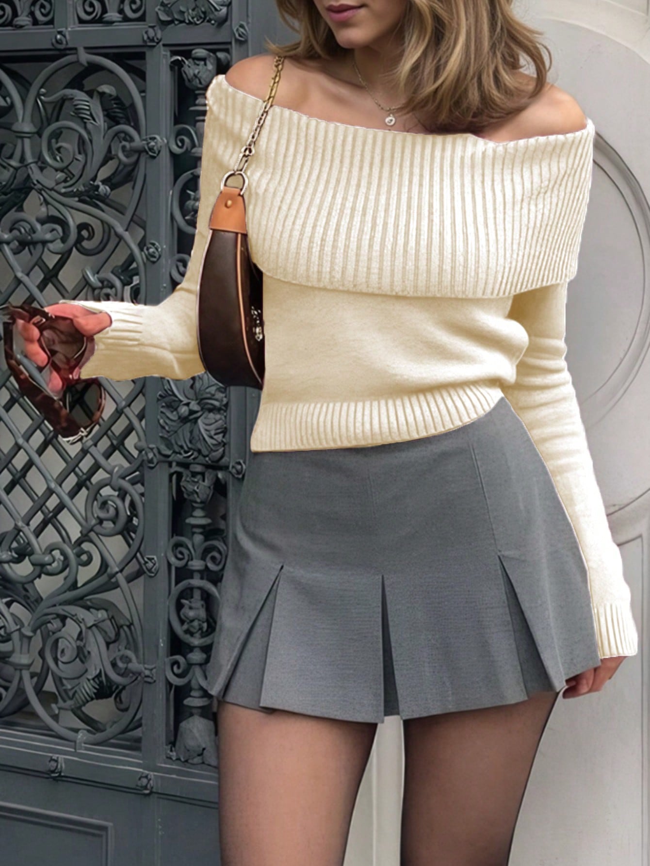 Maglione casual ed elegante da donna, a spalle scoperte, maniche lunghe
