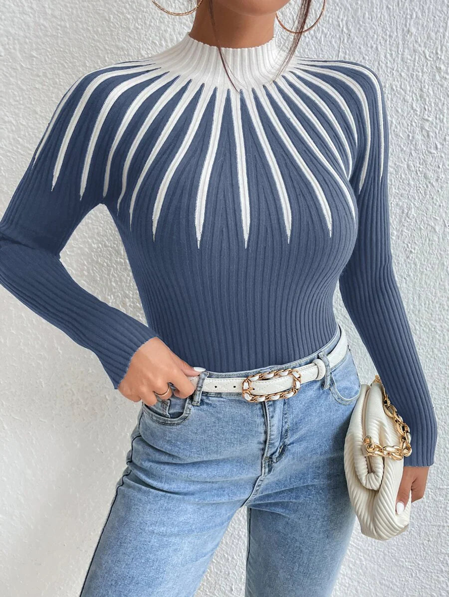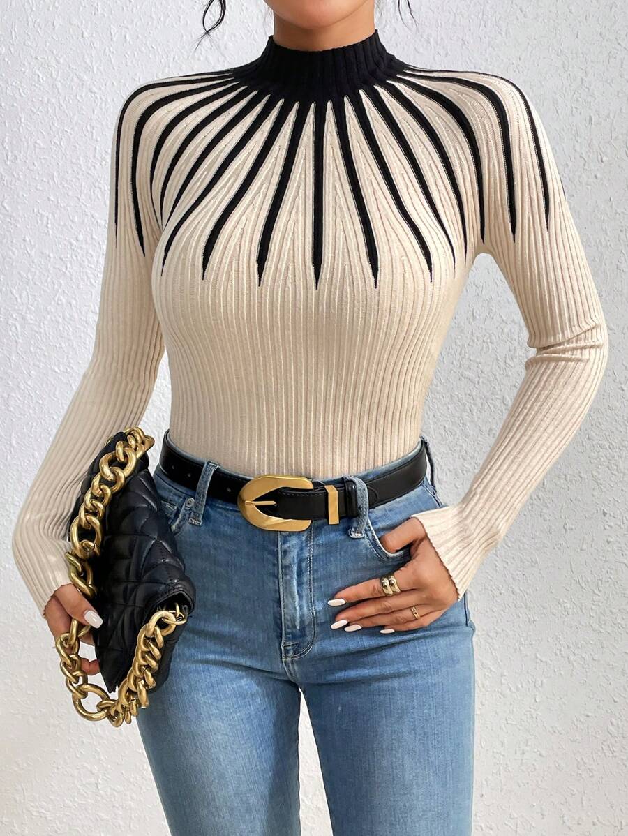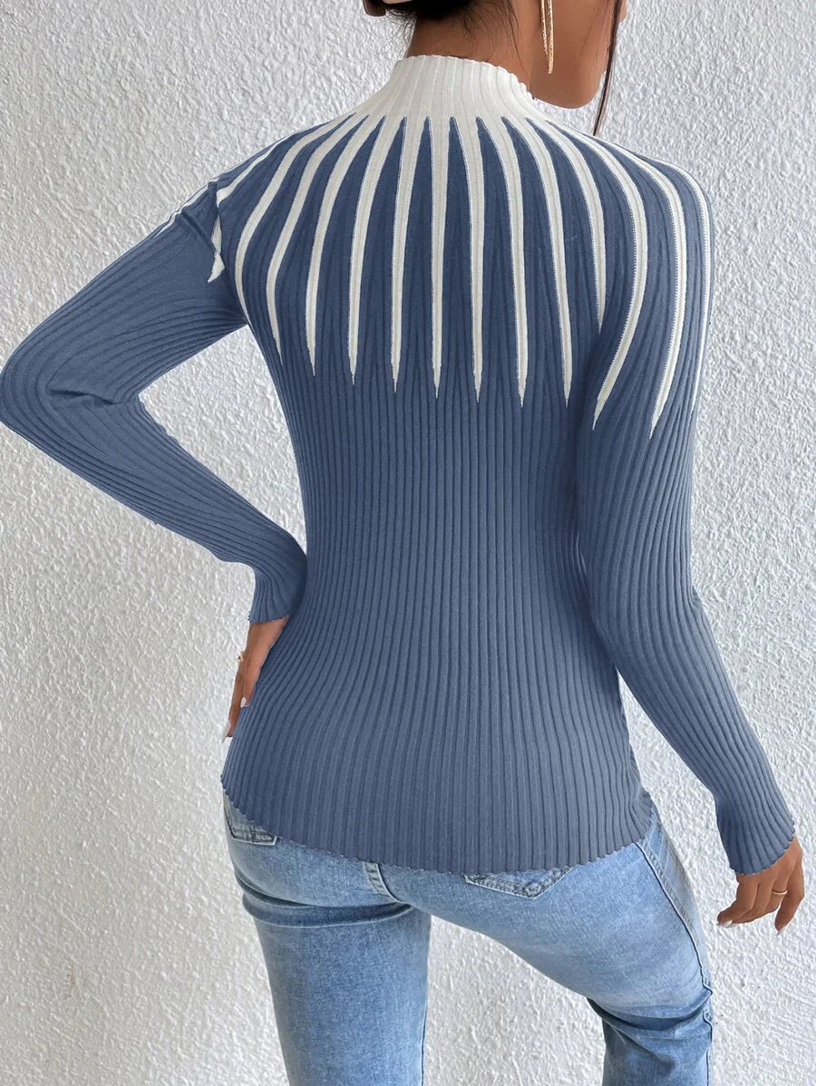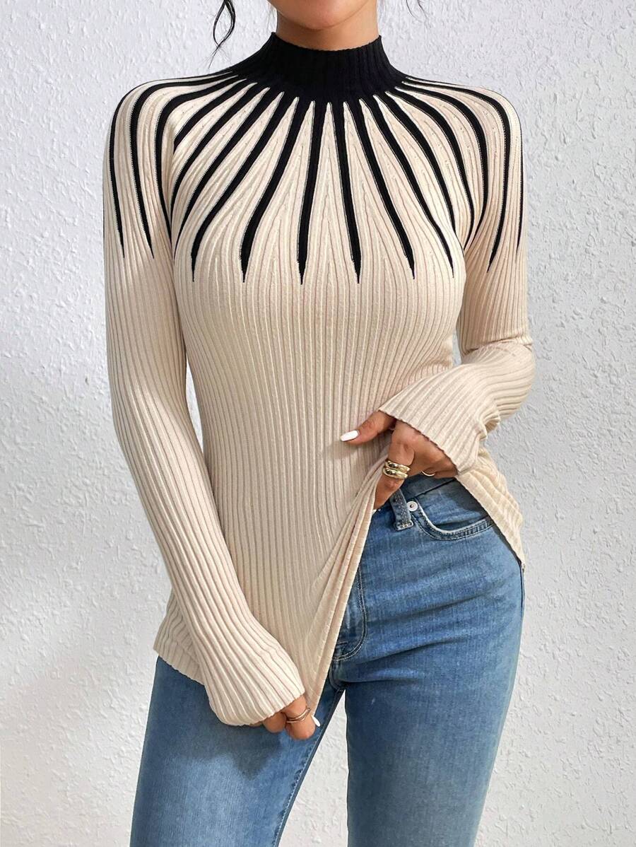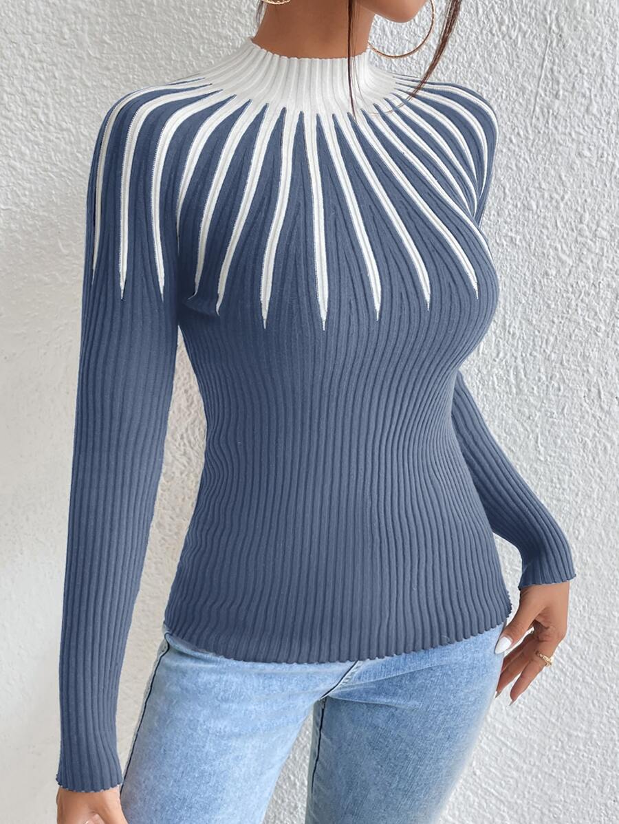 Maglione con collo a lupetto bicolore, maglie a maniche lunghe