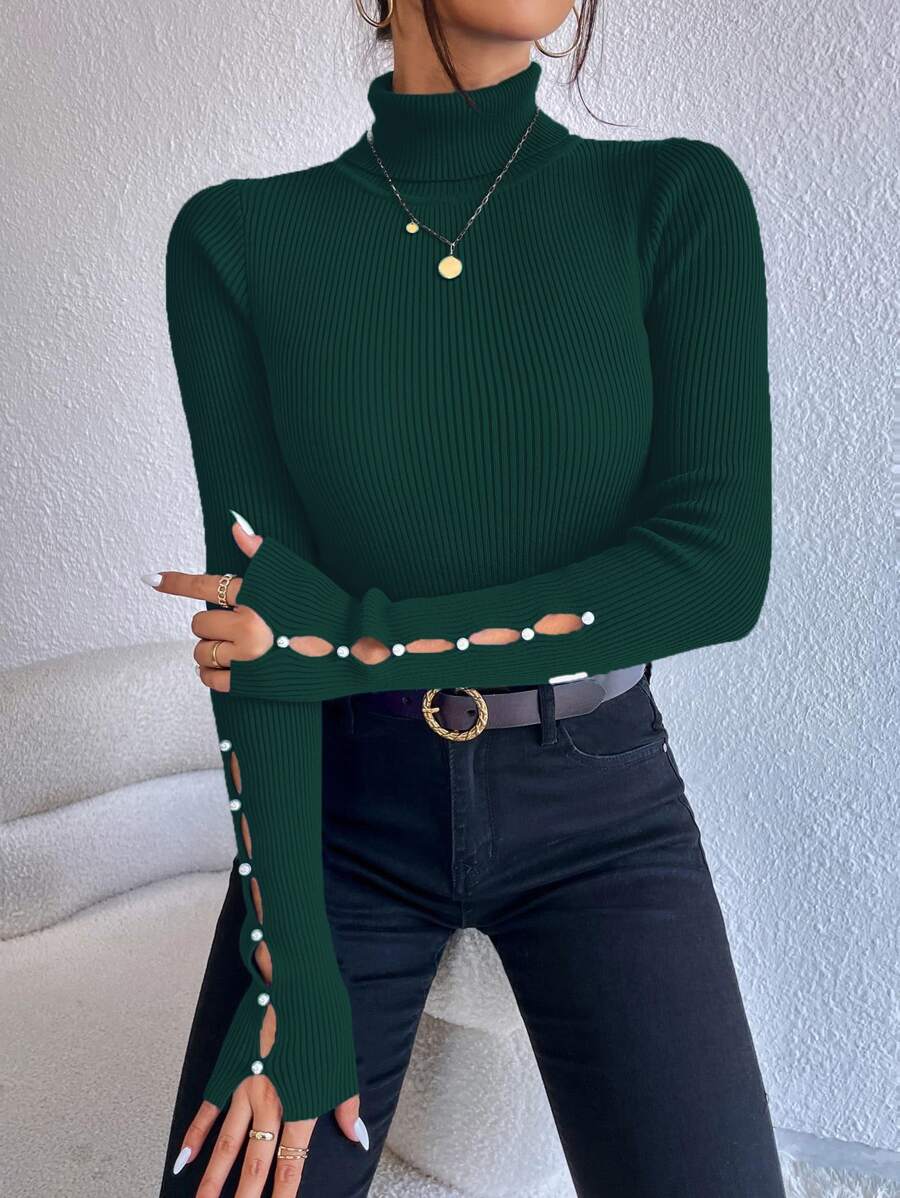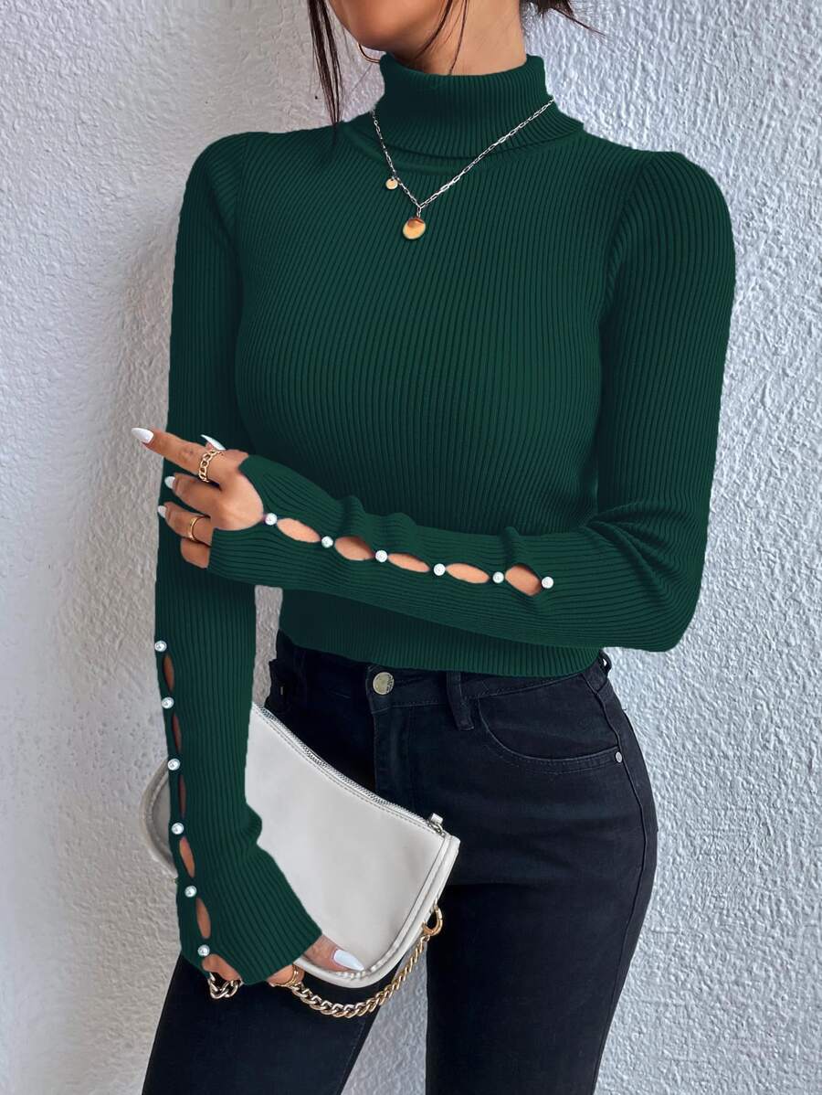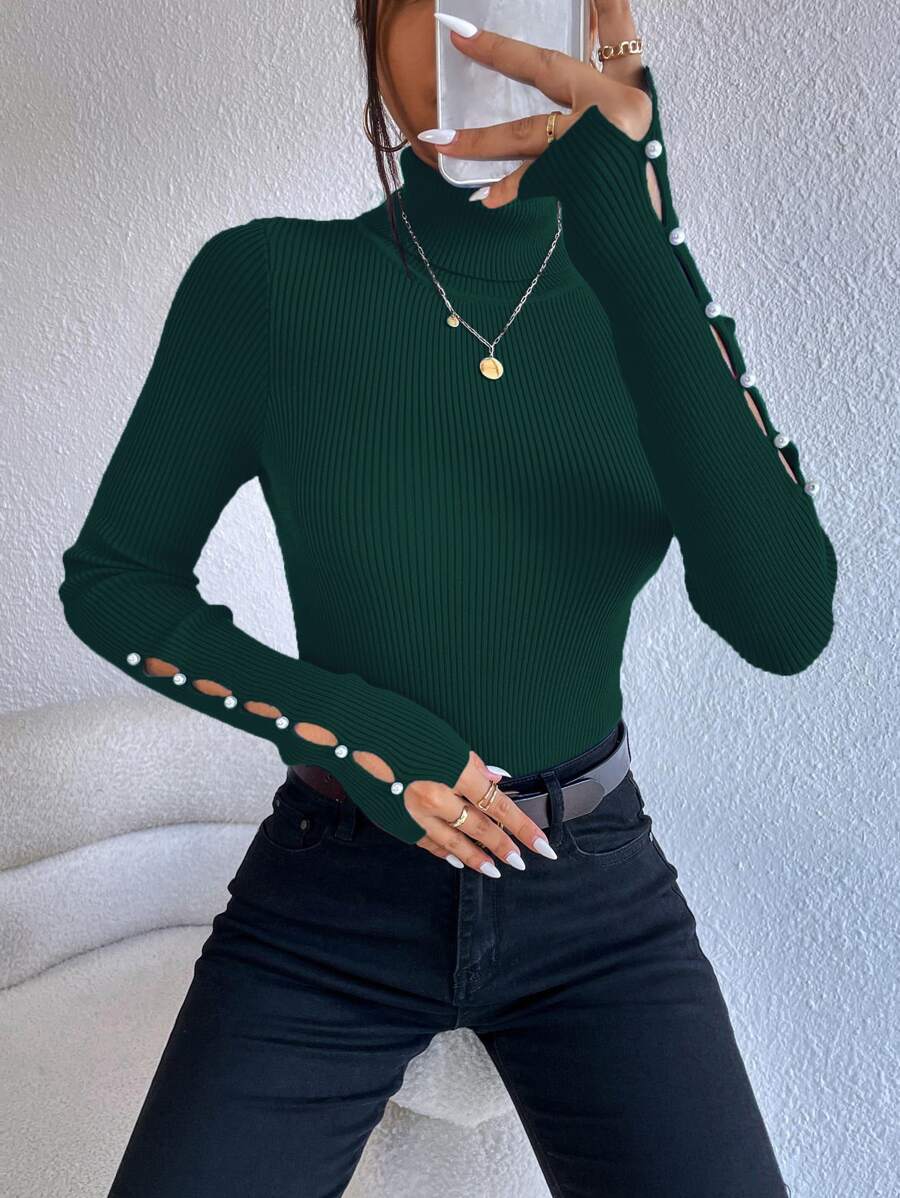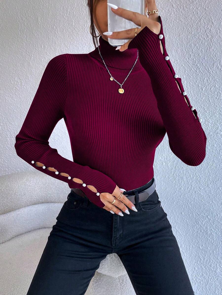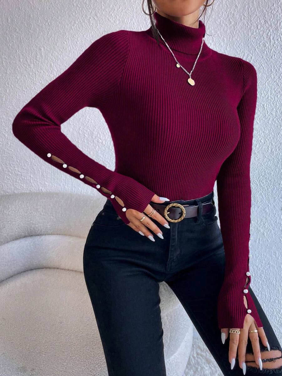 Maglione con collo alto e dettagli sui bottoni, top a maniche lunghe