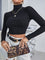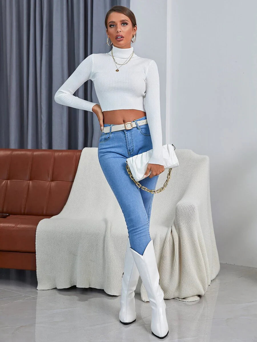 Maglione corto a collo alto in maglia a costine, uniforme, maniche lunghe