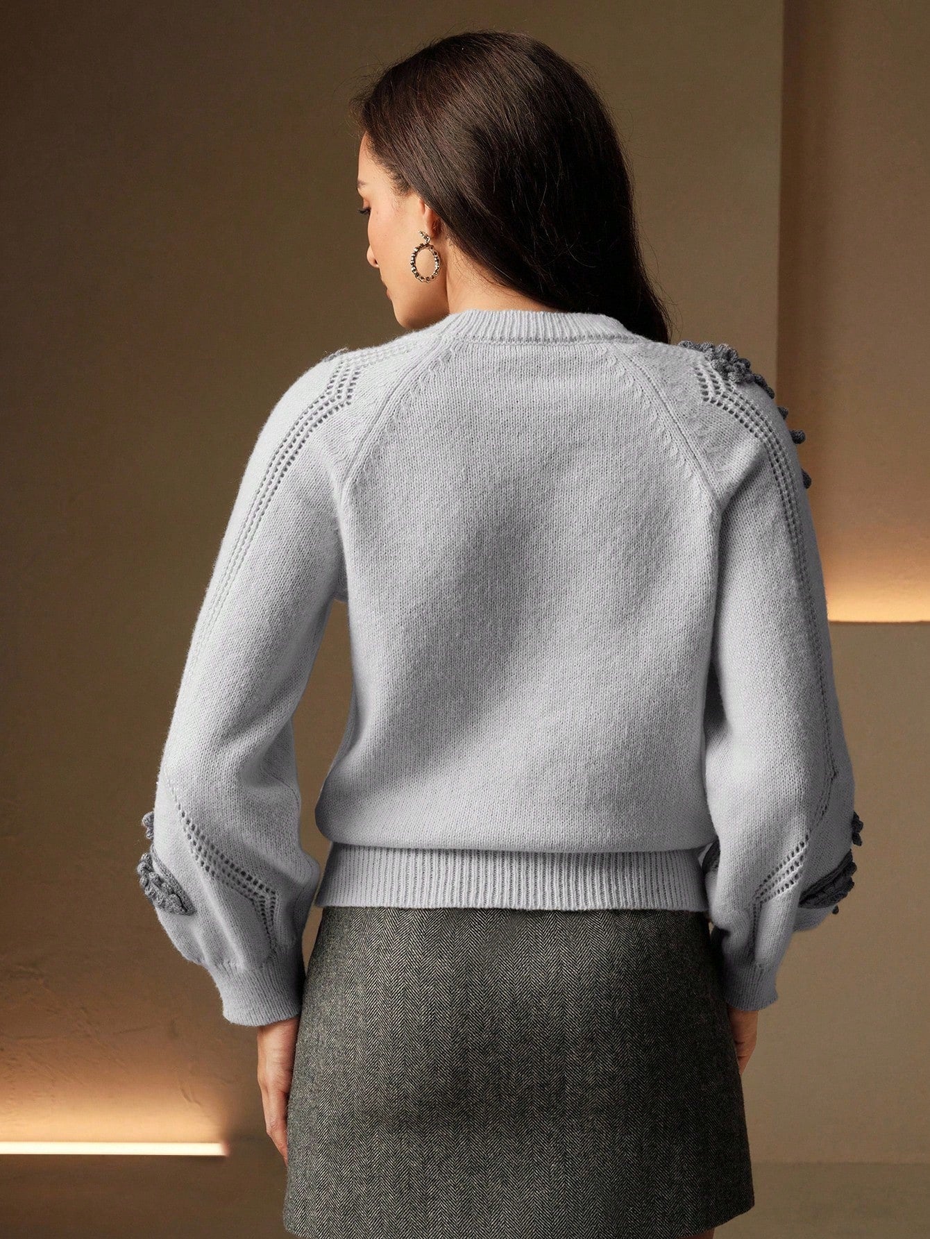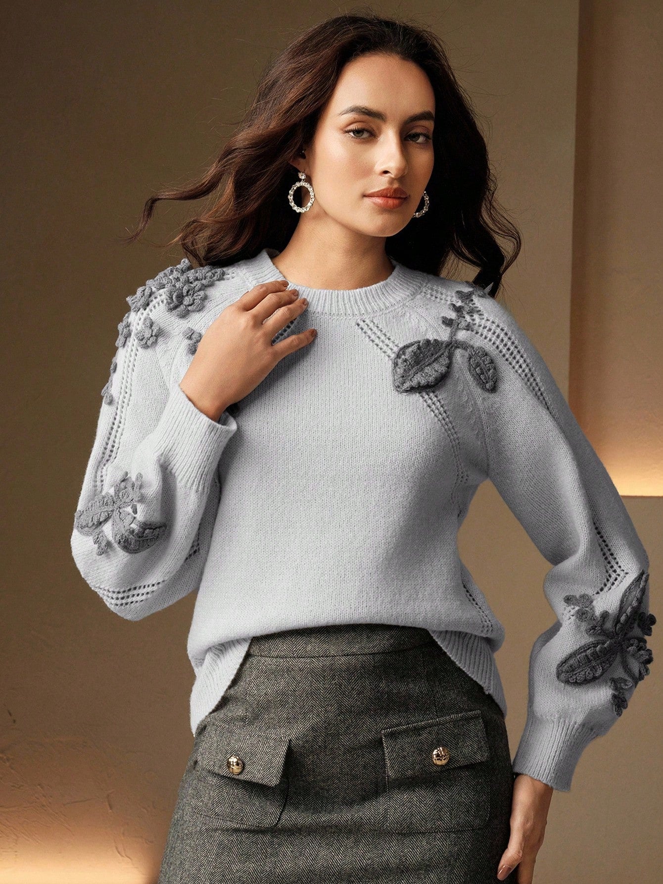 Maglione elegante da donna con motivo floreale 3D lavorato a maglia