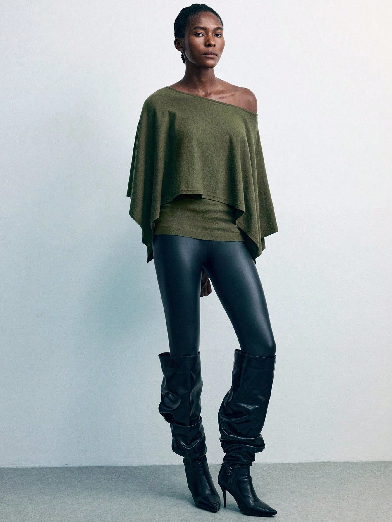 Maglione lasco di moda con maniche a pipistrello di colore unito per donna