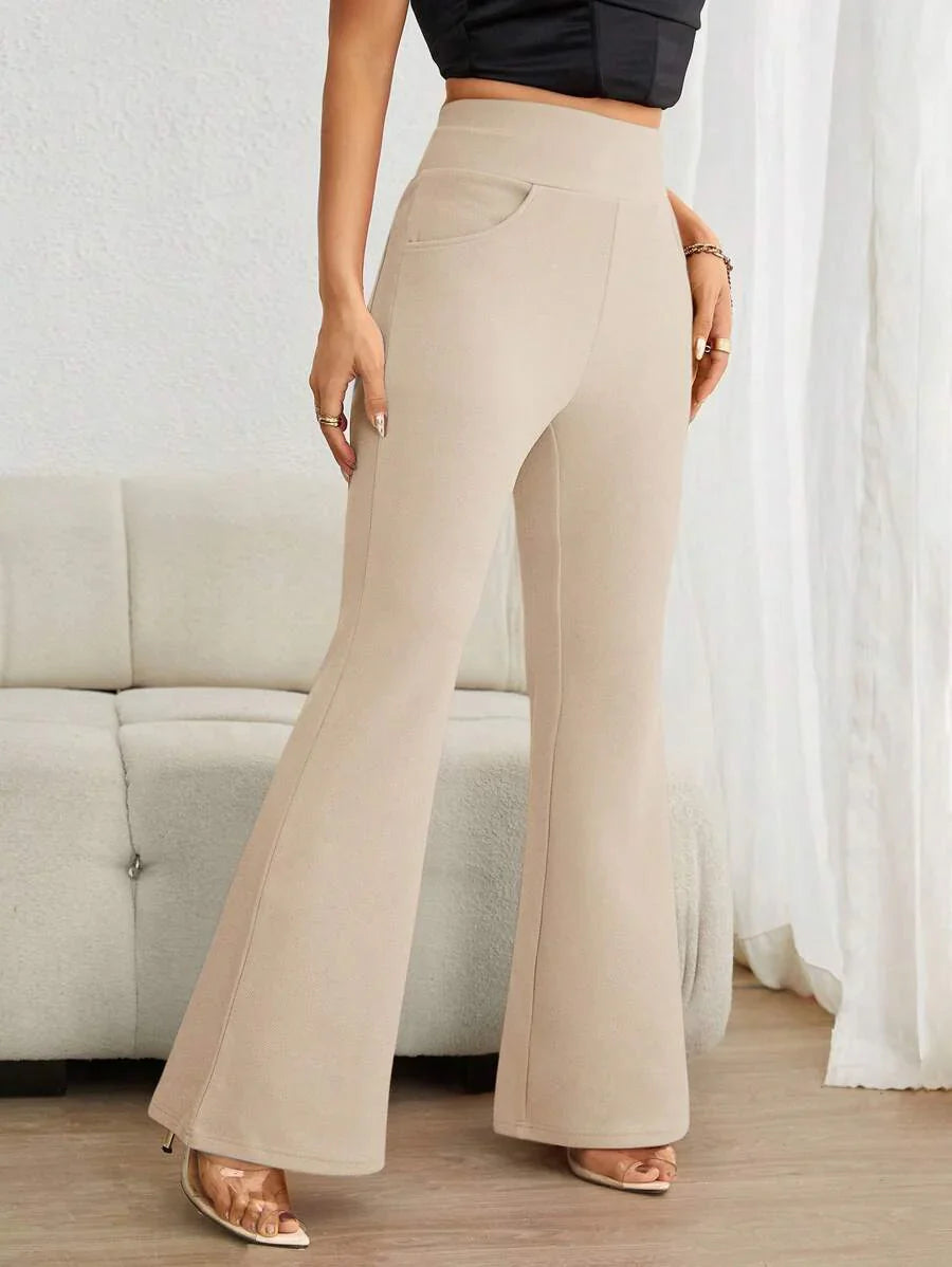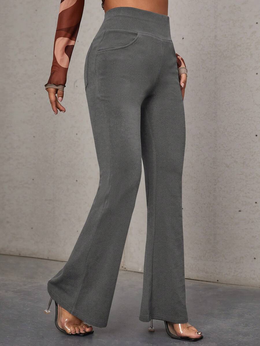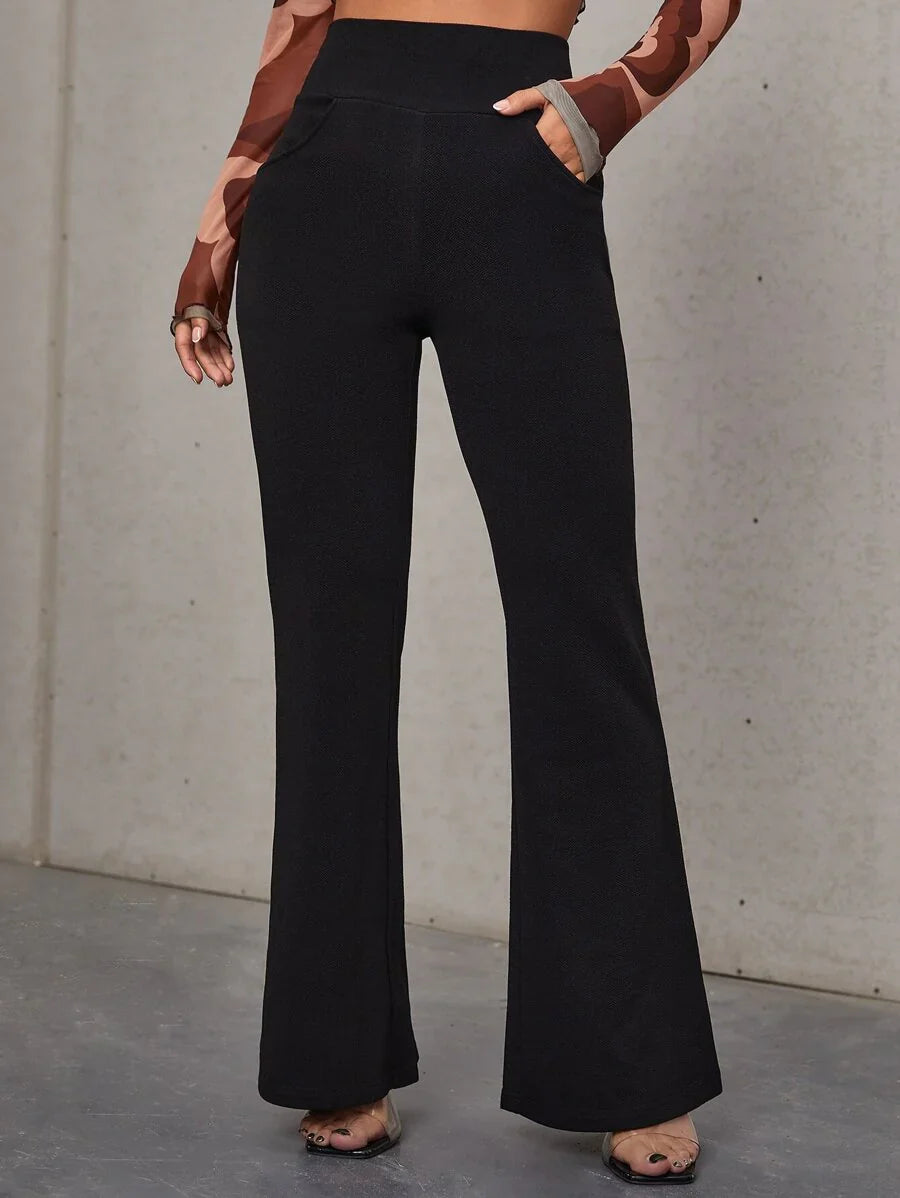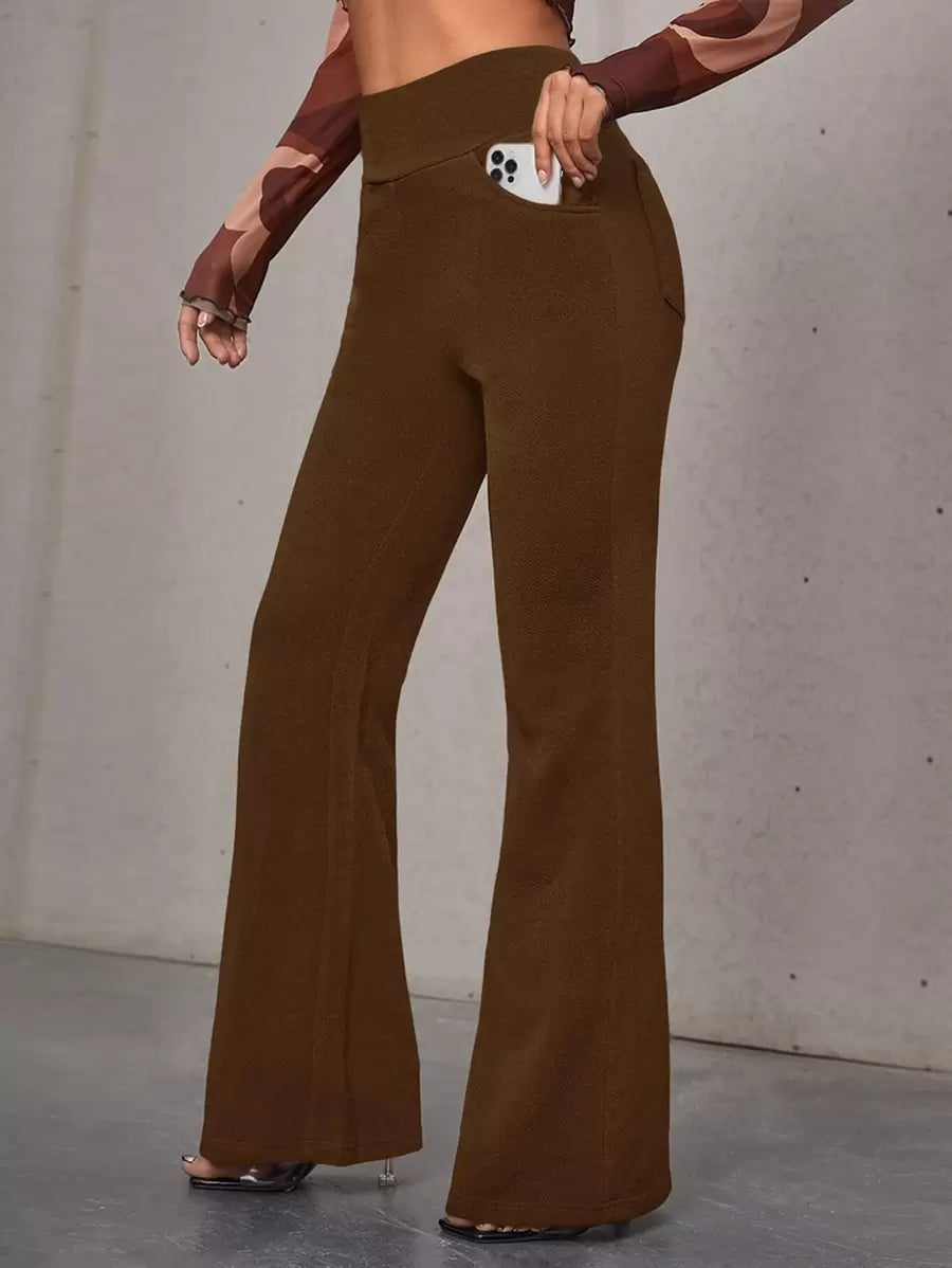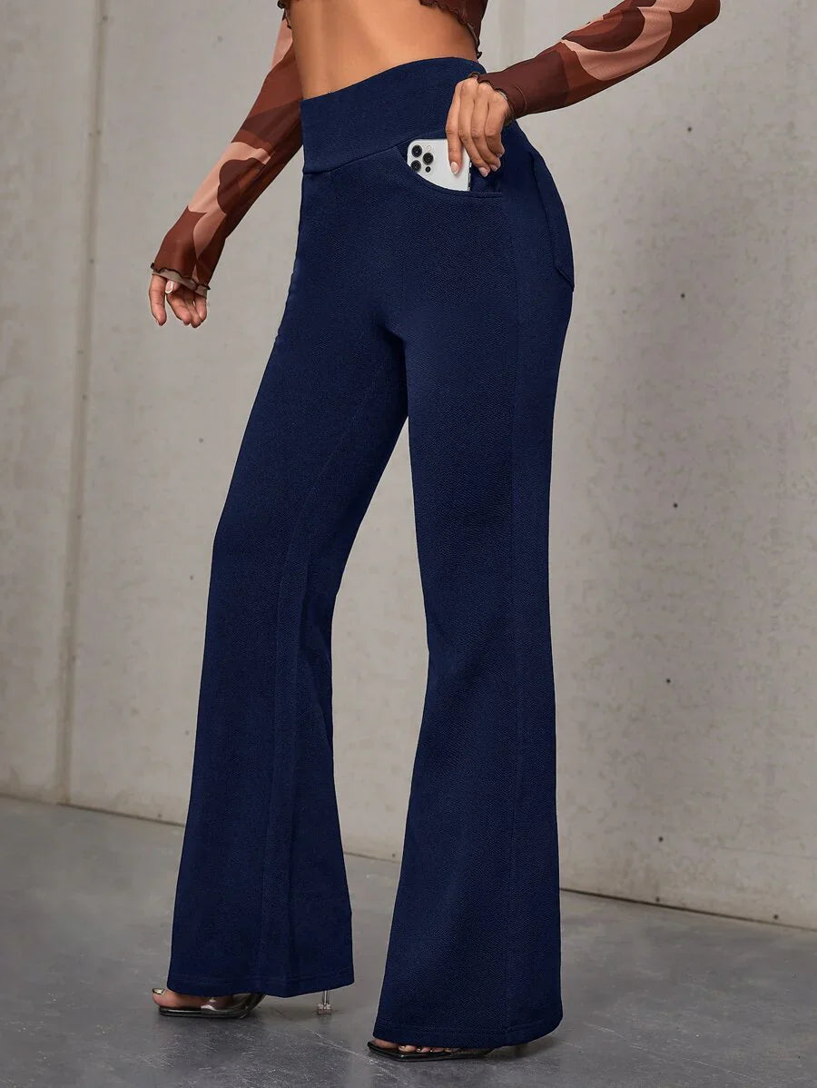Pantaloni a vita alta a zampa d'elefante con tasca per il telefono