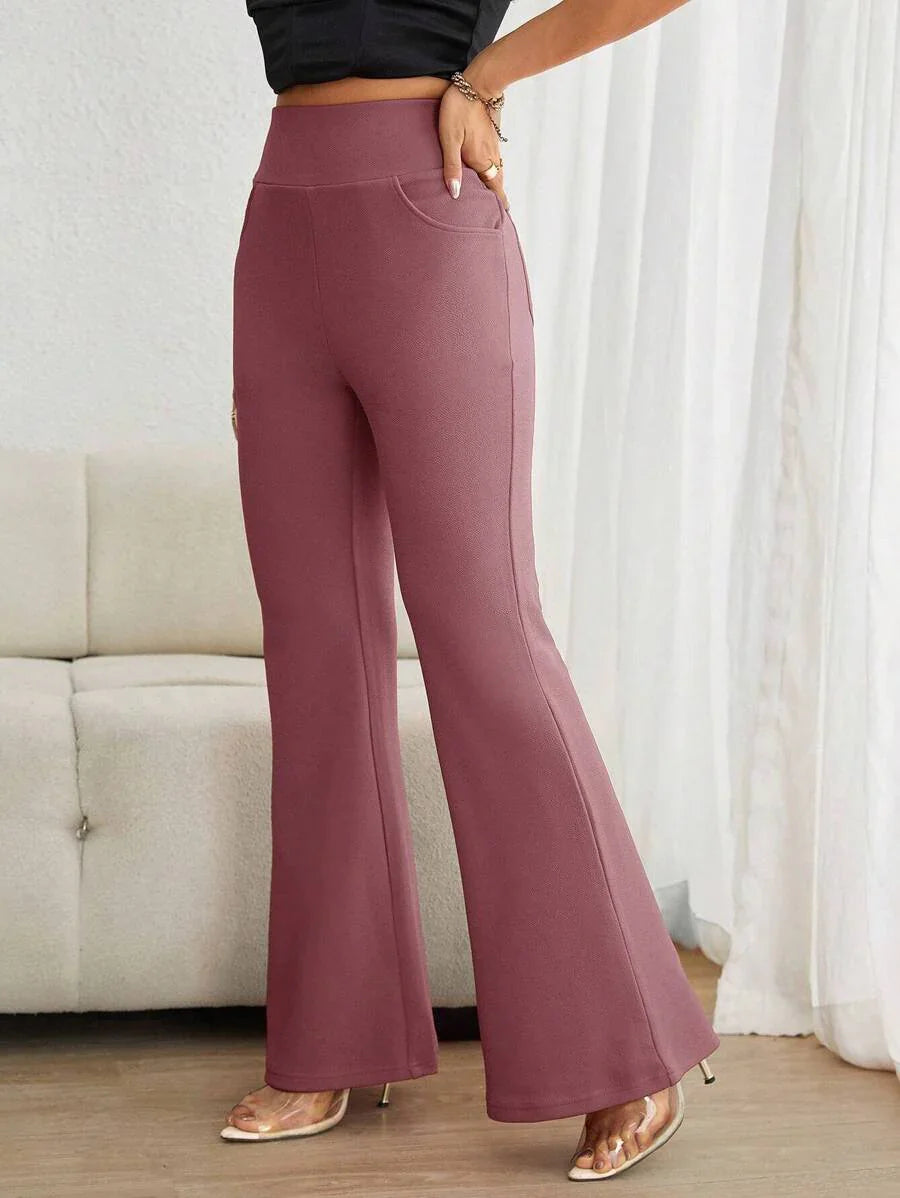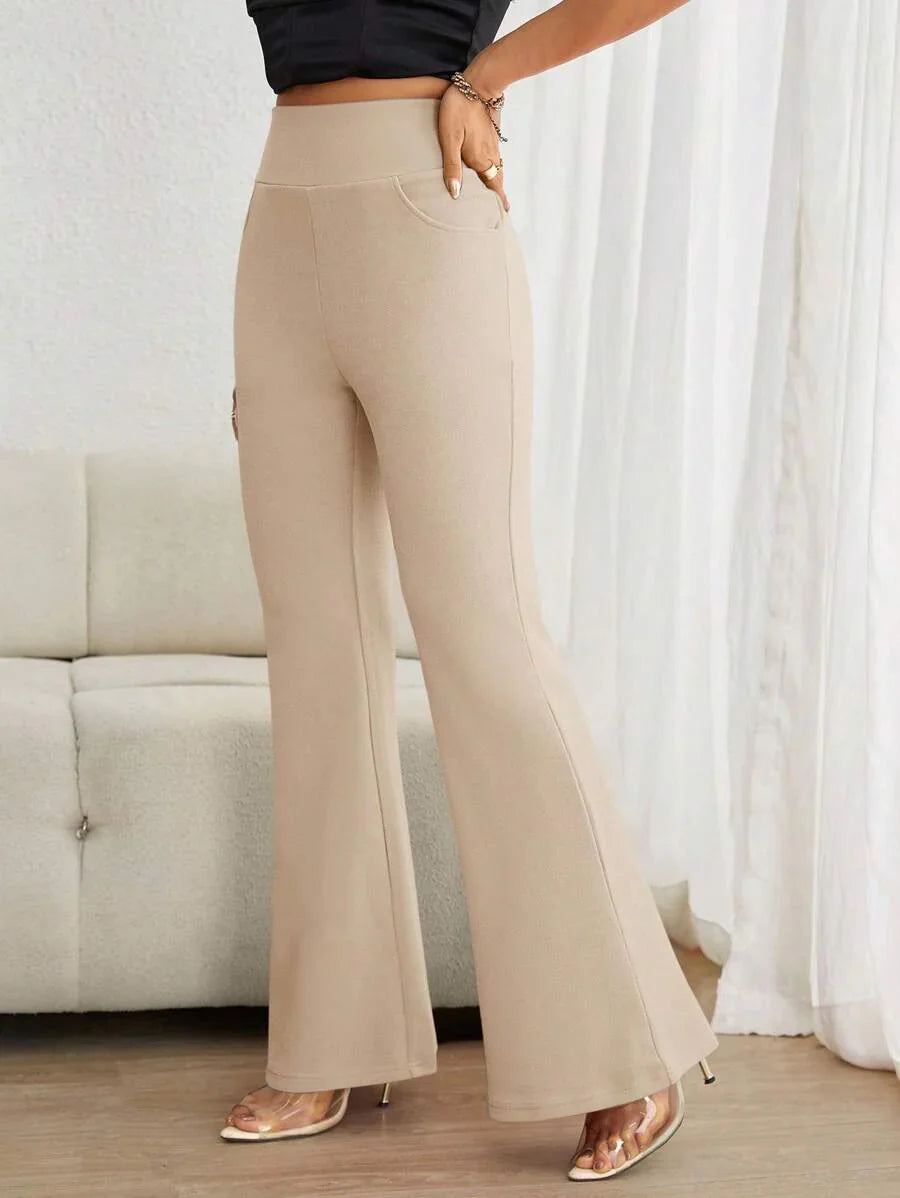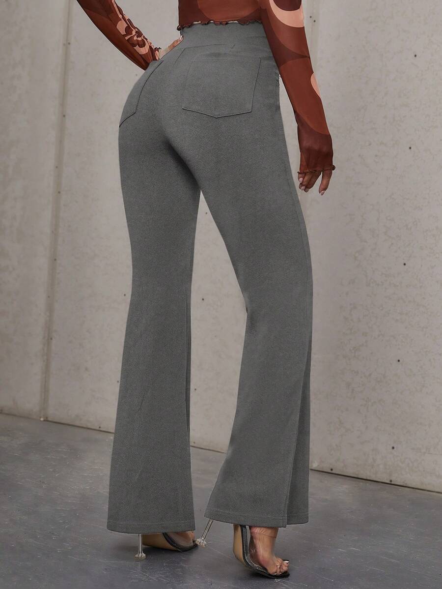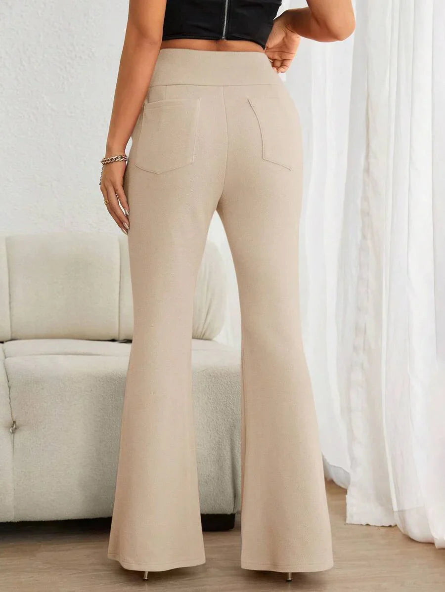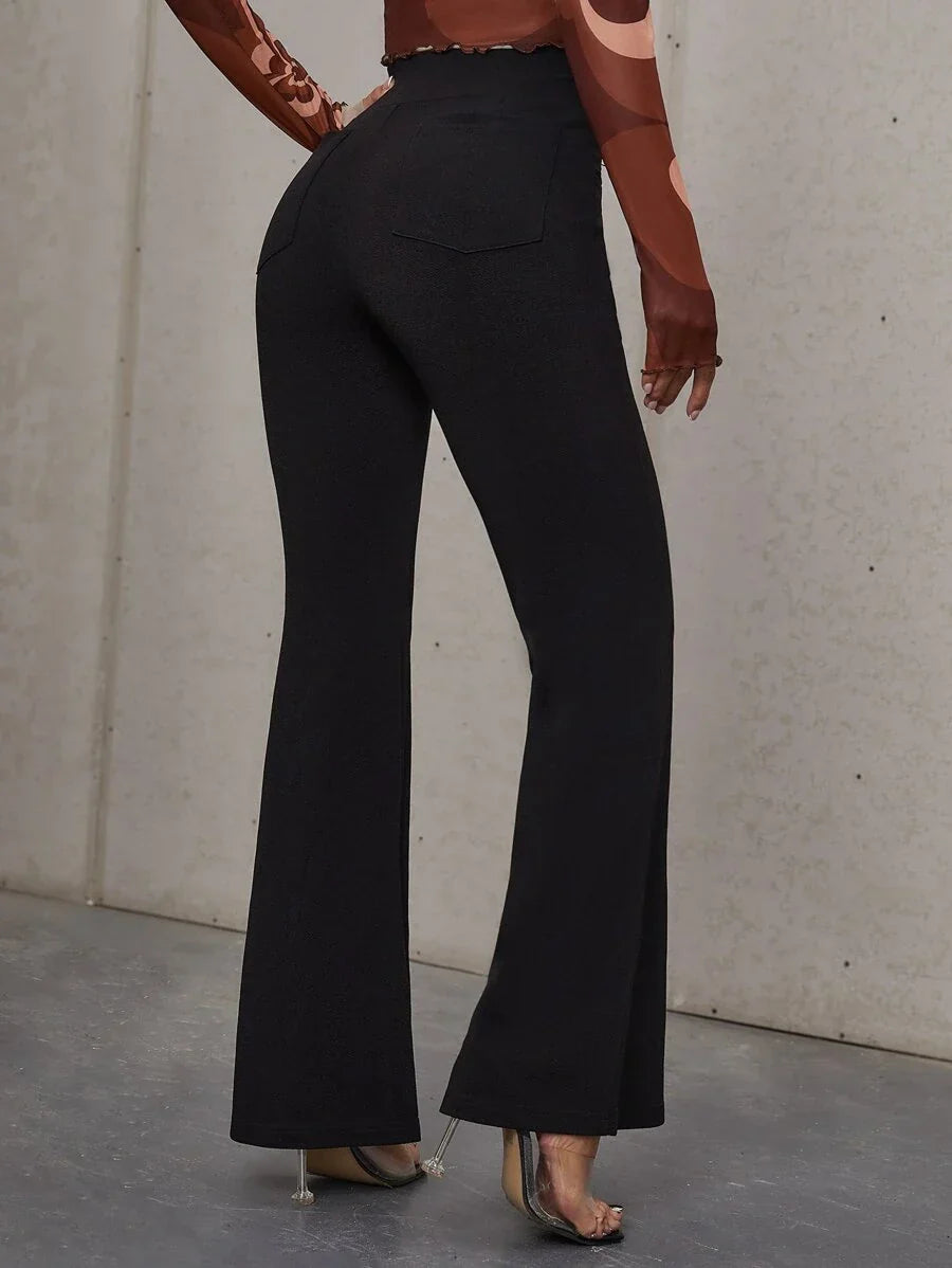 Pantaloni a vita alta a zampa d'elefante con tasca per il telefono