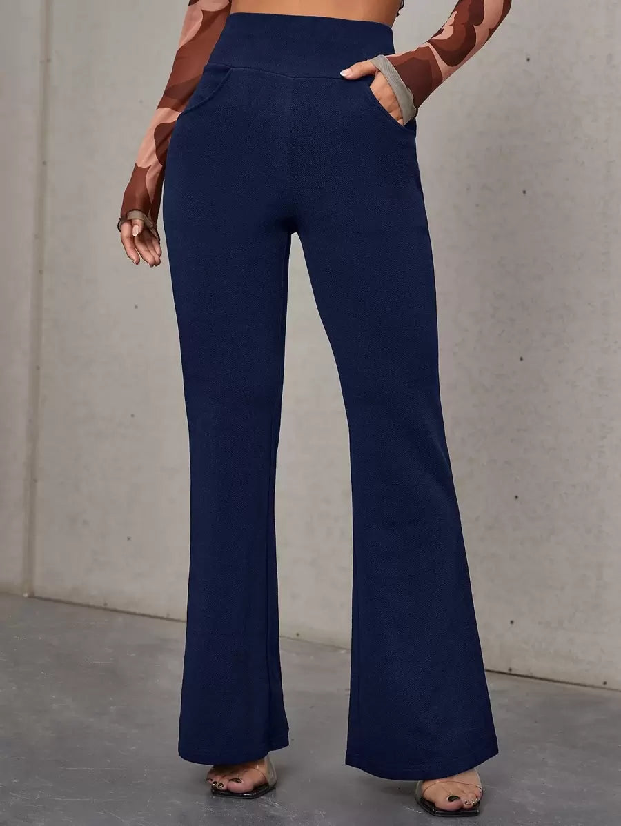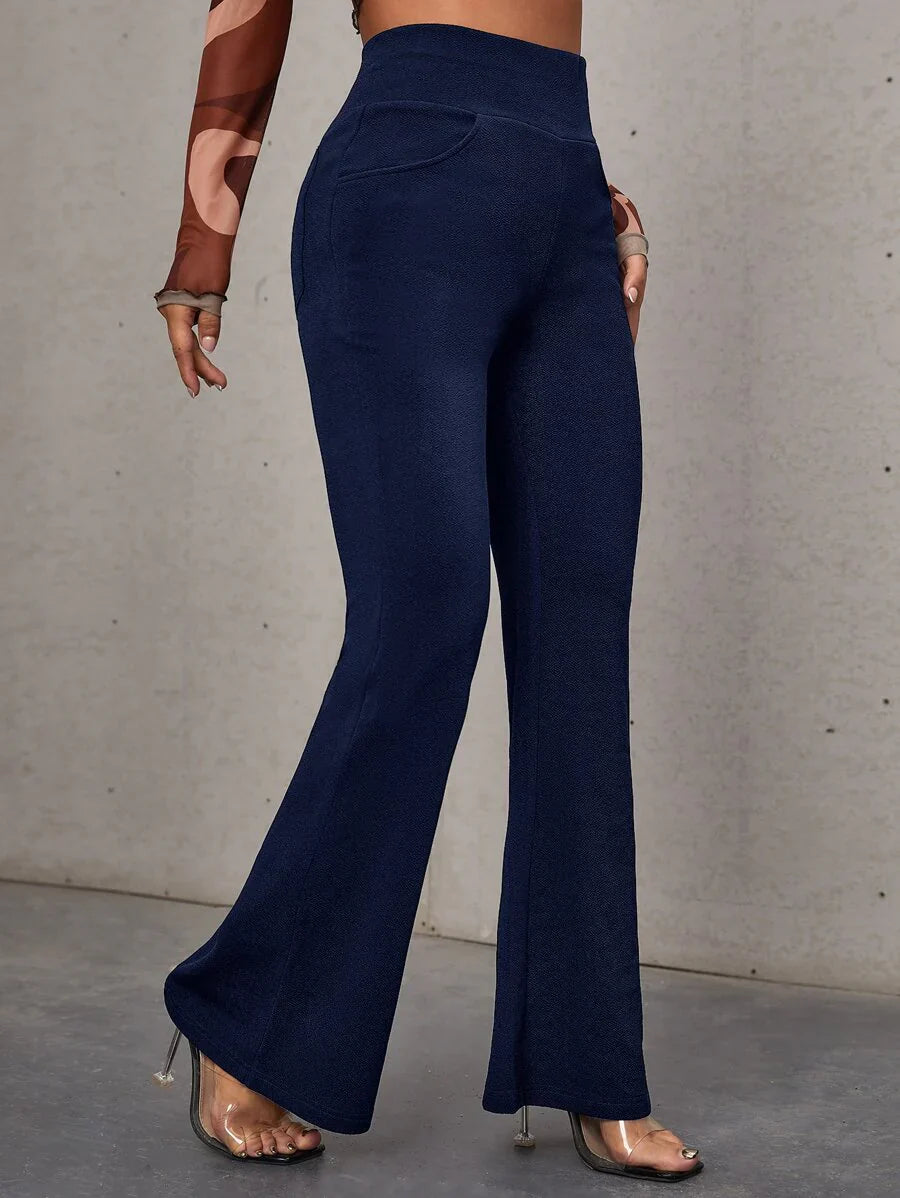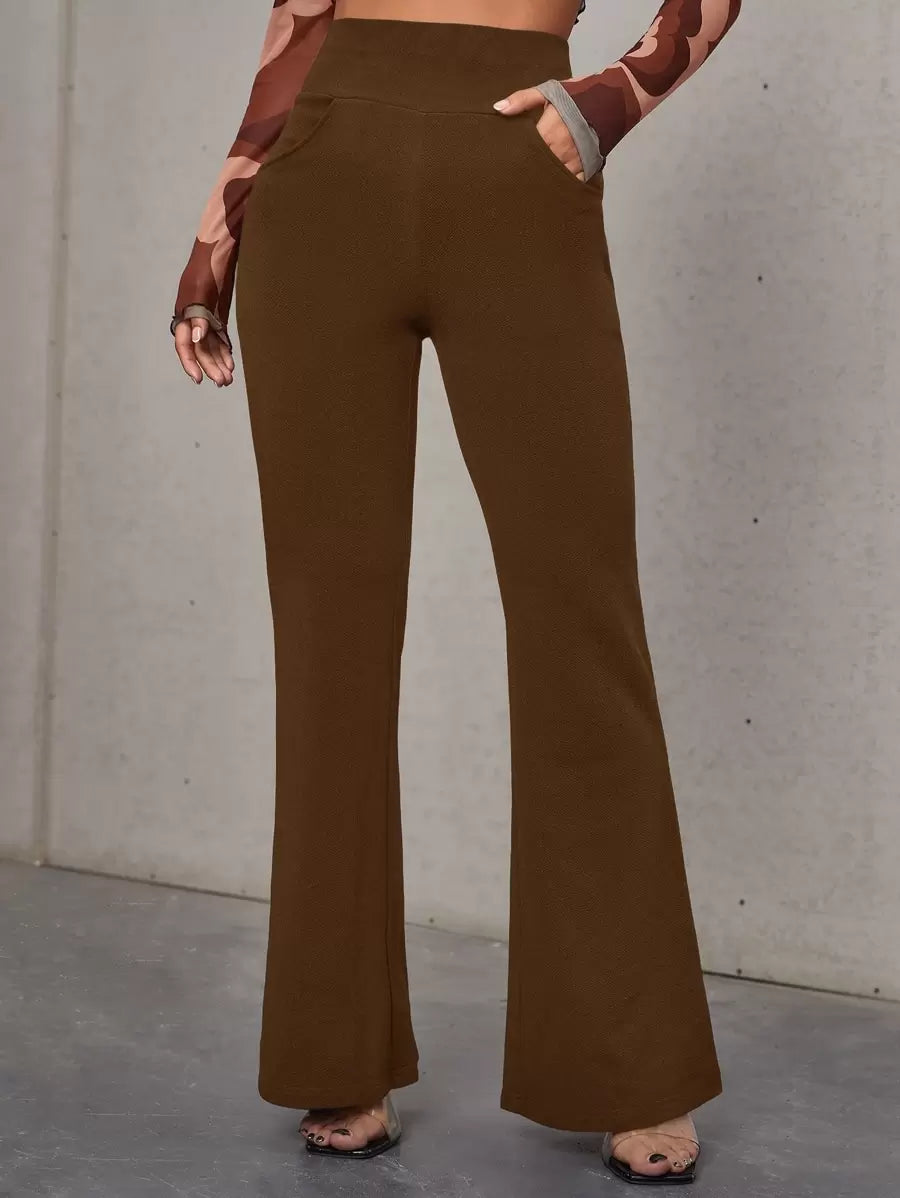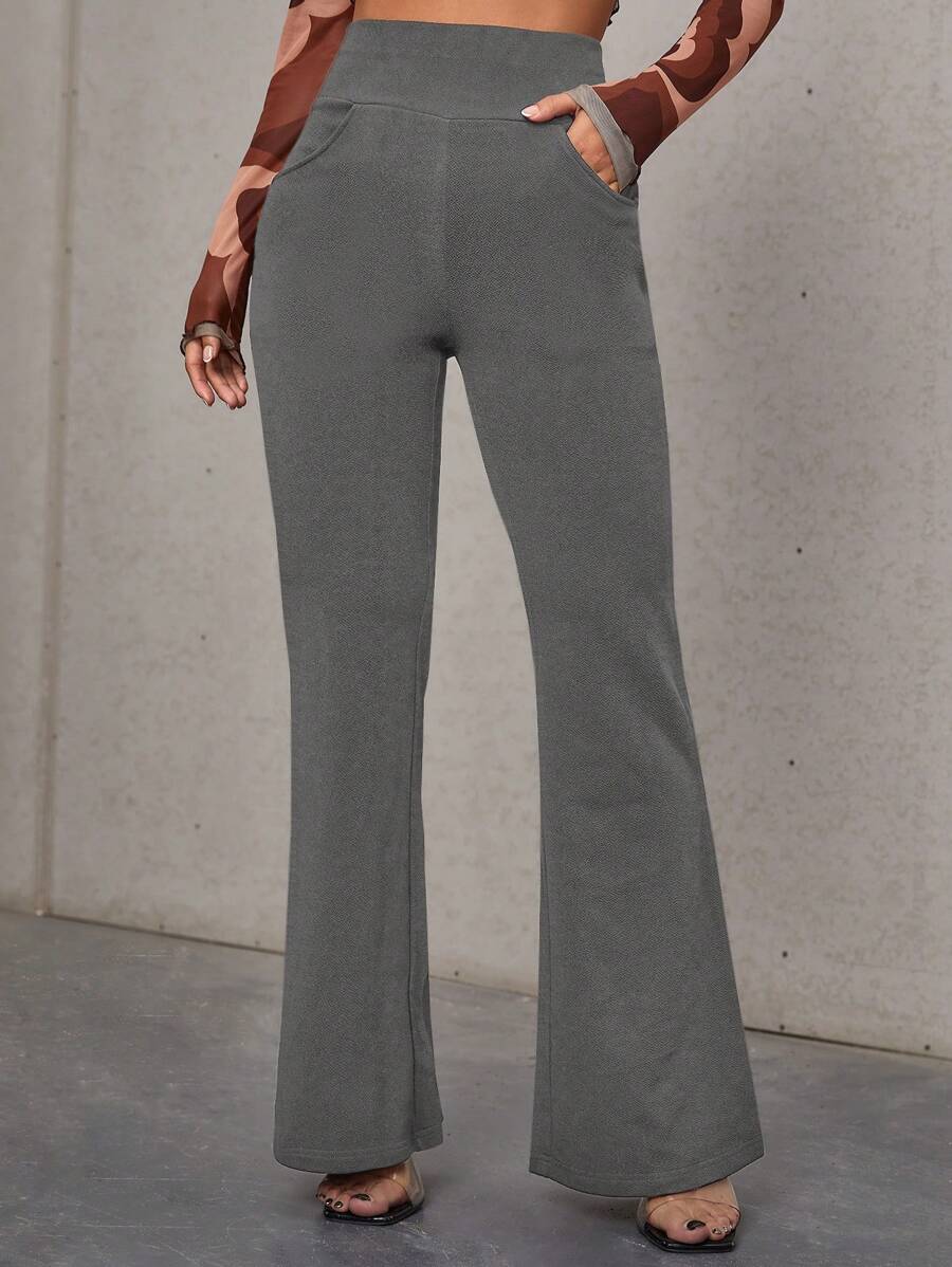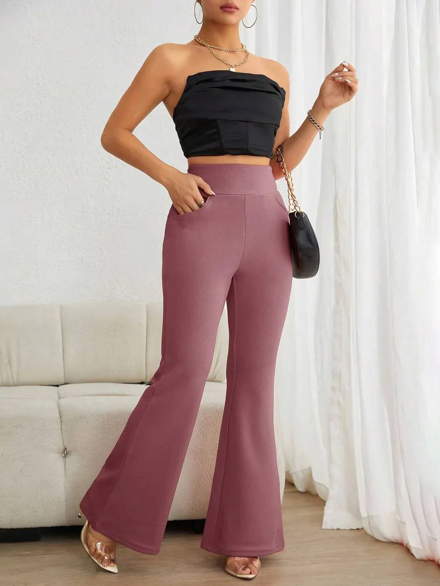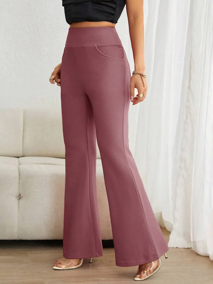 Pantaloni a vita alta a zampa d'elefante con tasca per il telefono