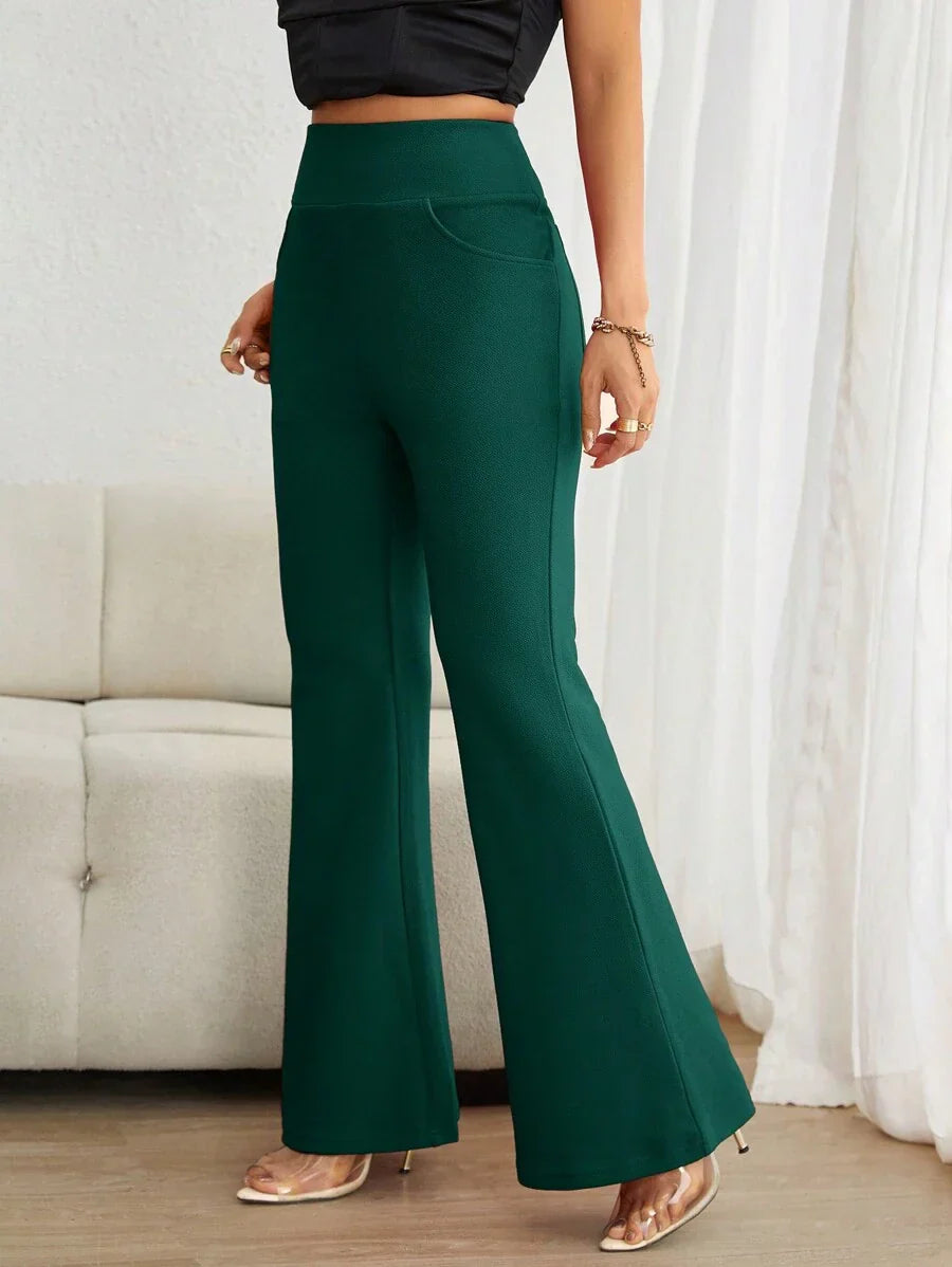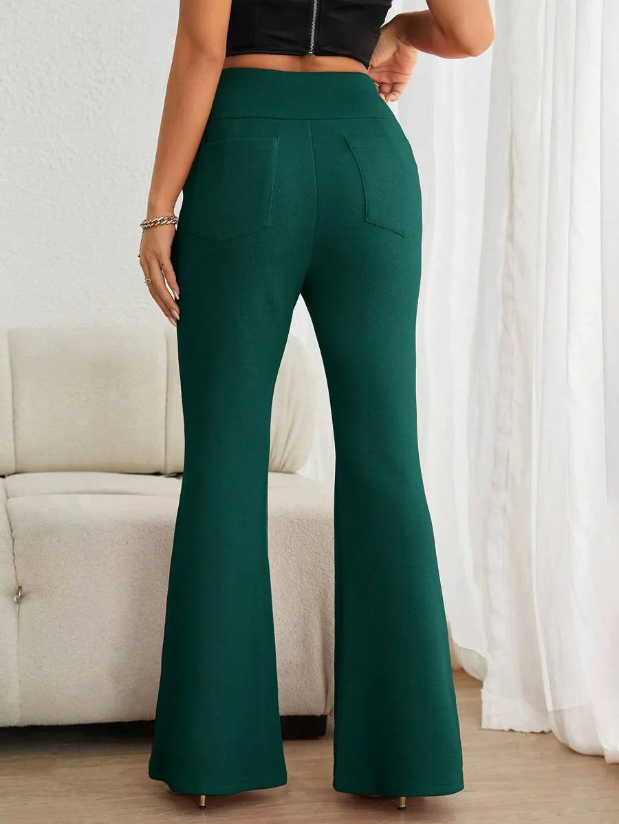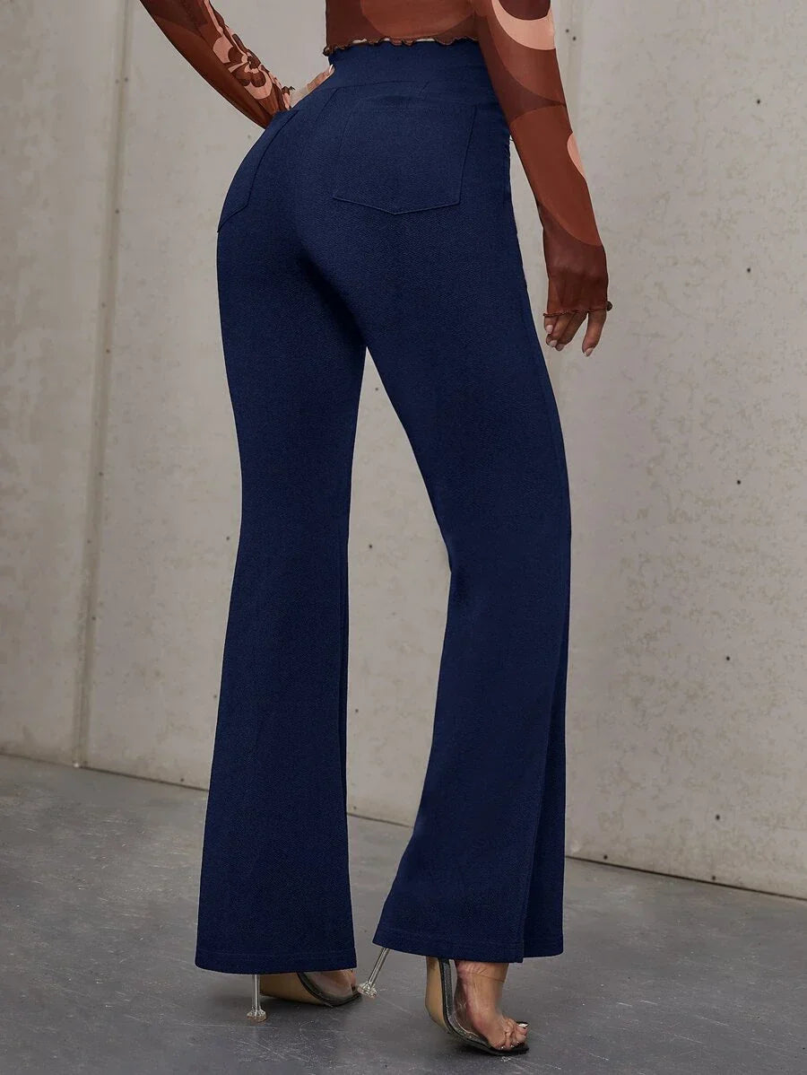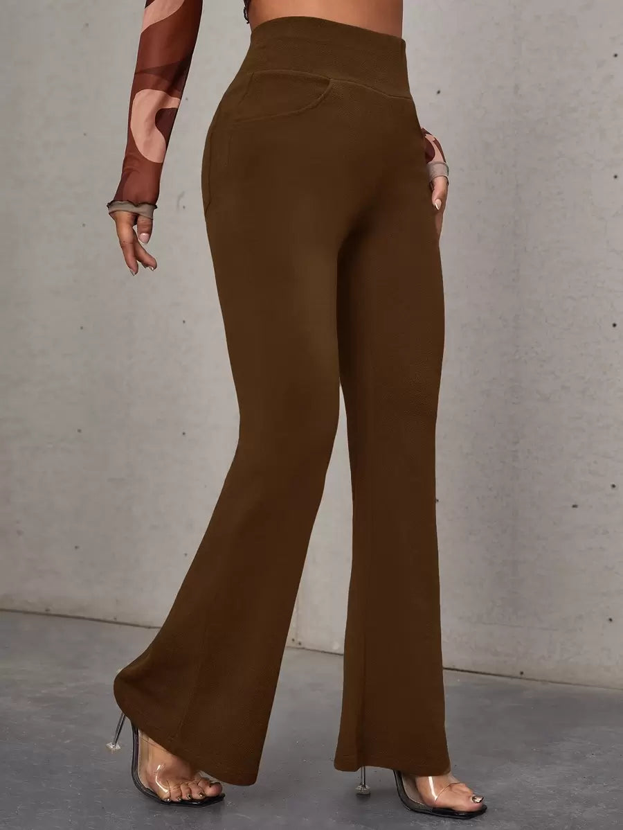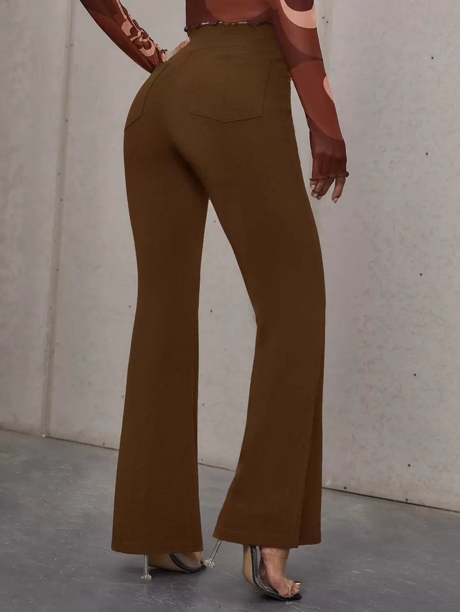 Pantaloni a vita alta a zampa d'elefante con tasca per il telefono