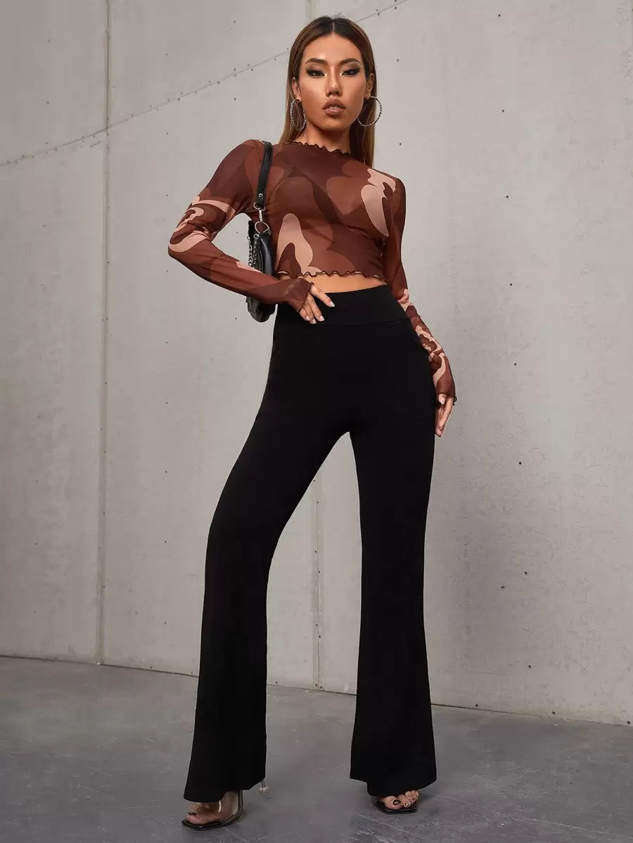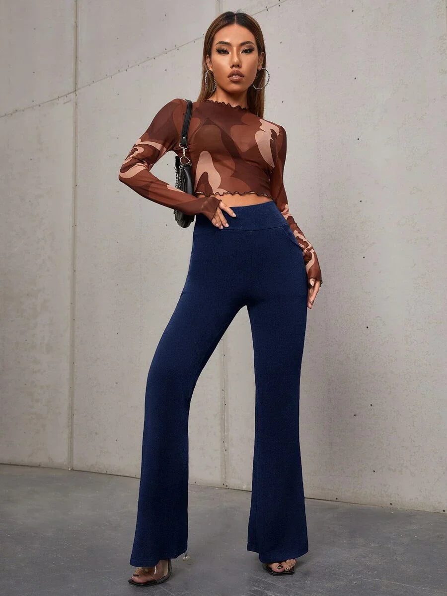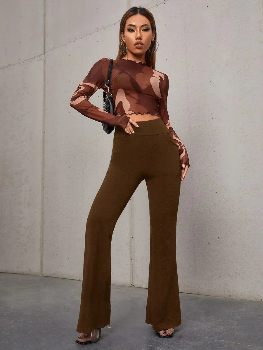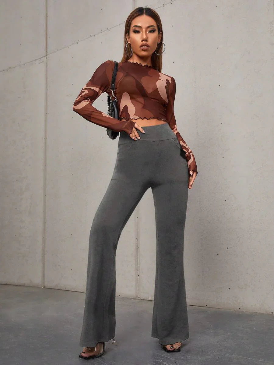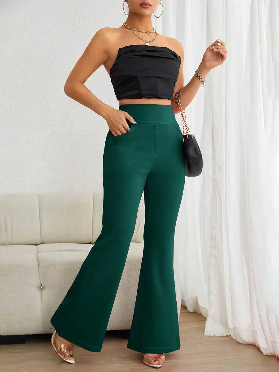 Pantaloni a vita alta a zampa d'elefante con tasca per il telefono