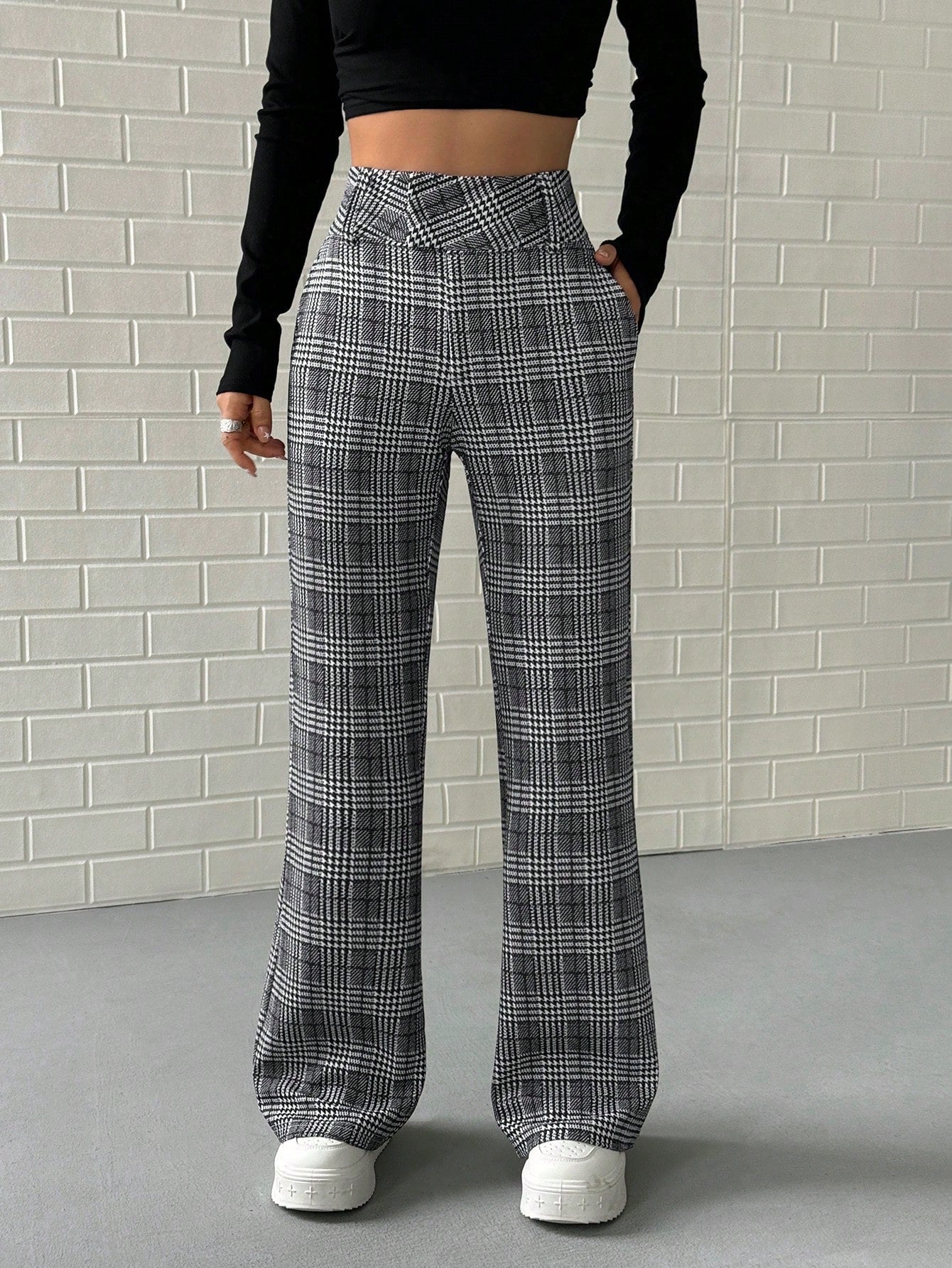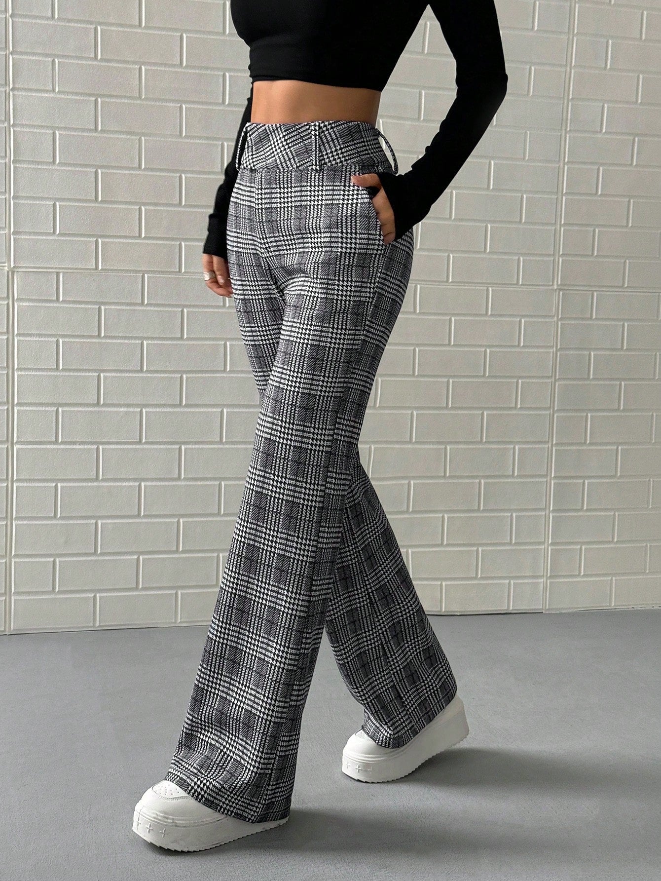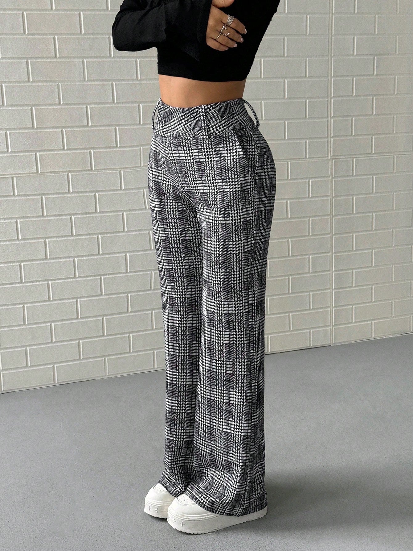 Pantaloni lunghi a vita bassa a quadri da donna