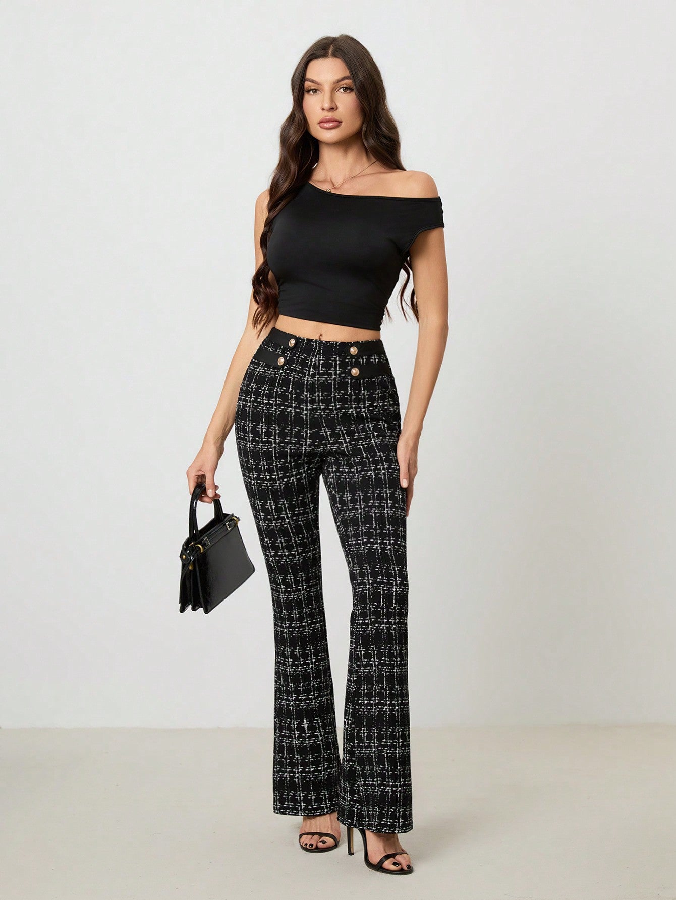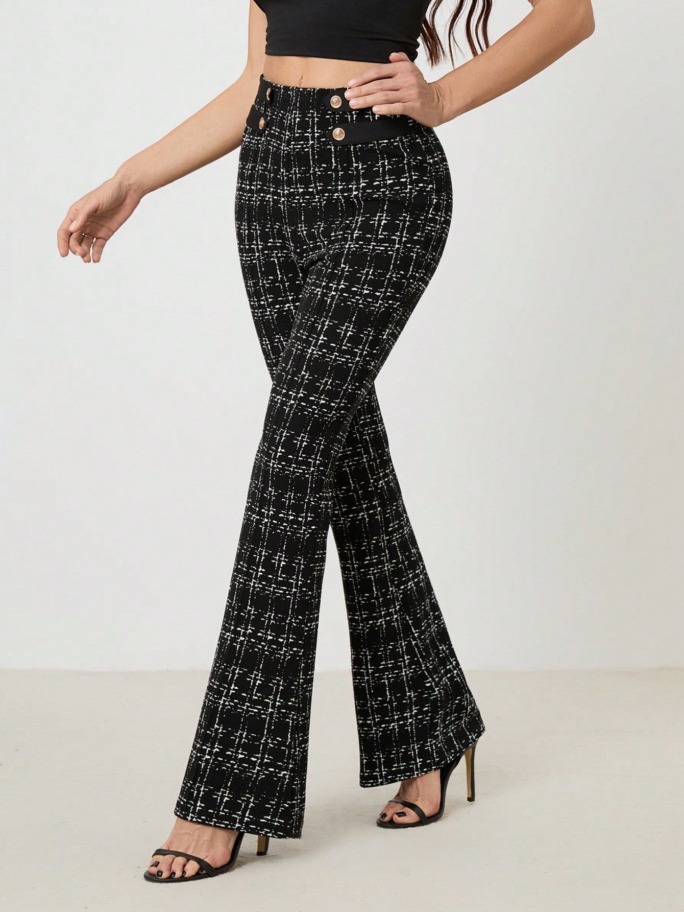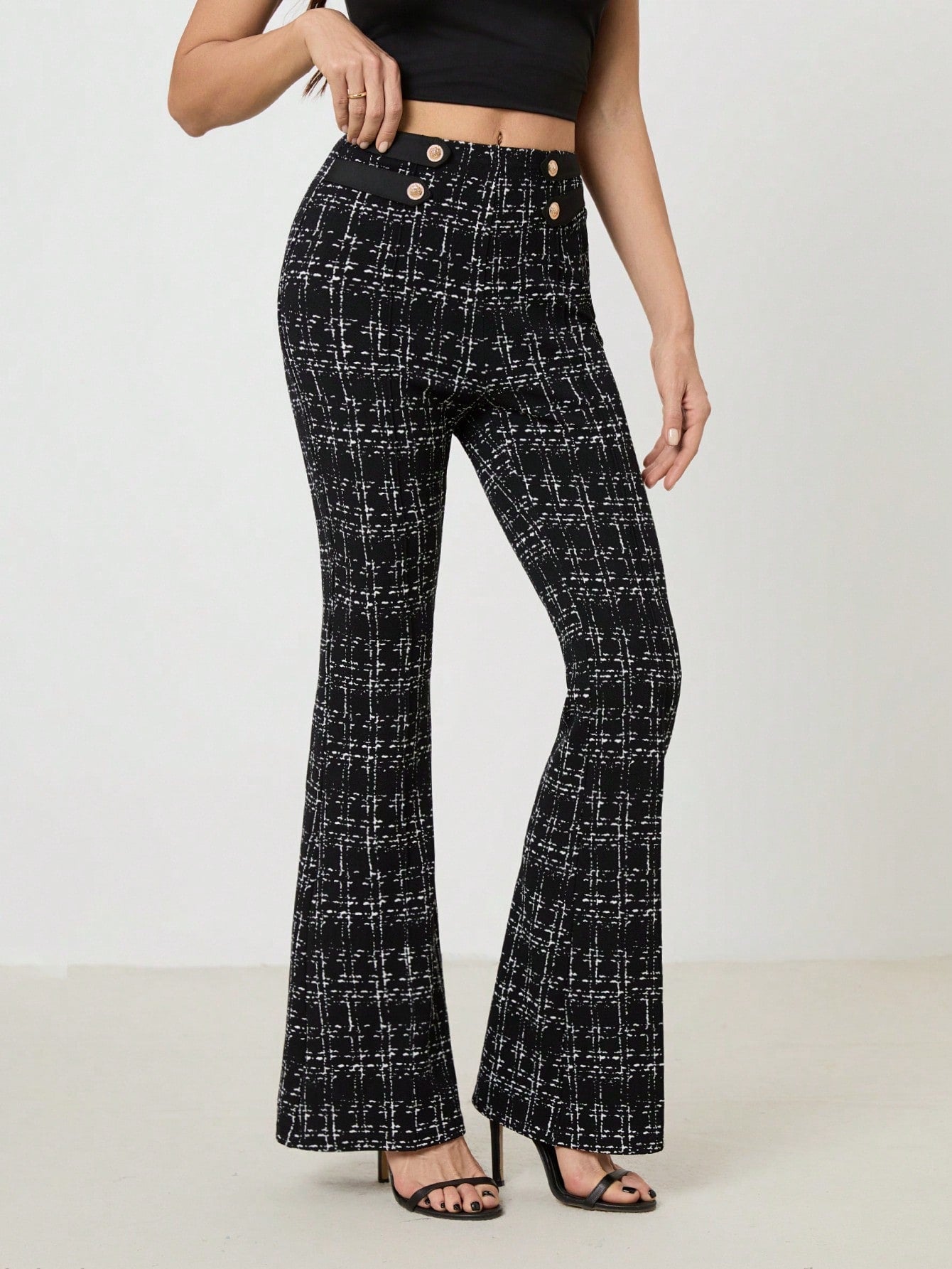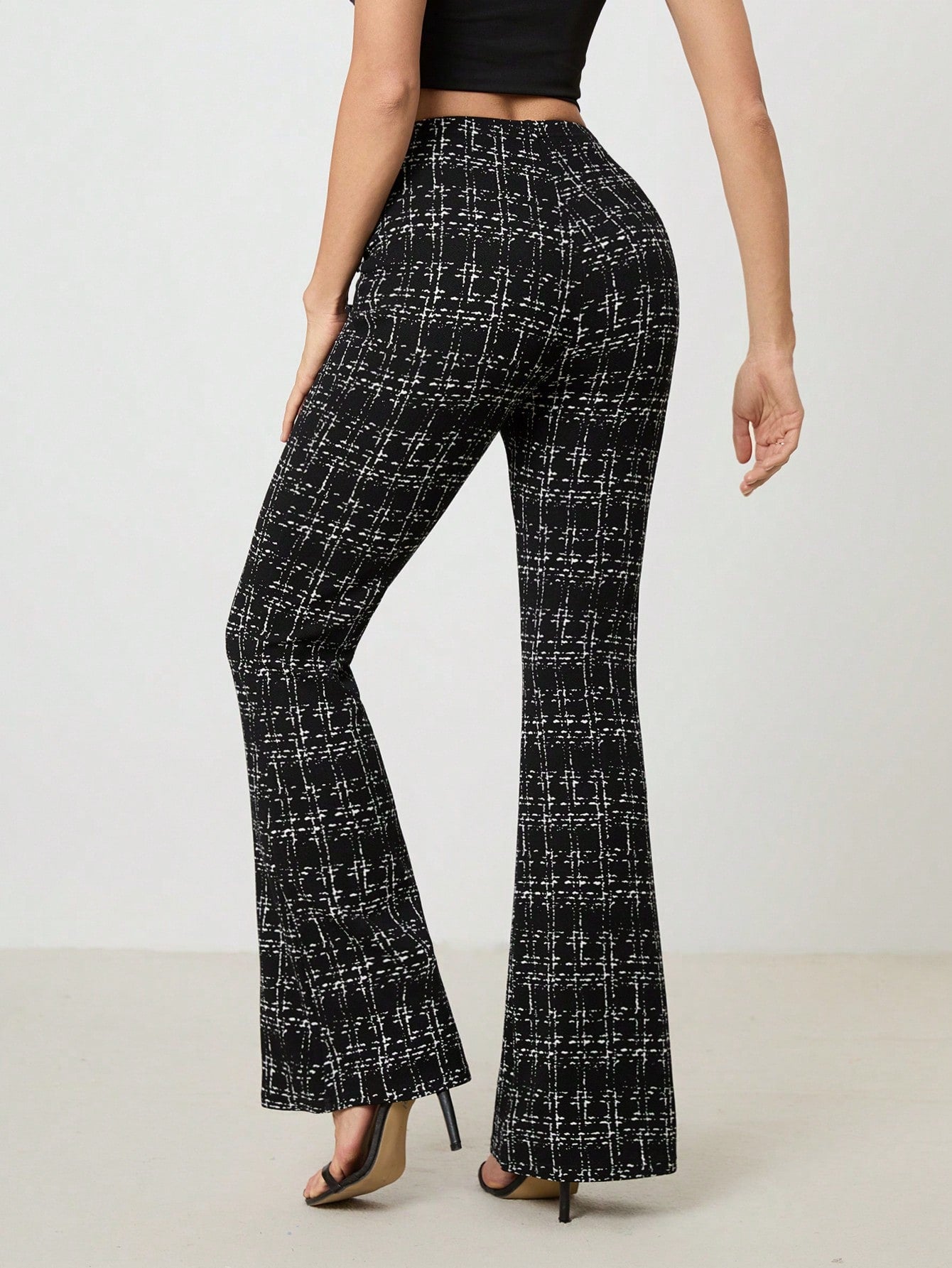 Pantaloni slim a zampa d'elefante in stile plaid alla moda, in stile pendolare