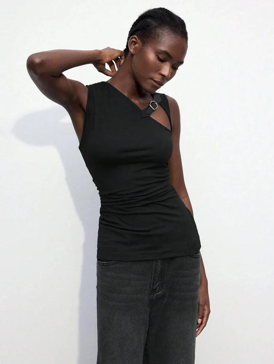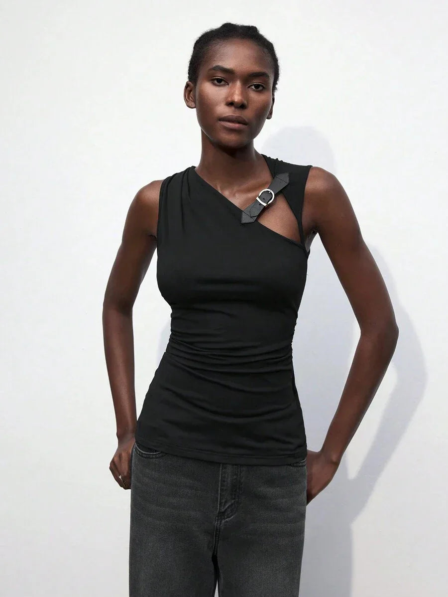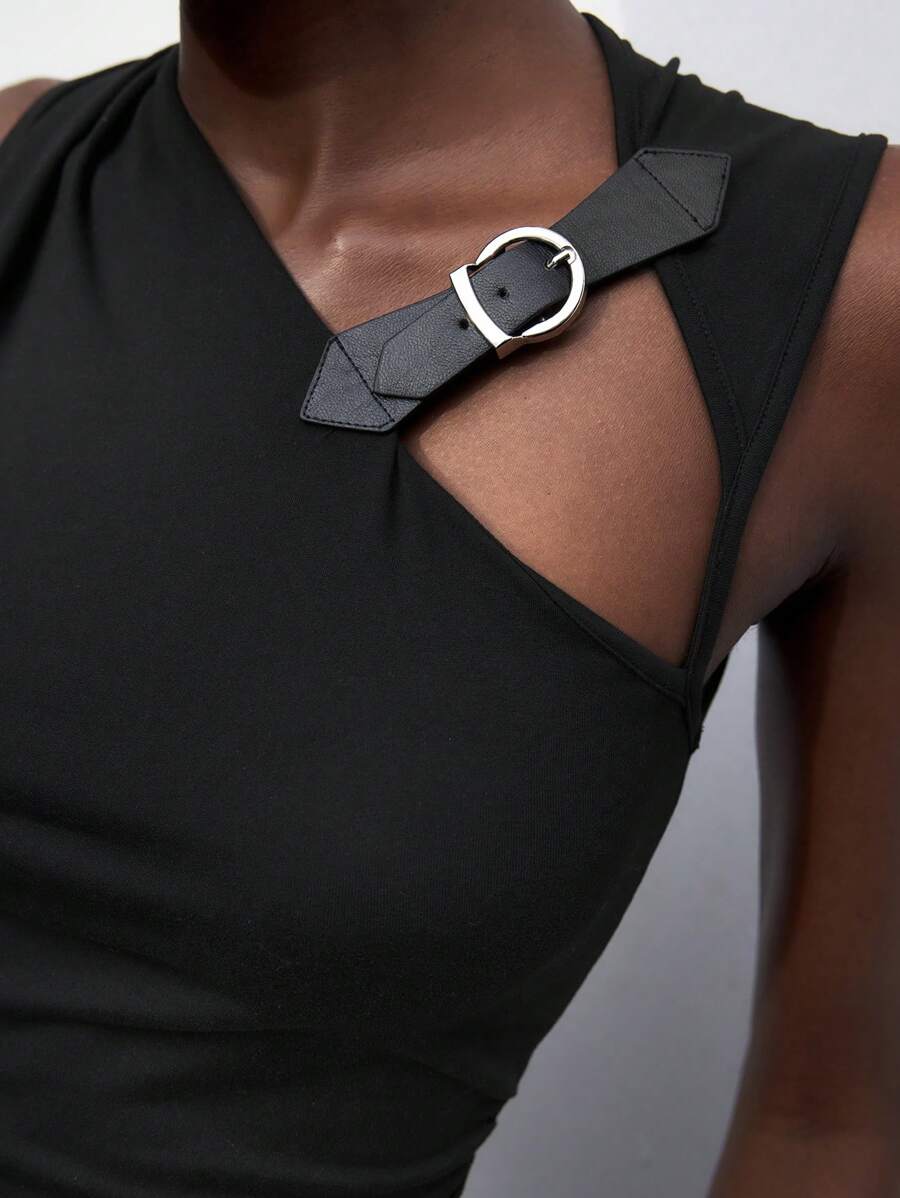 Top aderente con decorazione a cinturino, design moderno e urbano chic versatile