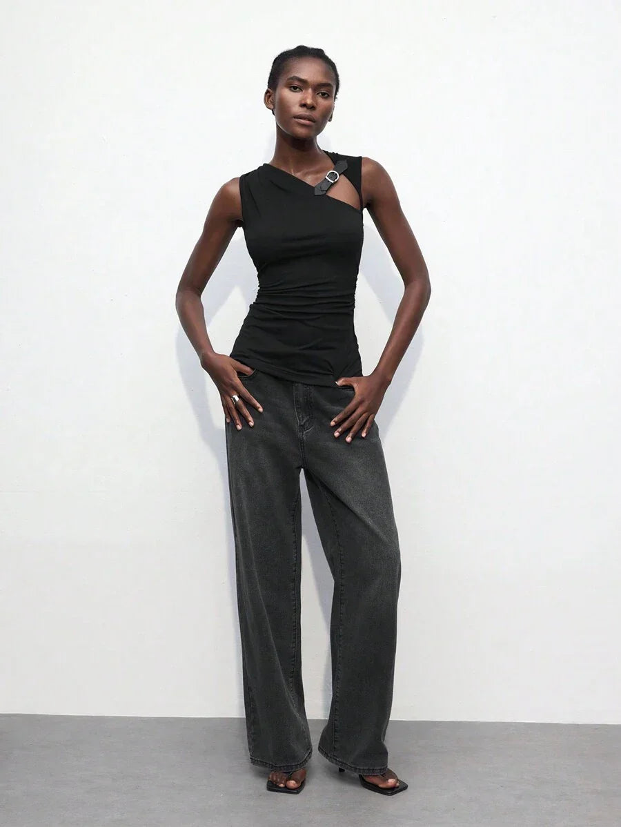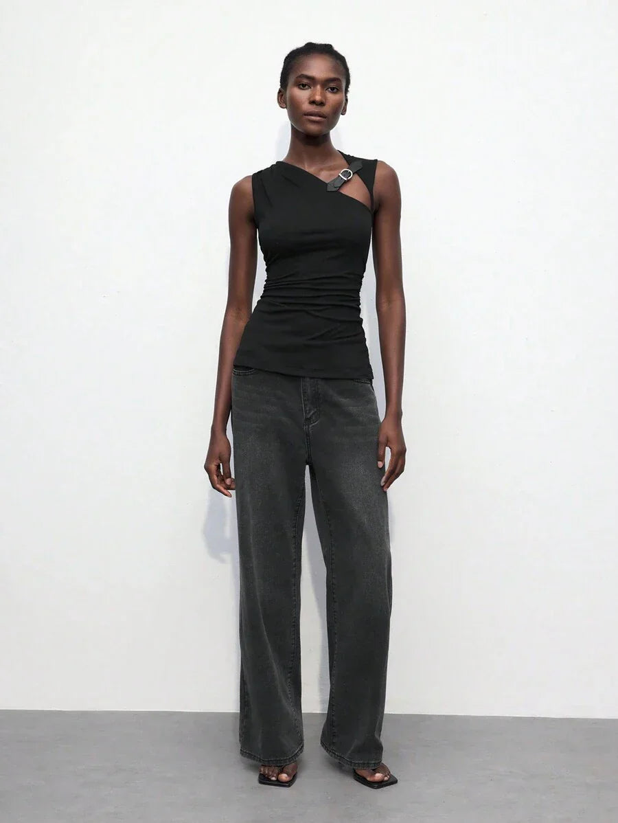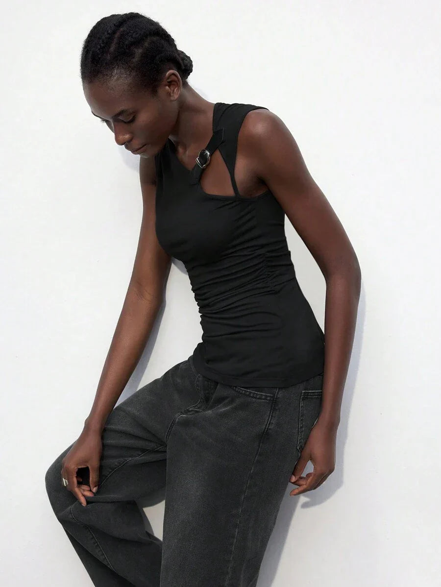 Top aderente con decorazione a cinturino, design moderno e urbano chic versatile