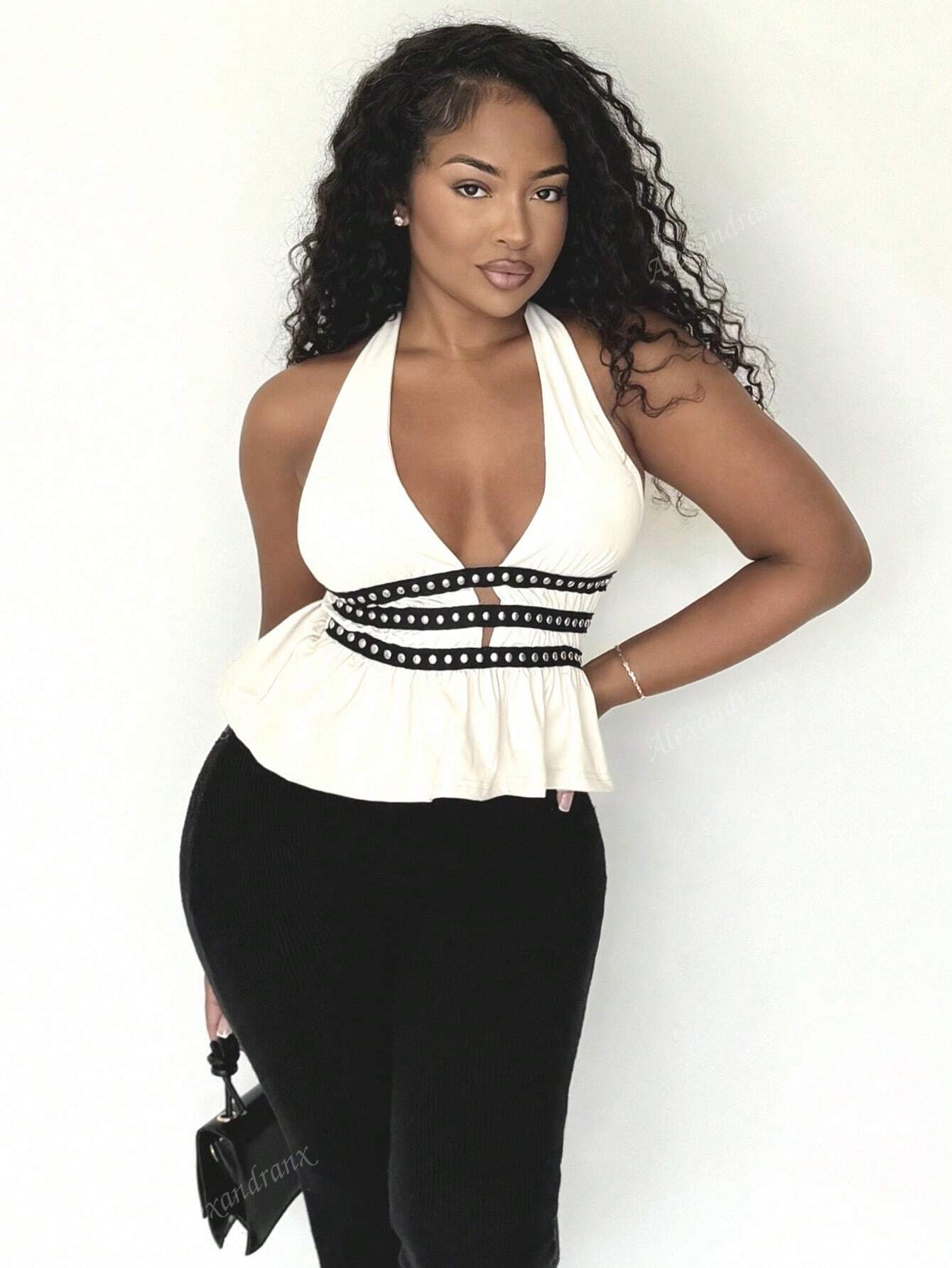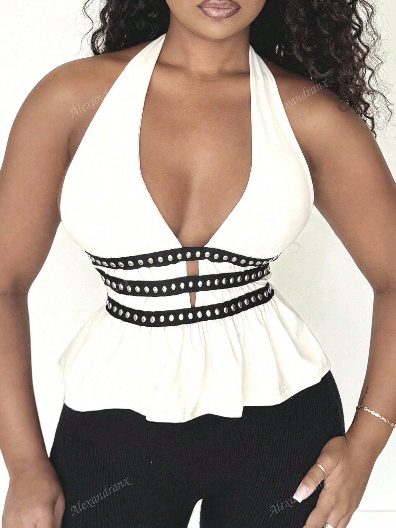 Top da donna con scollo a canottiera e design con borchie
