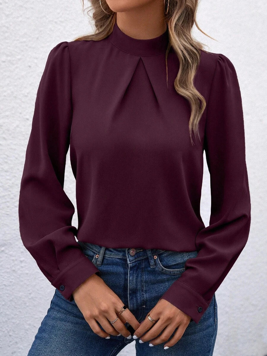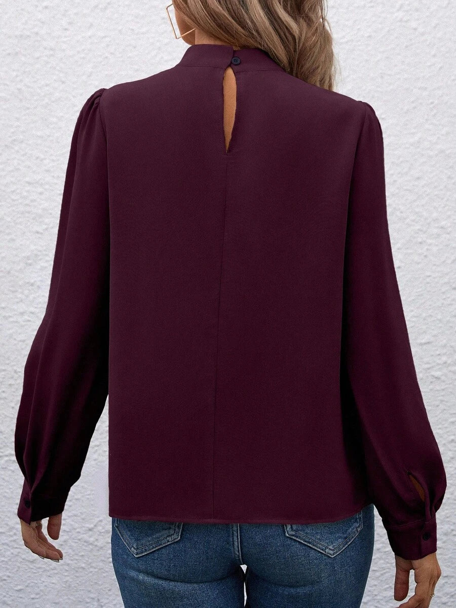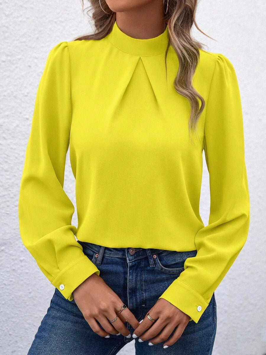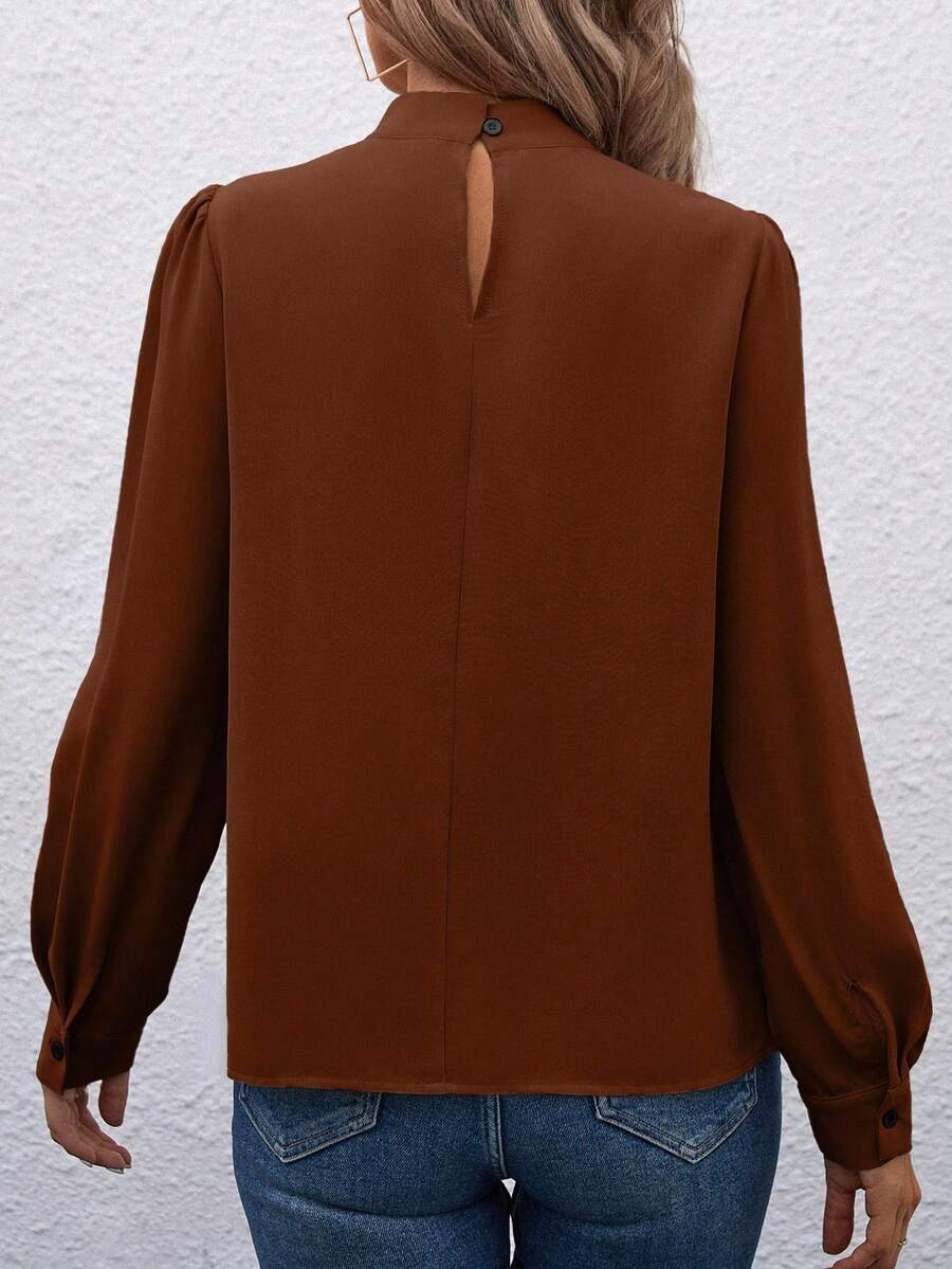 Blusa con collo alla coreana e maniche a palloncino, top a maniche lunghe