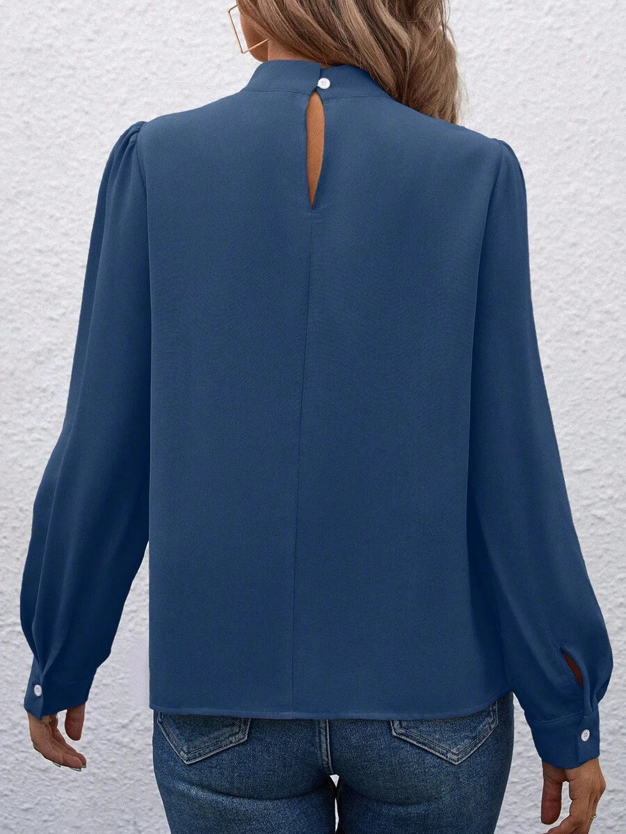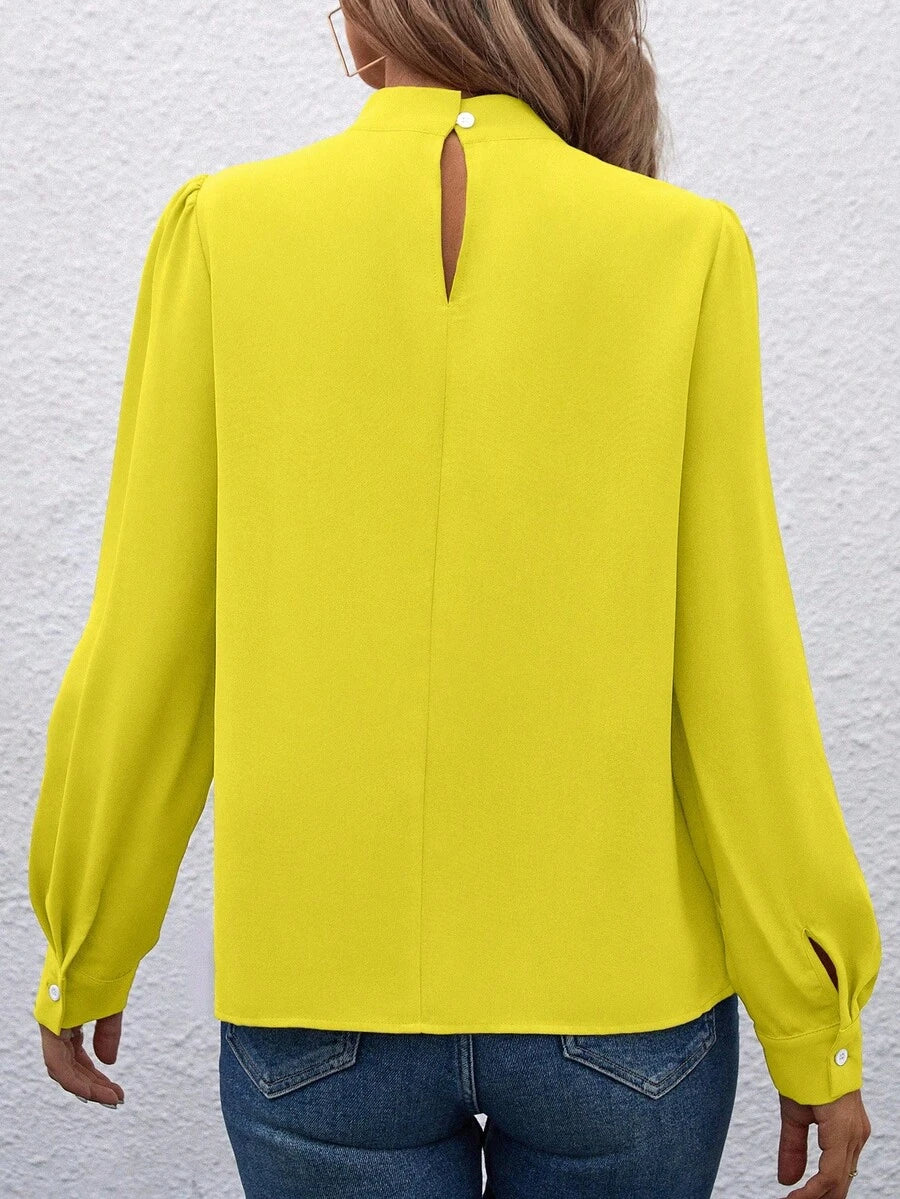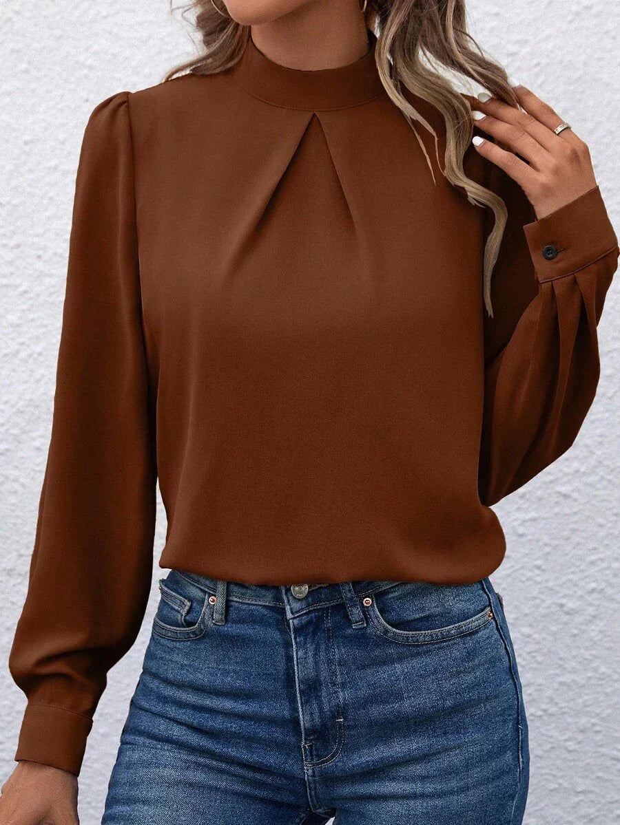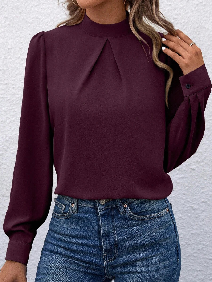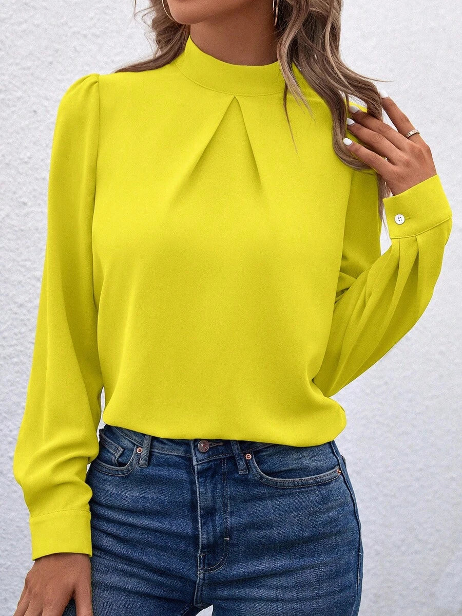 Blusa con collo alla coreana e maniche a palloncino, top a maniche lunghe