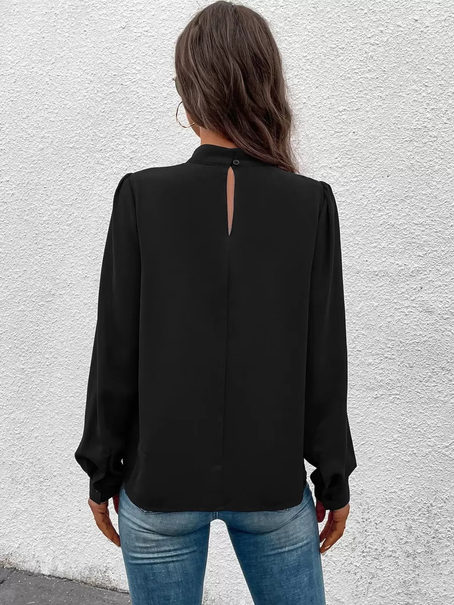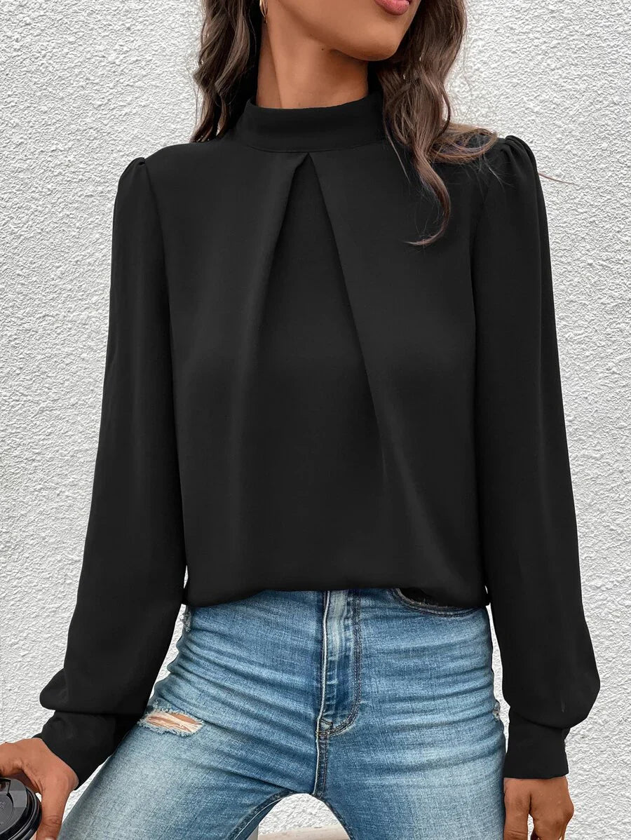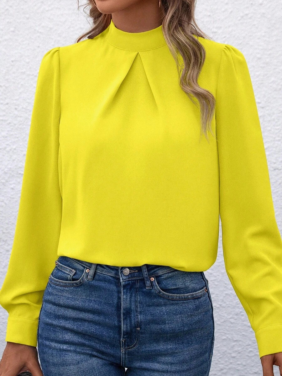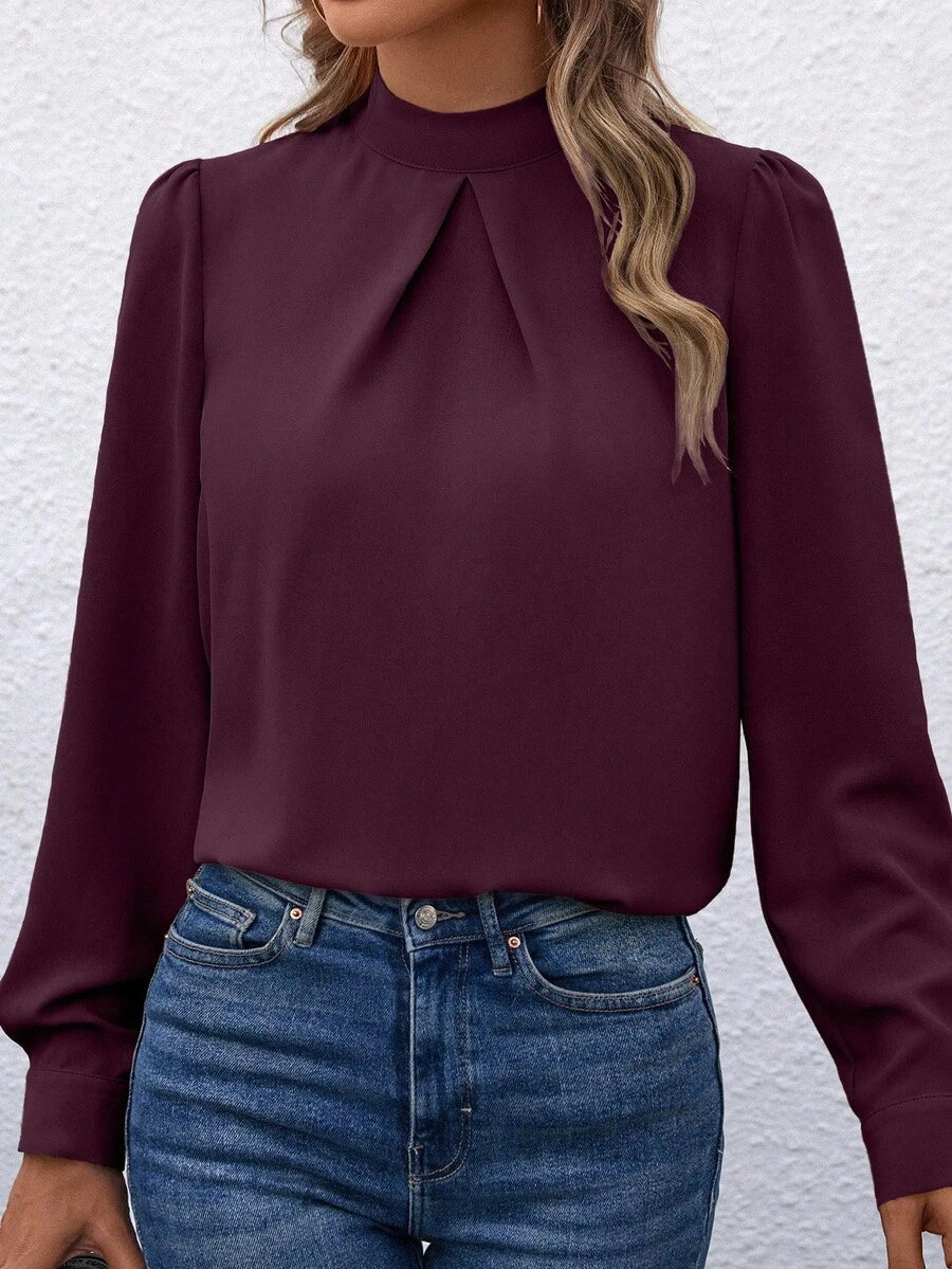Blusa con collo alla coreana e maniche a palloncino, top a maniche lunghe