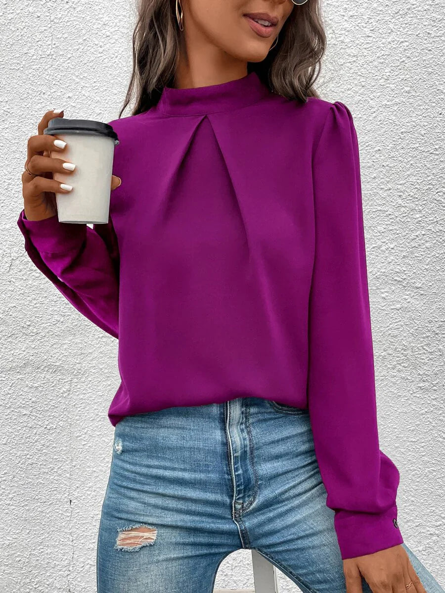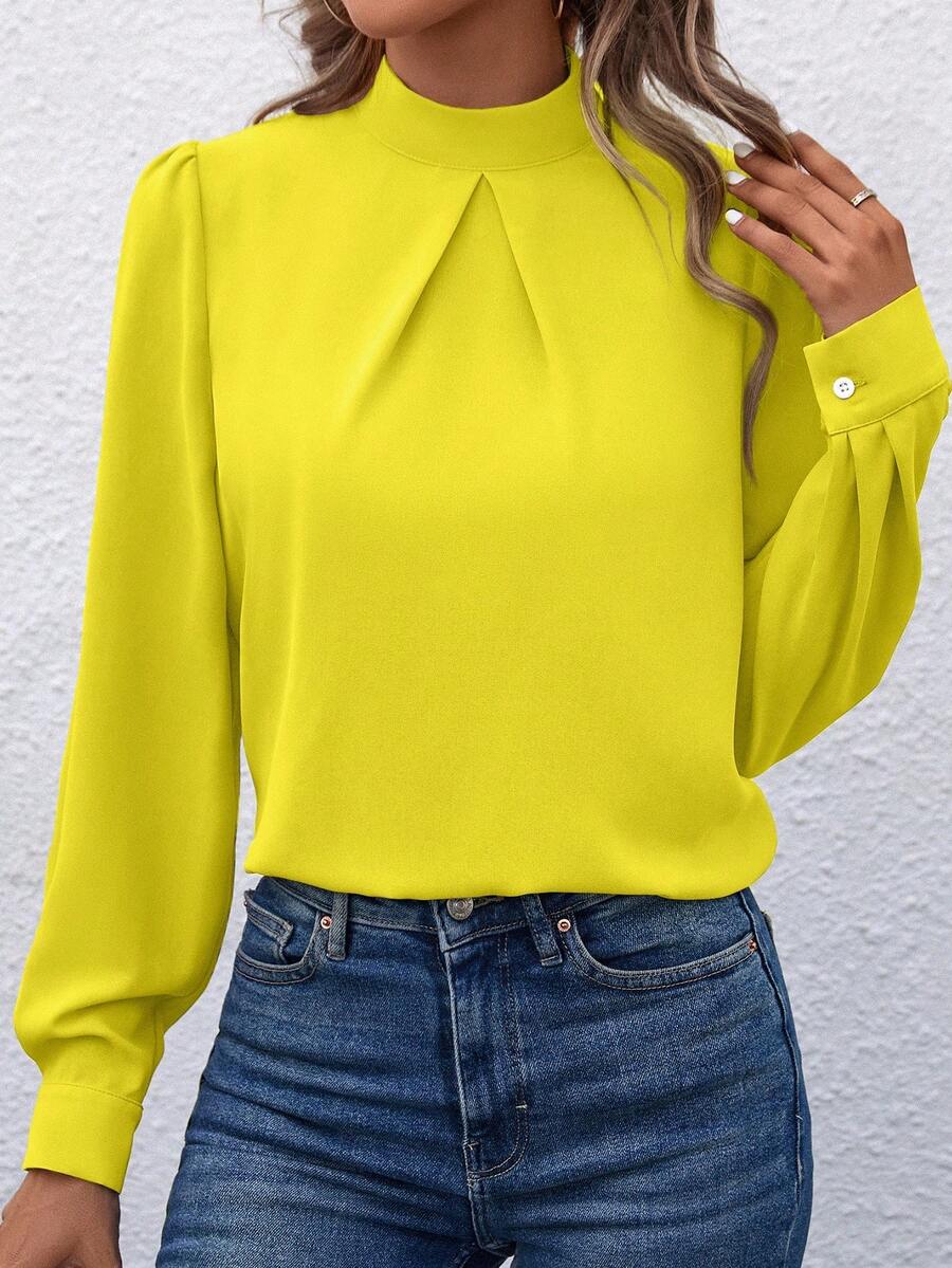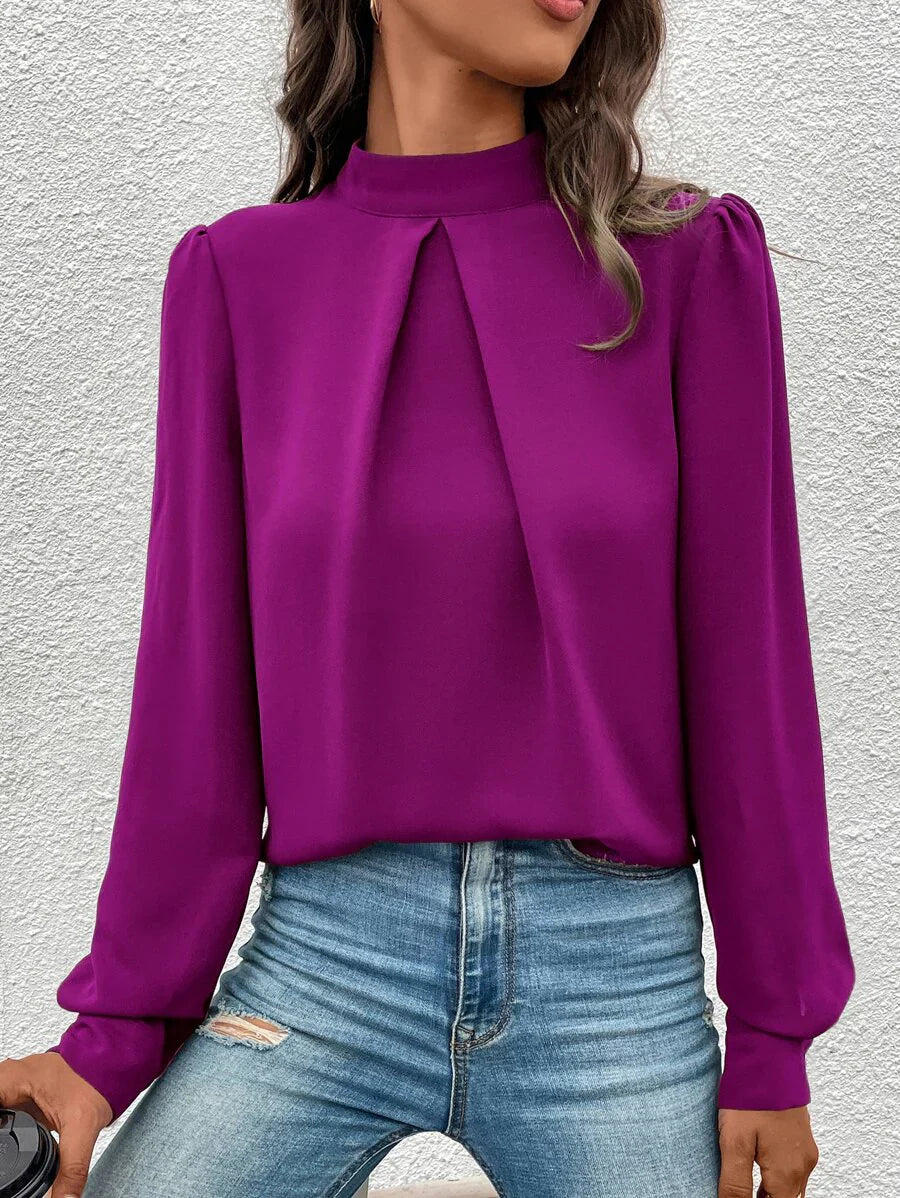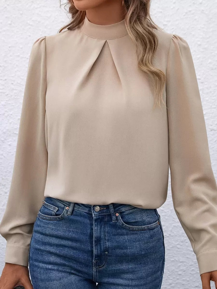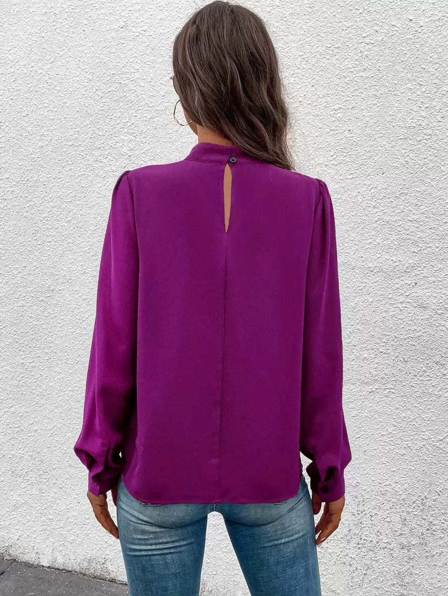 Blusa con collo alla coreana e maniche a palloncino, top a maniche lunghe