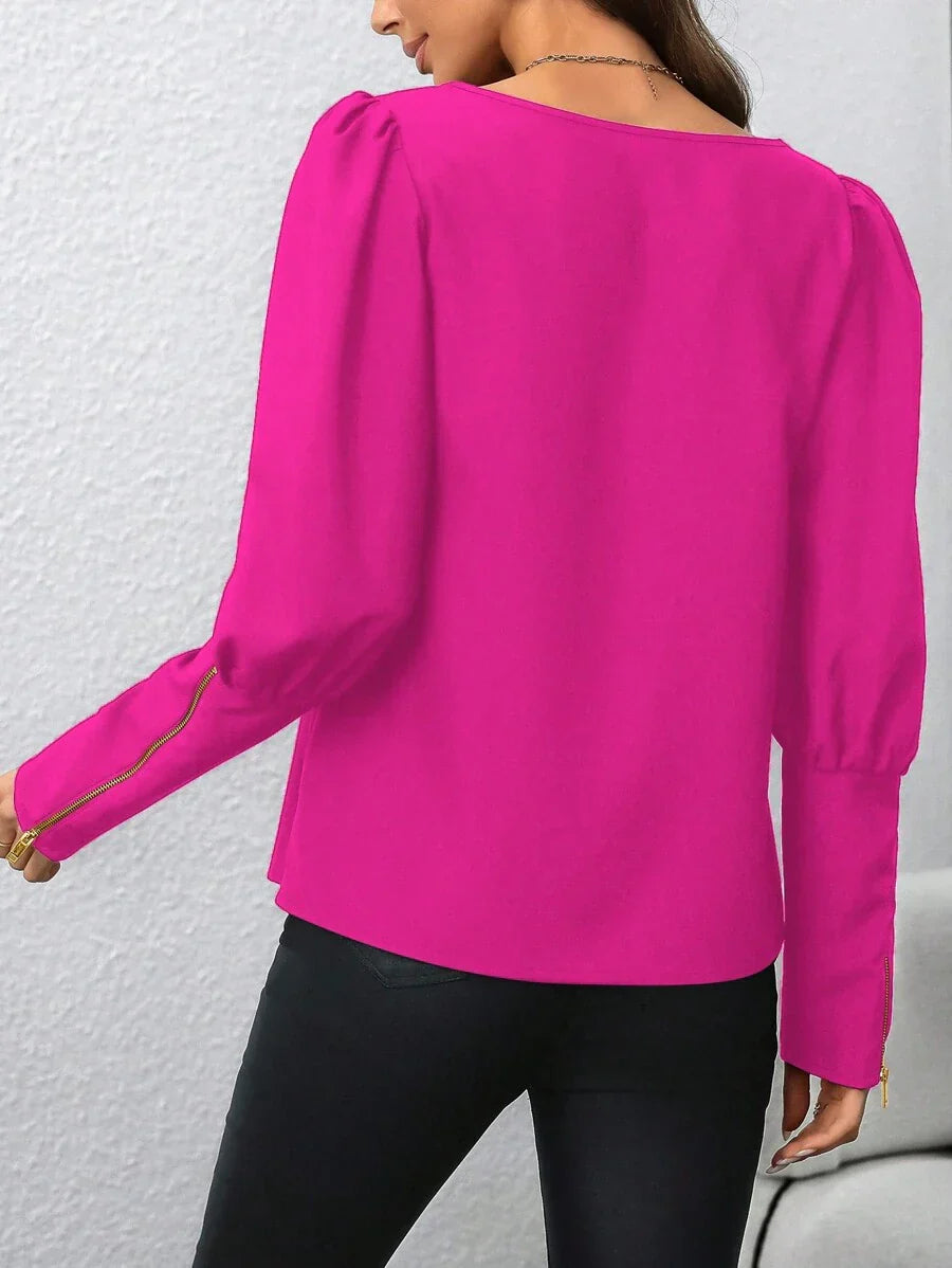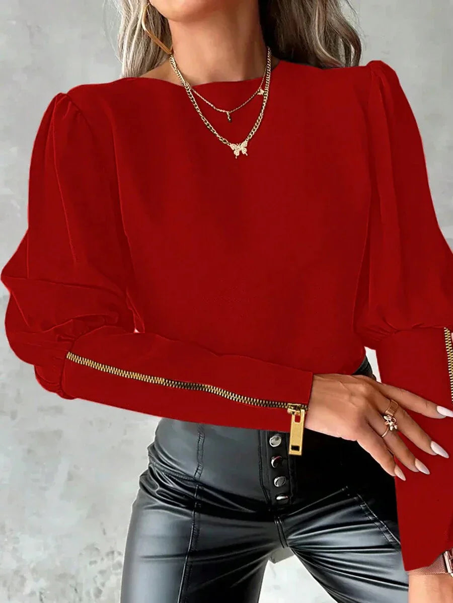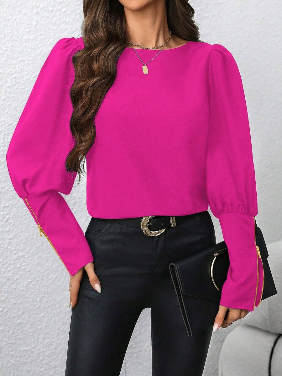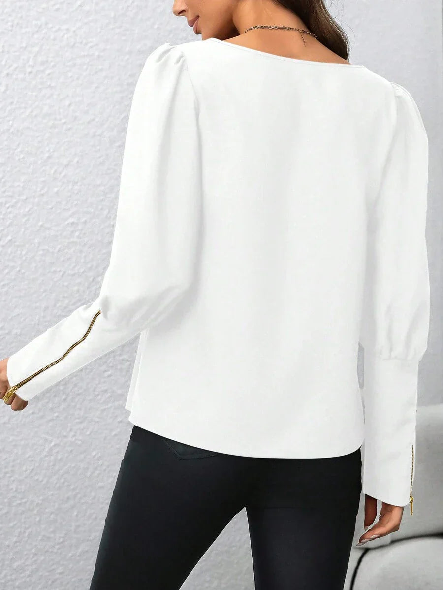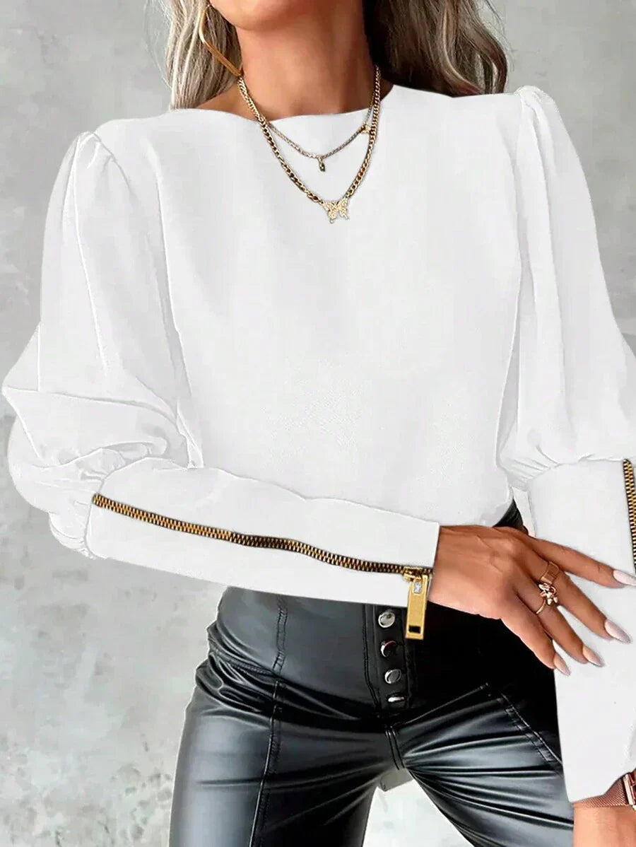 Camicia casual da donna con maniche a sbuffo, design con lampo metallica