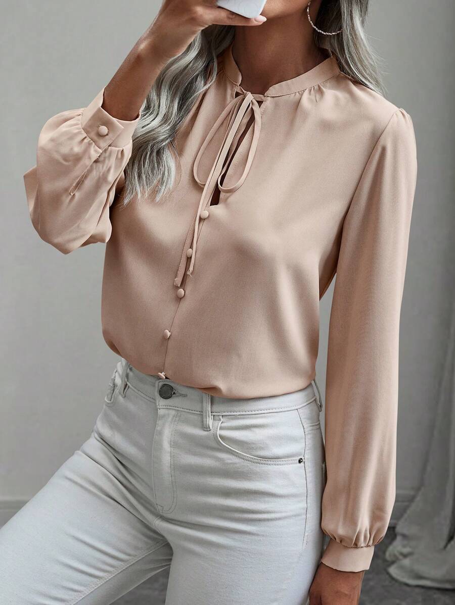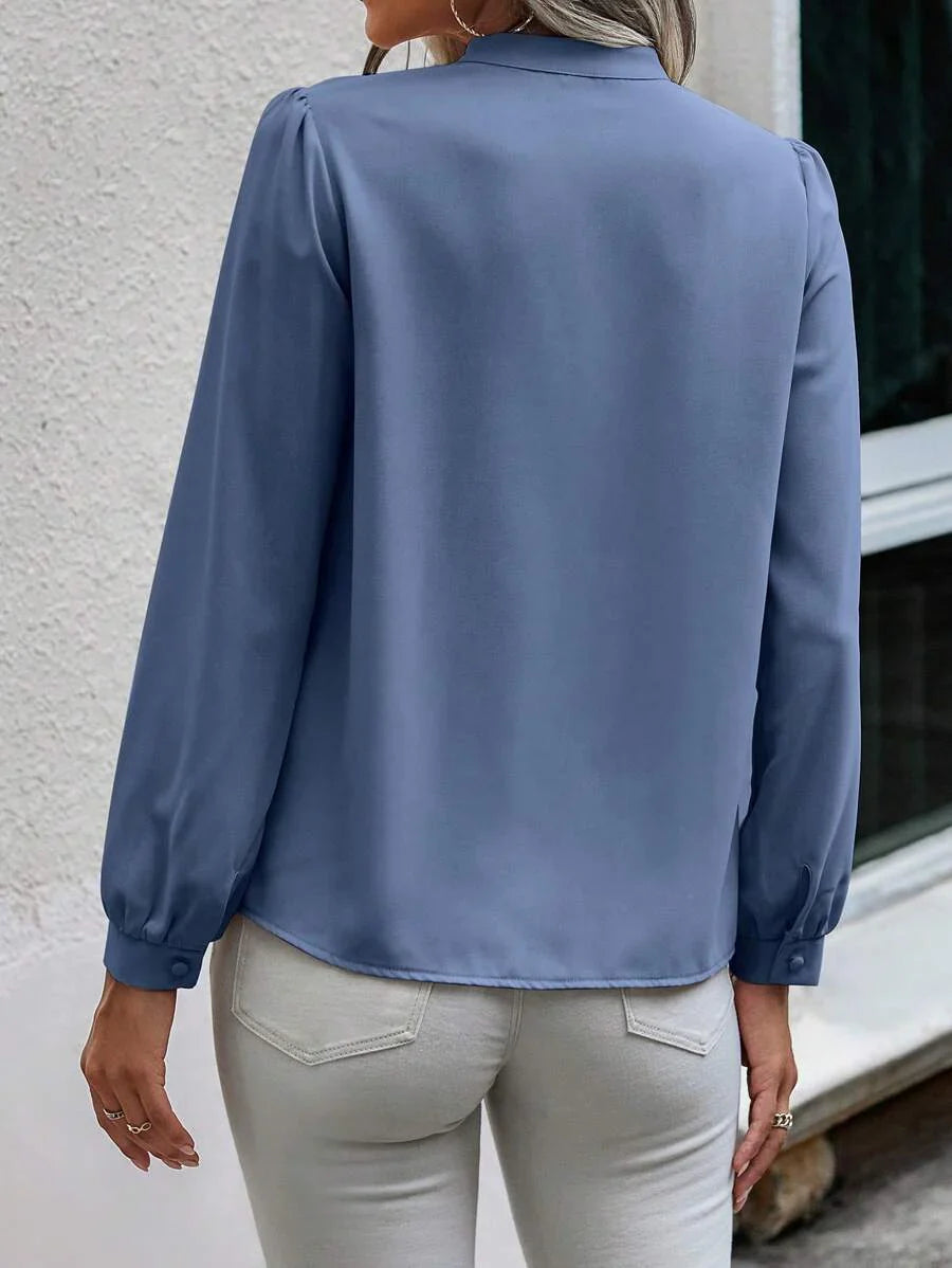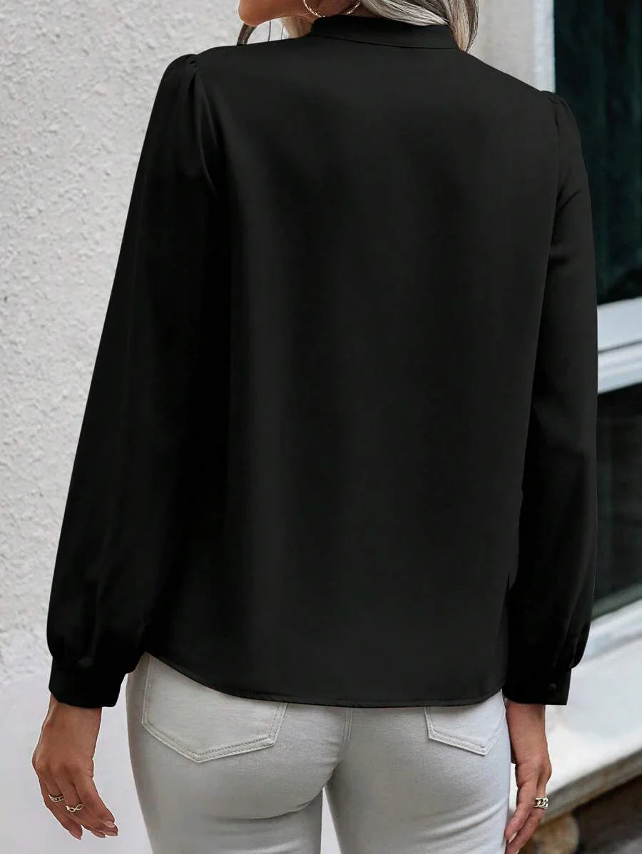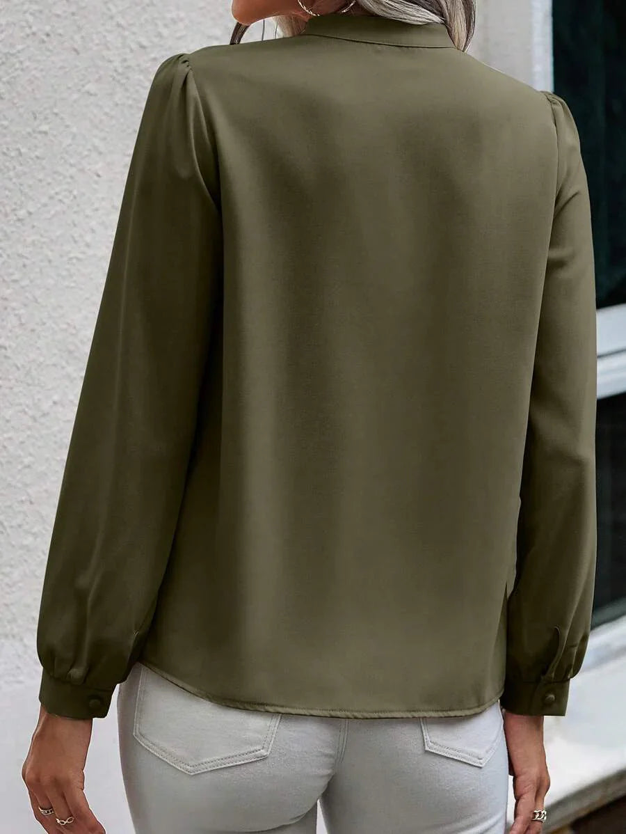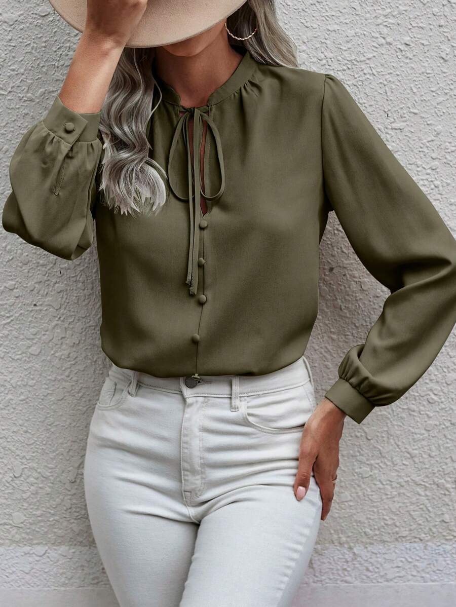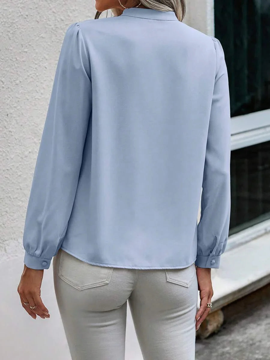 Camicia semplice a maniche a palloncino tinta unita, casual autunnale