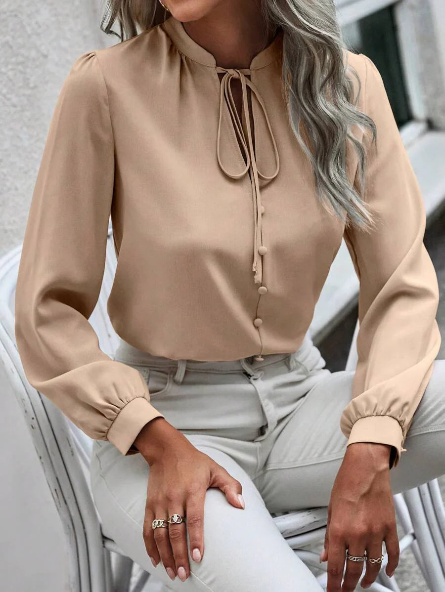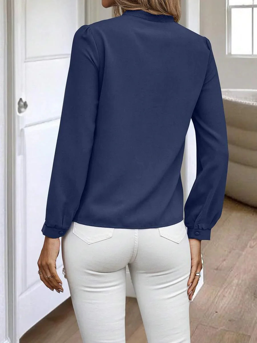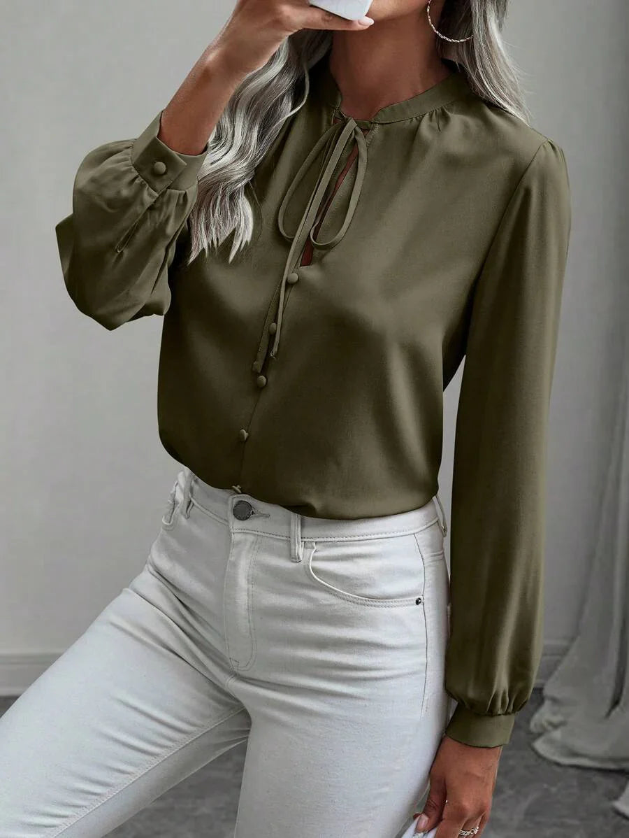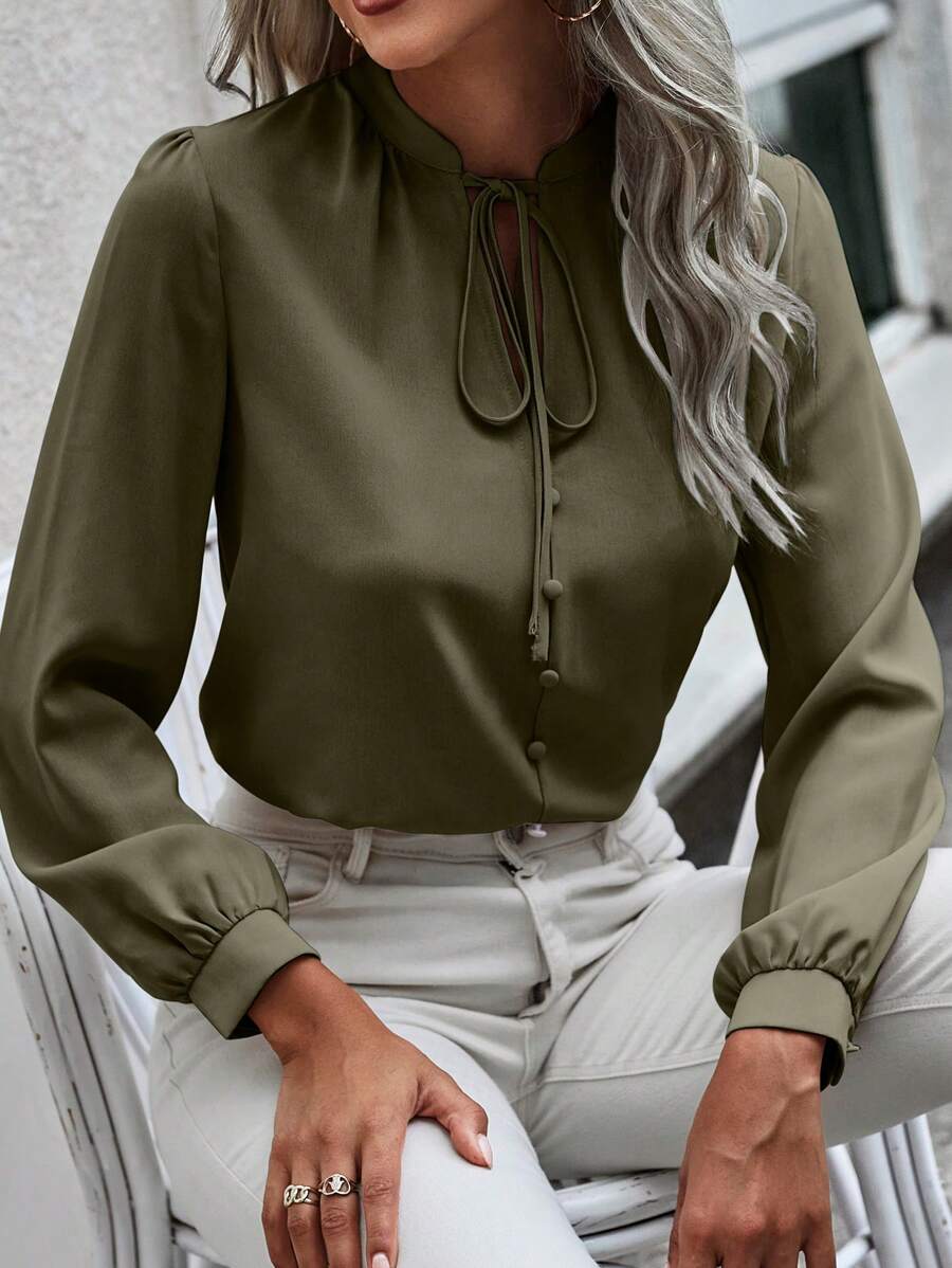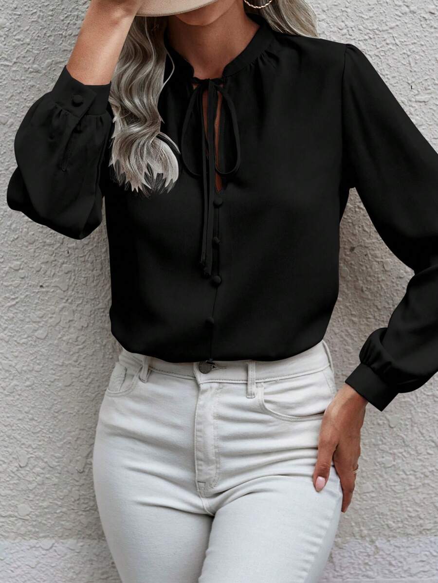 Camicia semplice a maniche a palloncino tinta unita, casual autunnale
