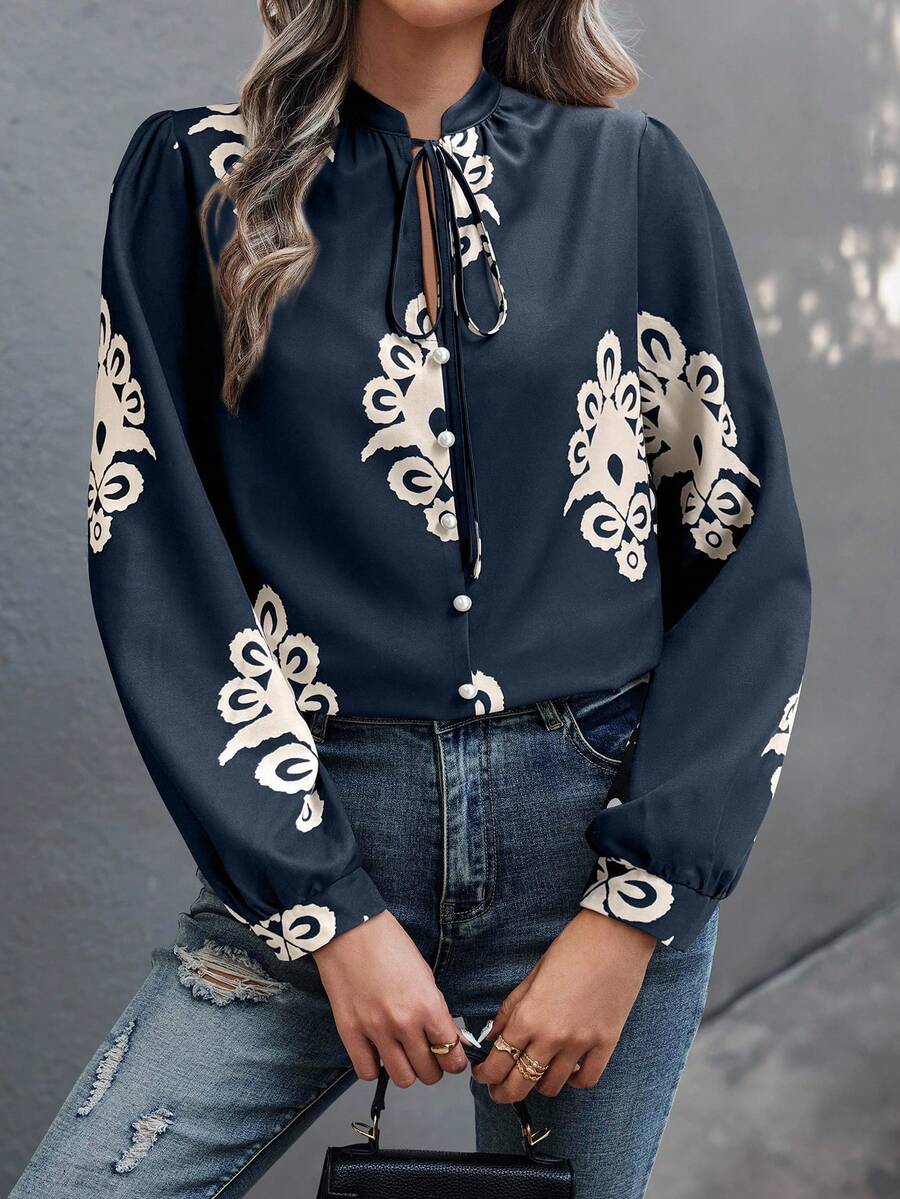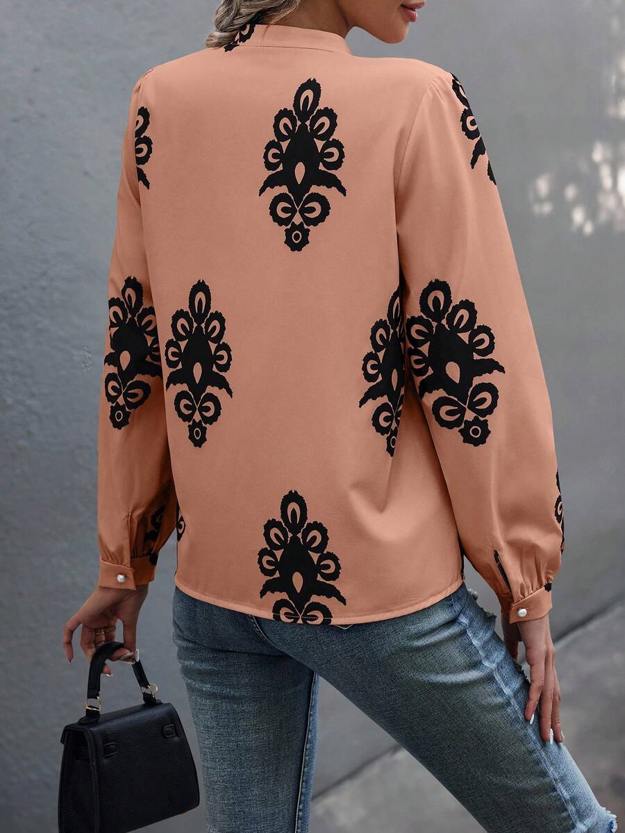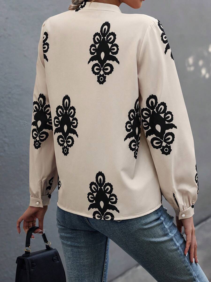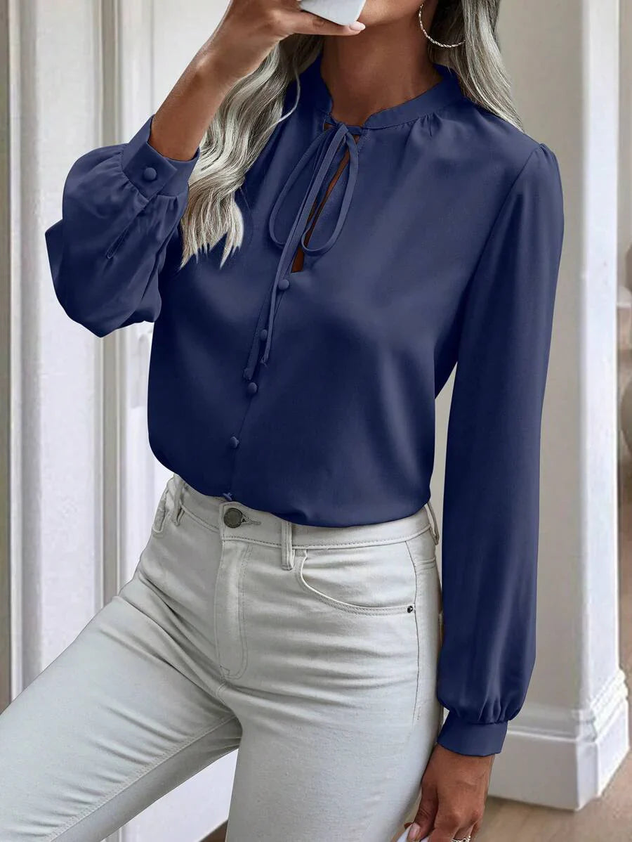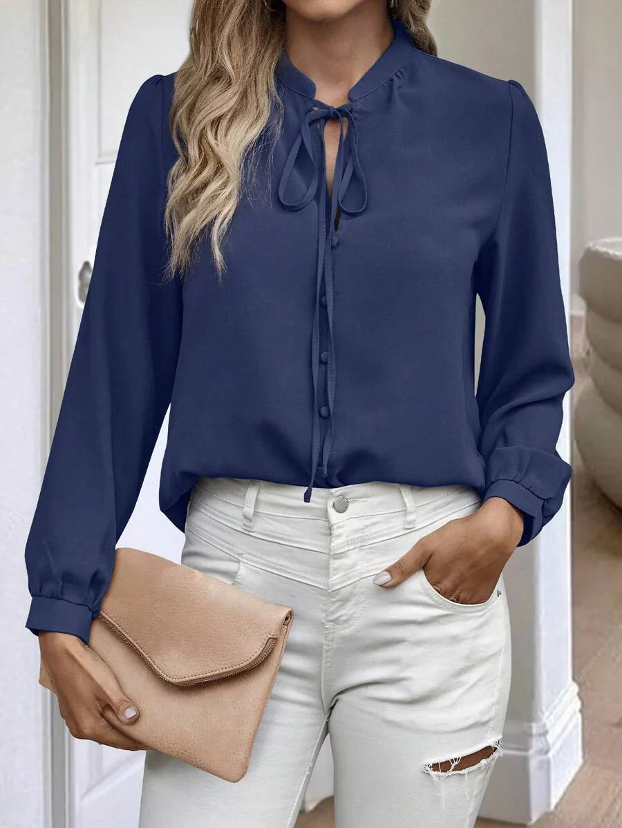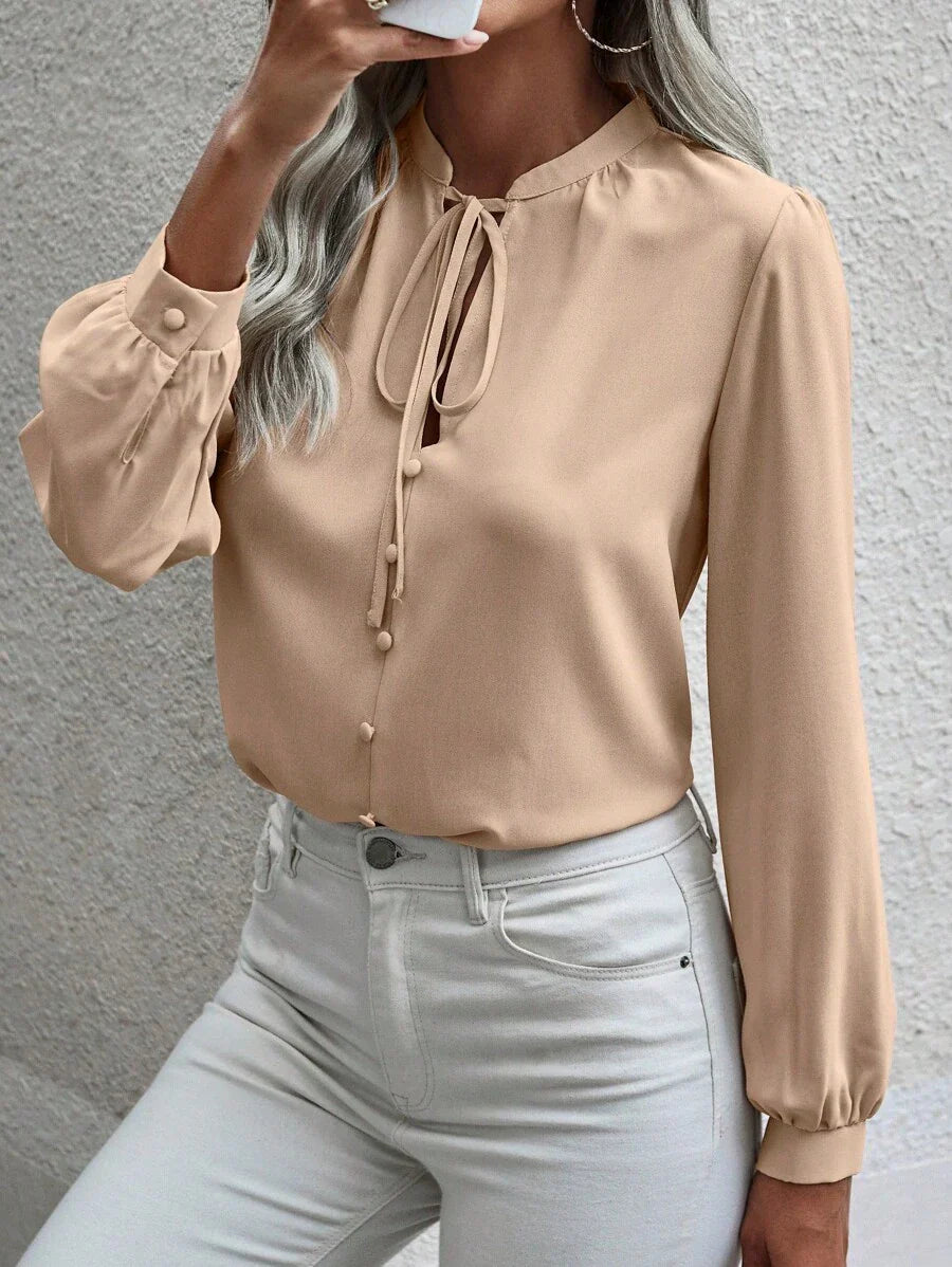 Camicia semplice a maniche a palloncino tinta unita, casual autunnale