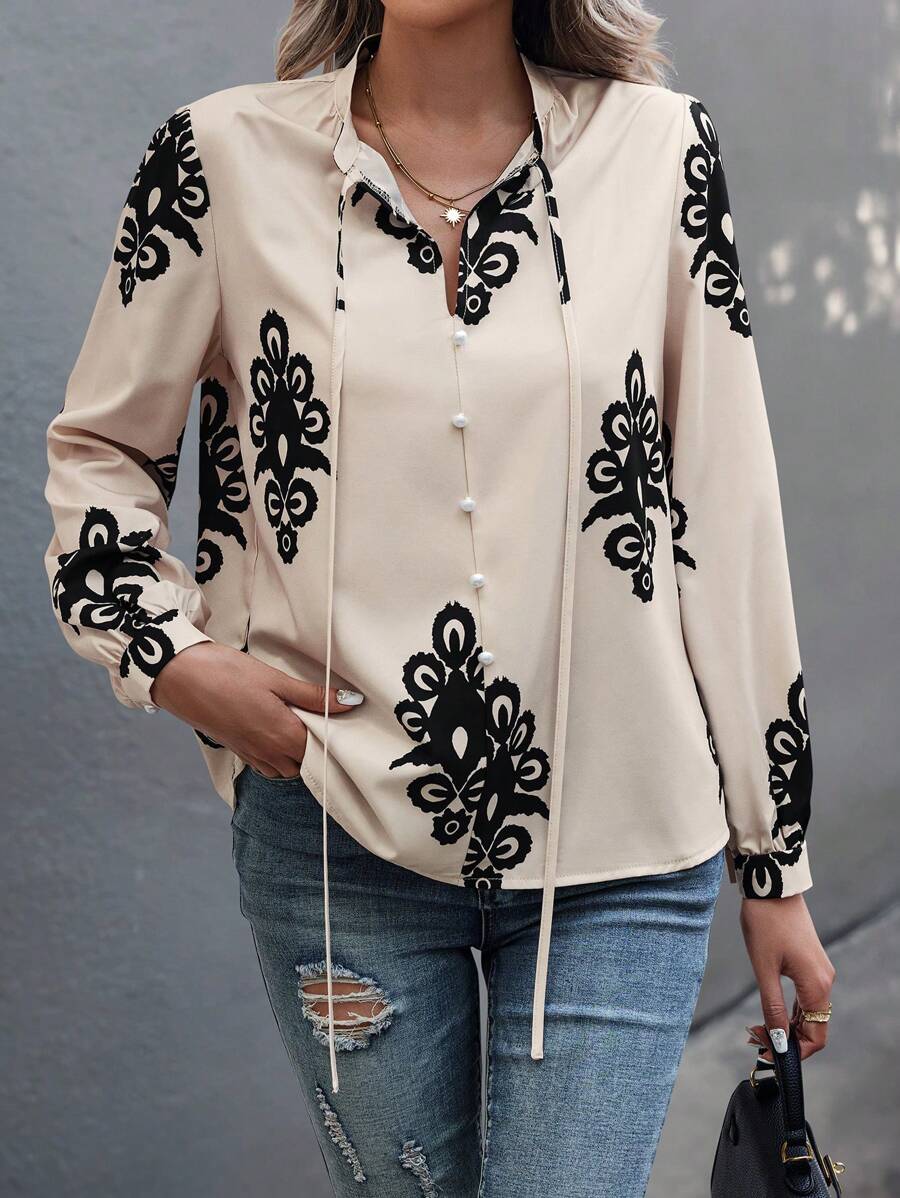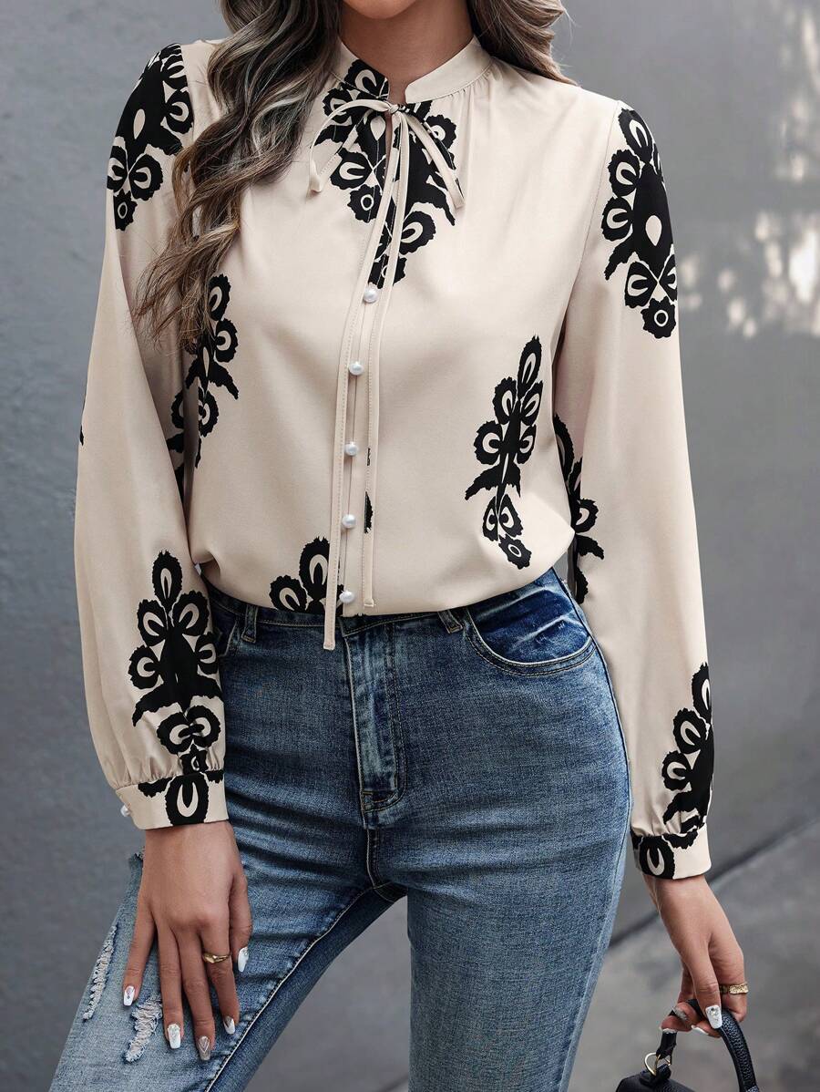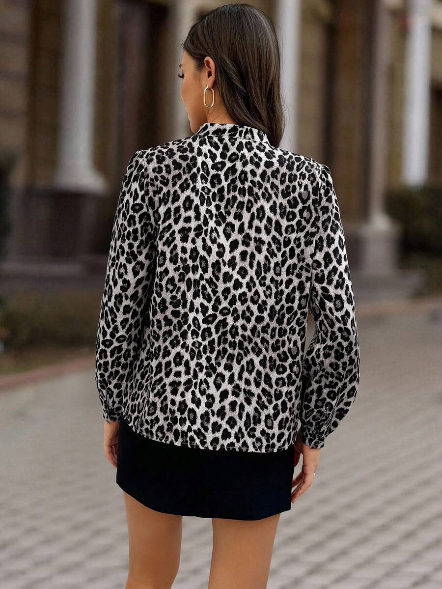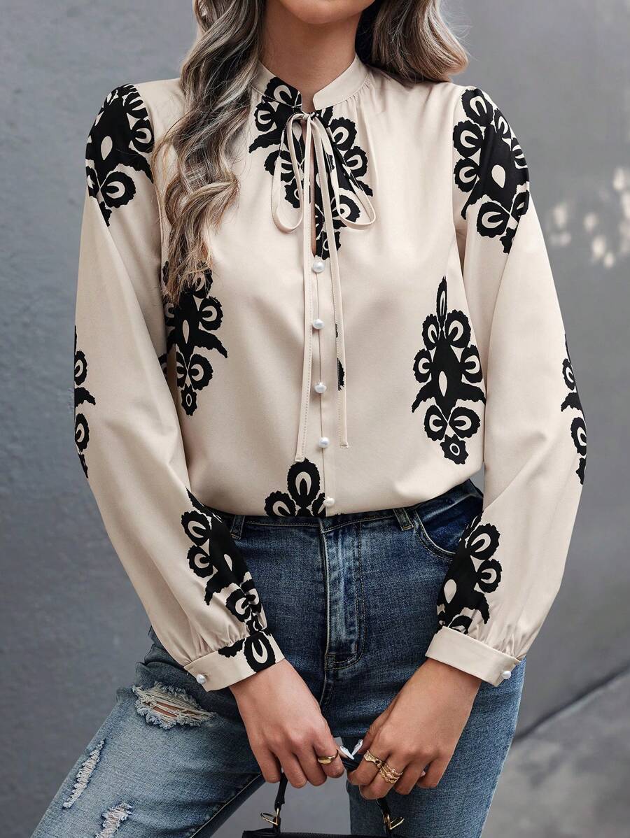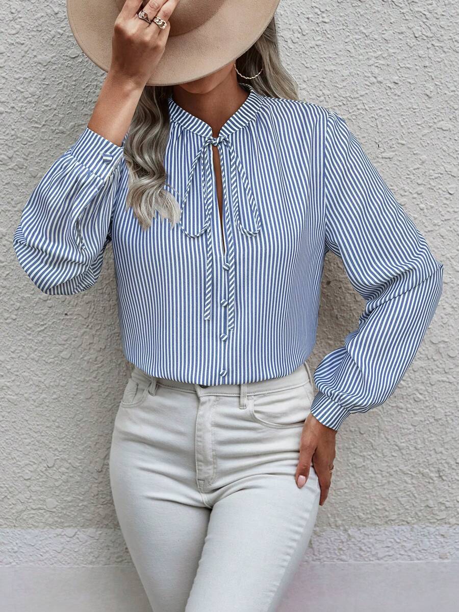 Camicia semplice a maniche a palloncino tinta unita, casual autunnale