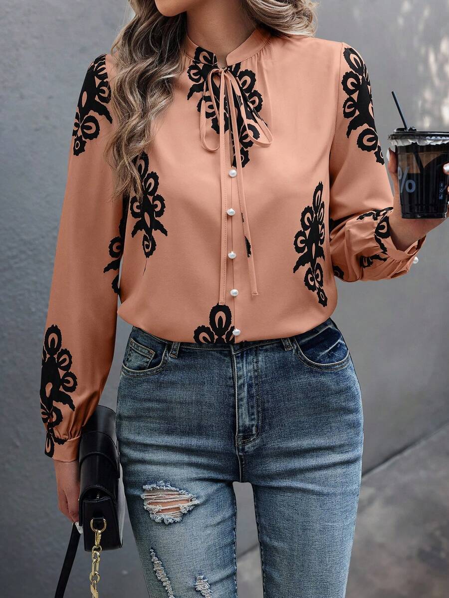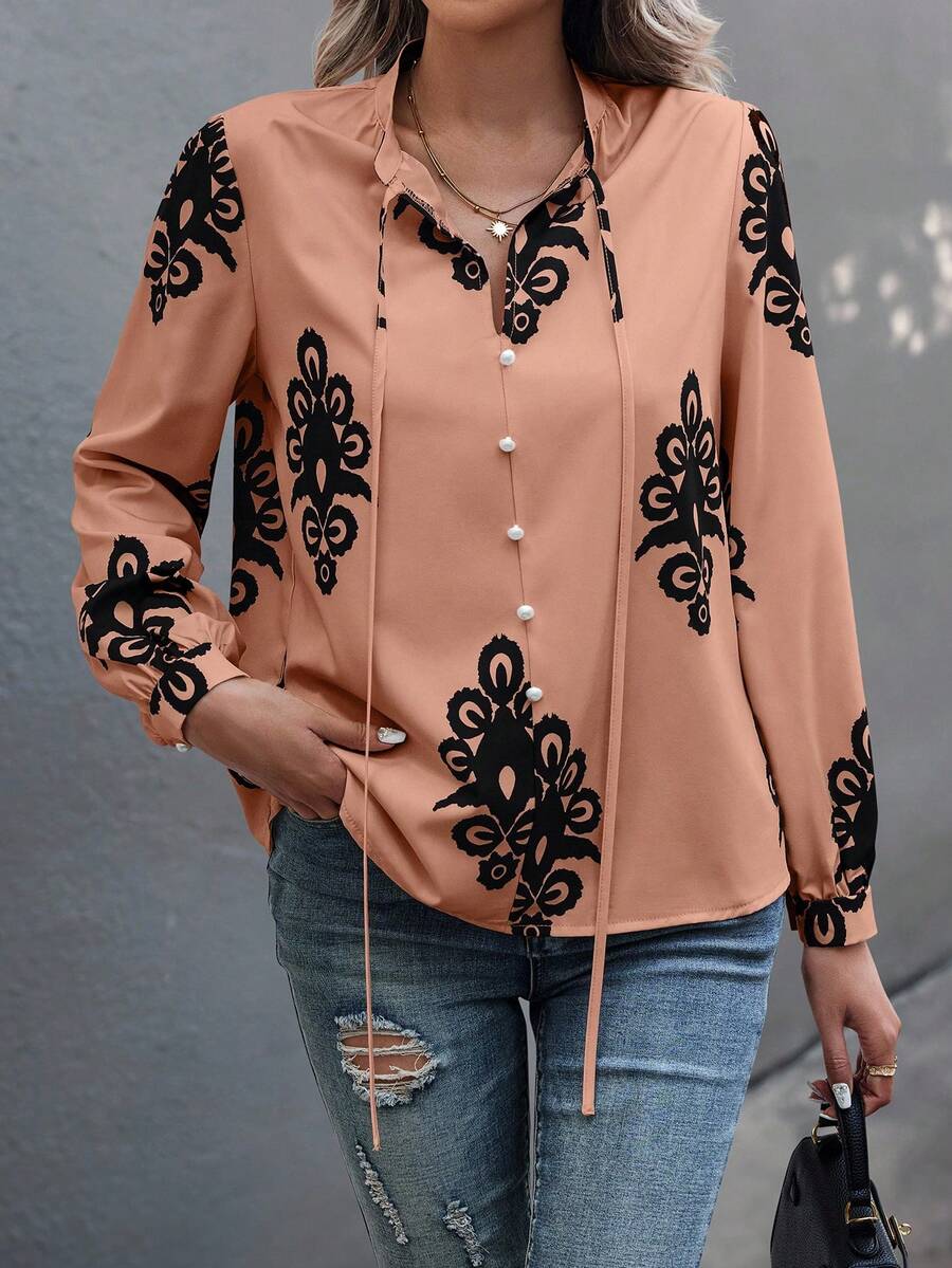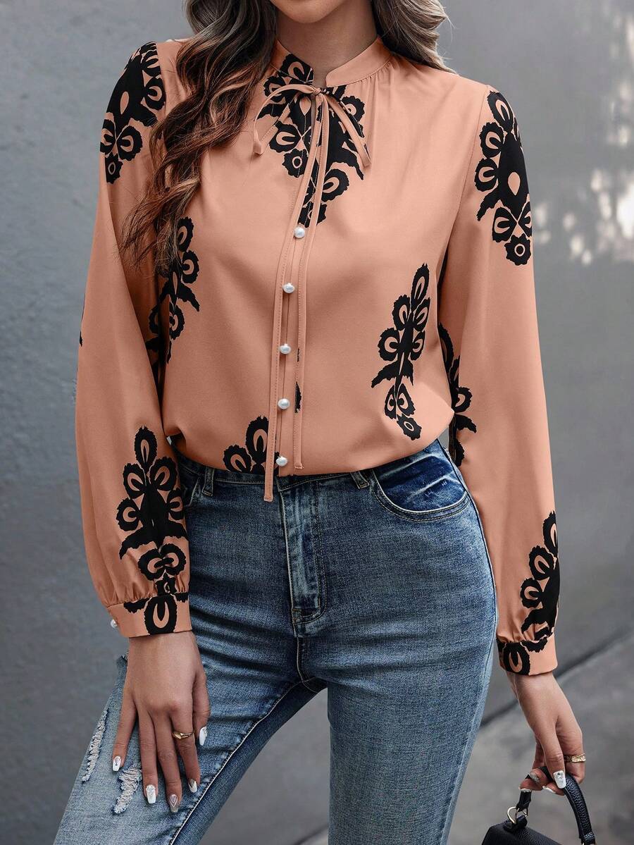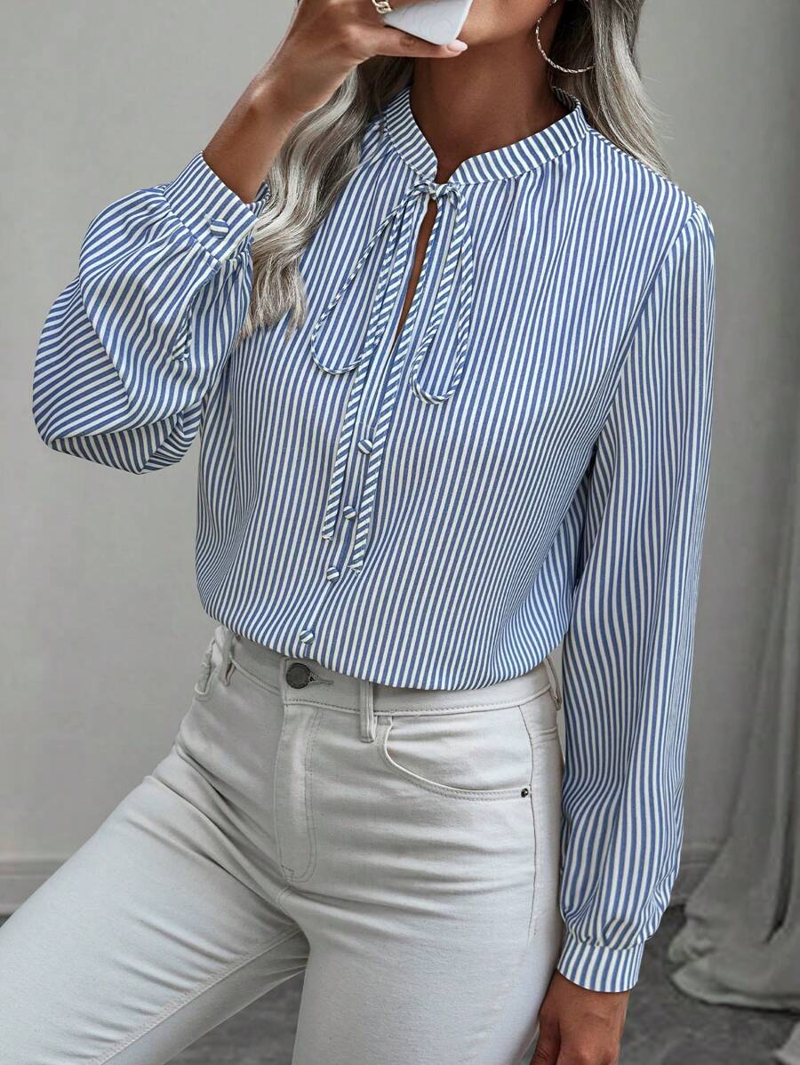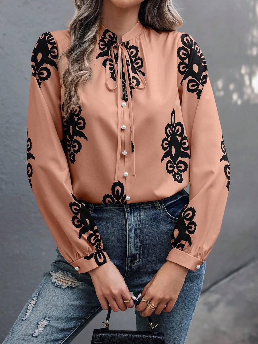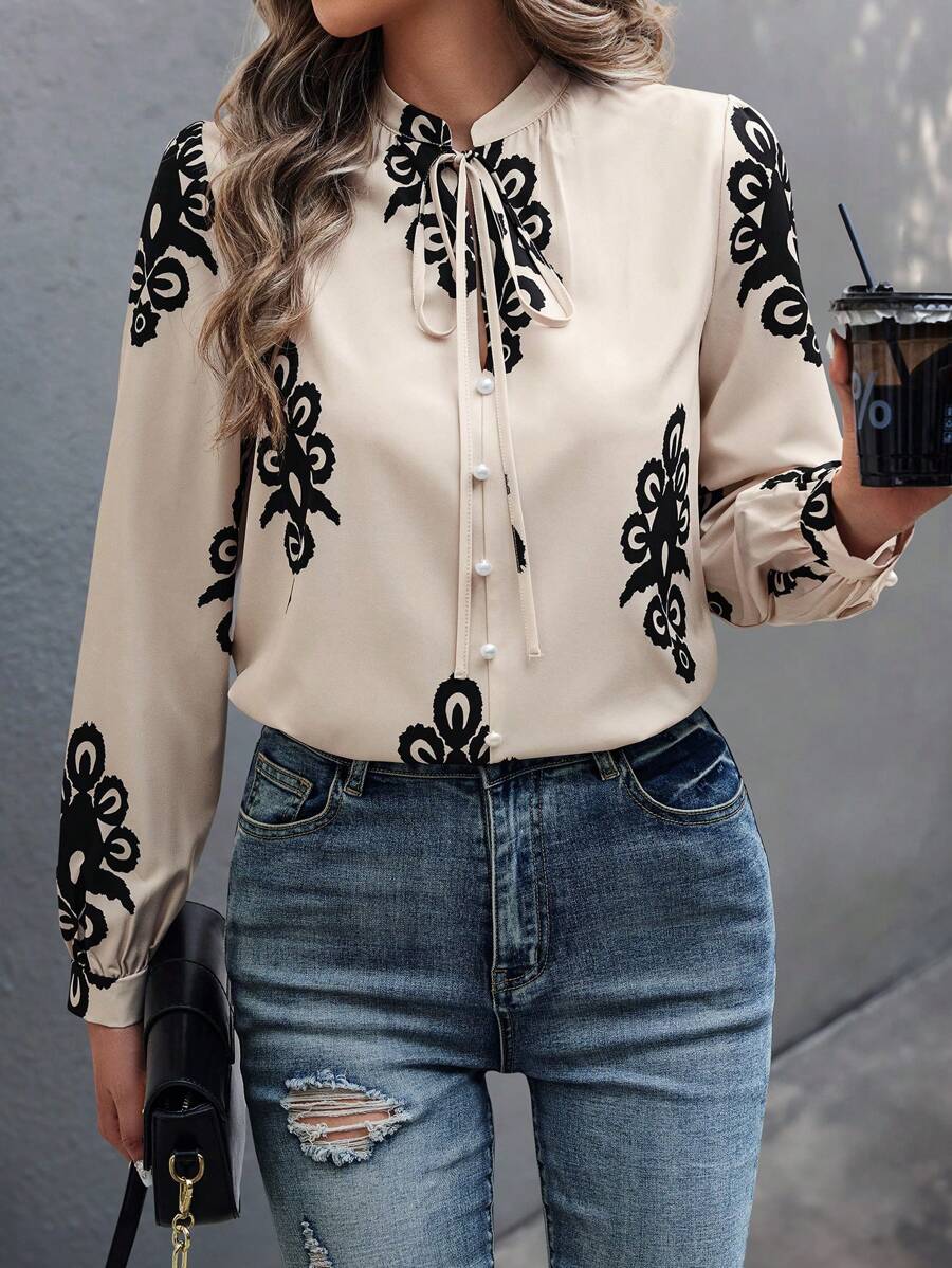 Camicia semplice a maniche a palloncino tinta unita, casual autunnale