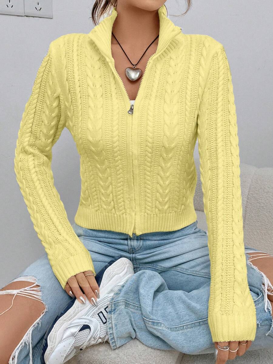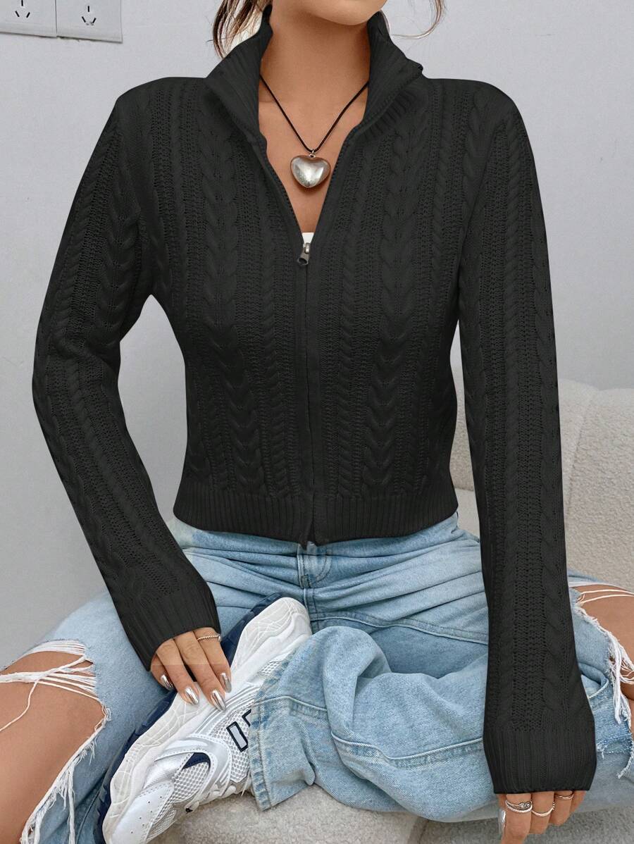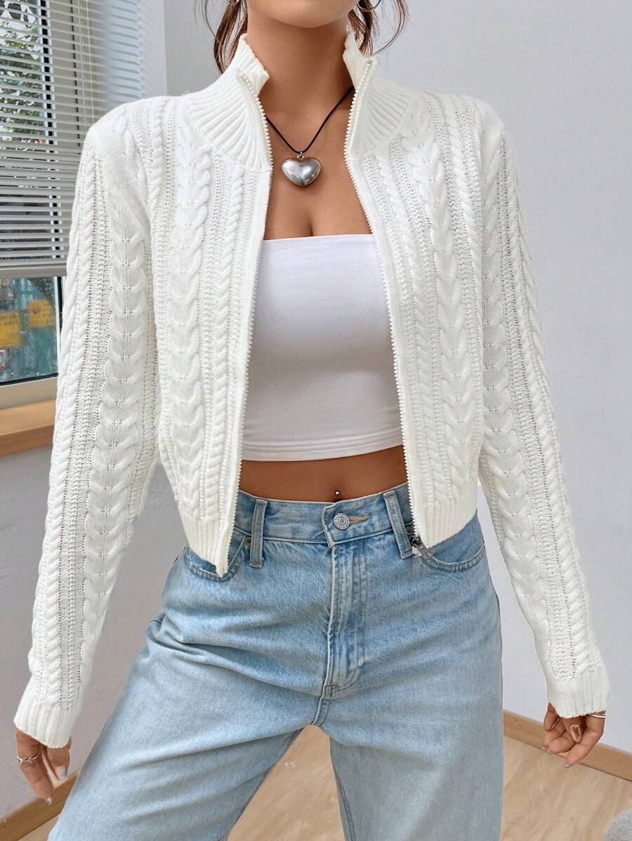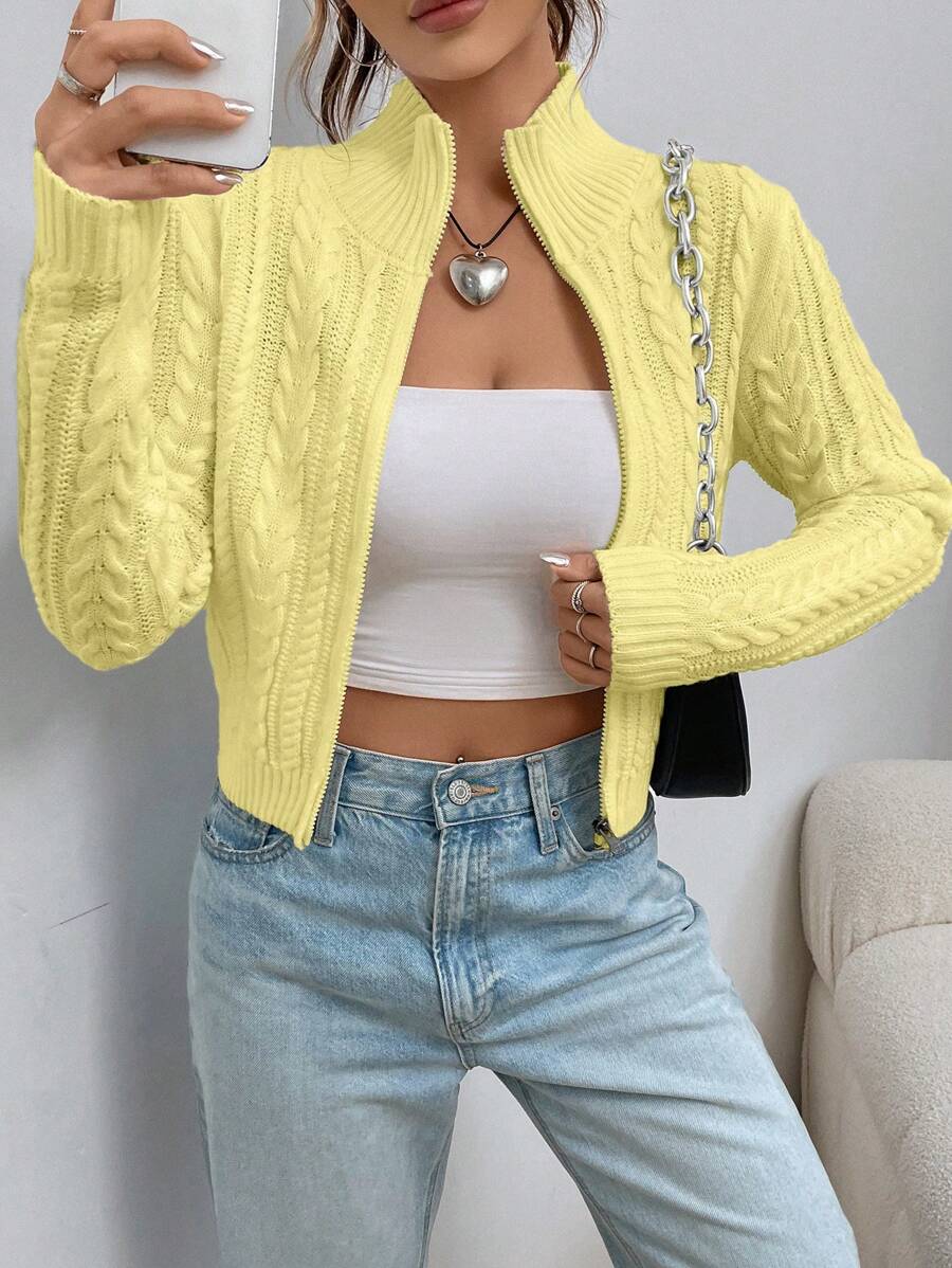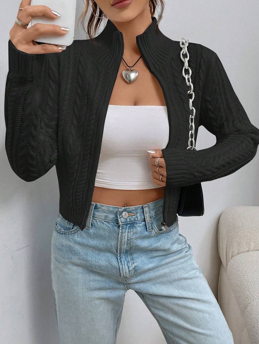 Cardigan corto casual da donna con colletto alla coreana, in tinta unita