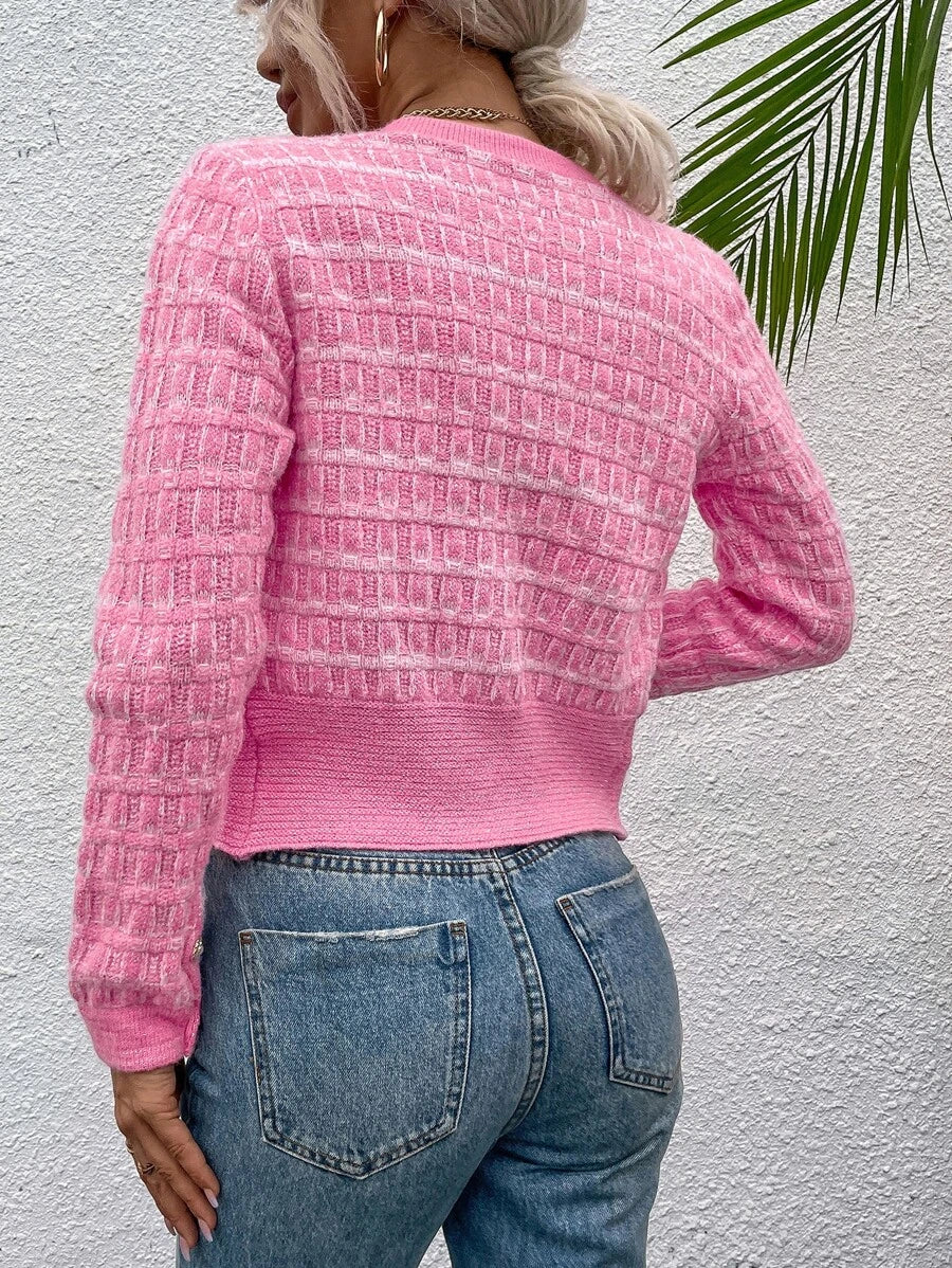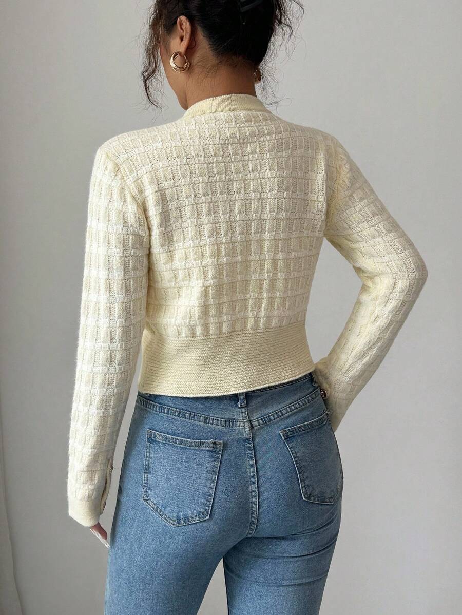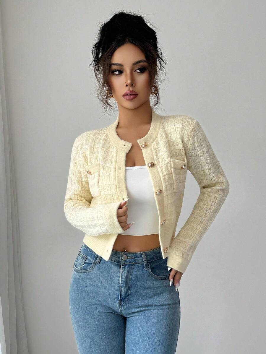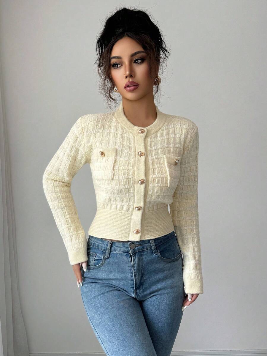Cardigan elegante a maniche lunghe con bottoni frontali e tasche, in stile classico