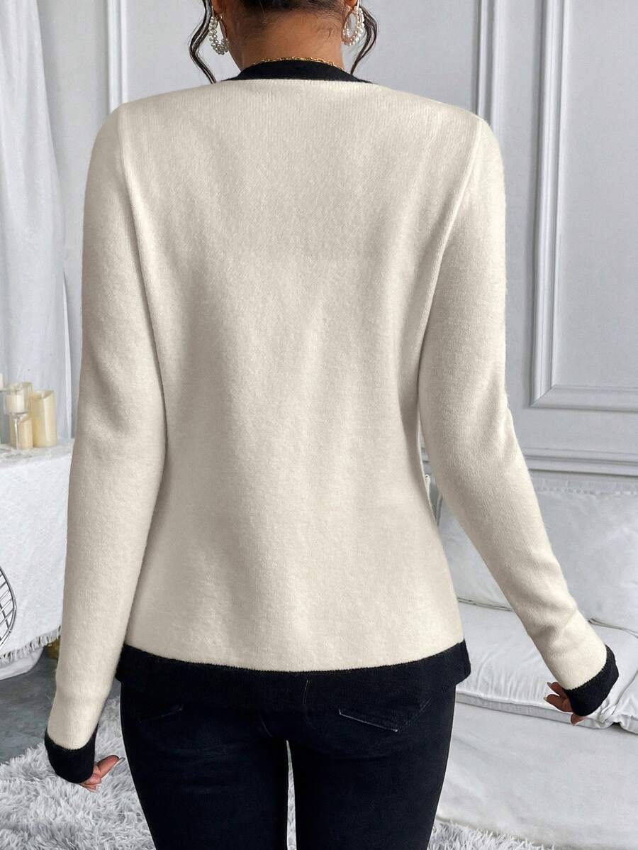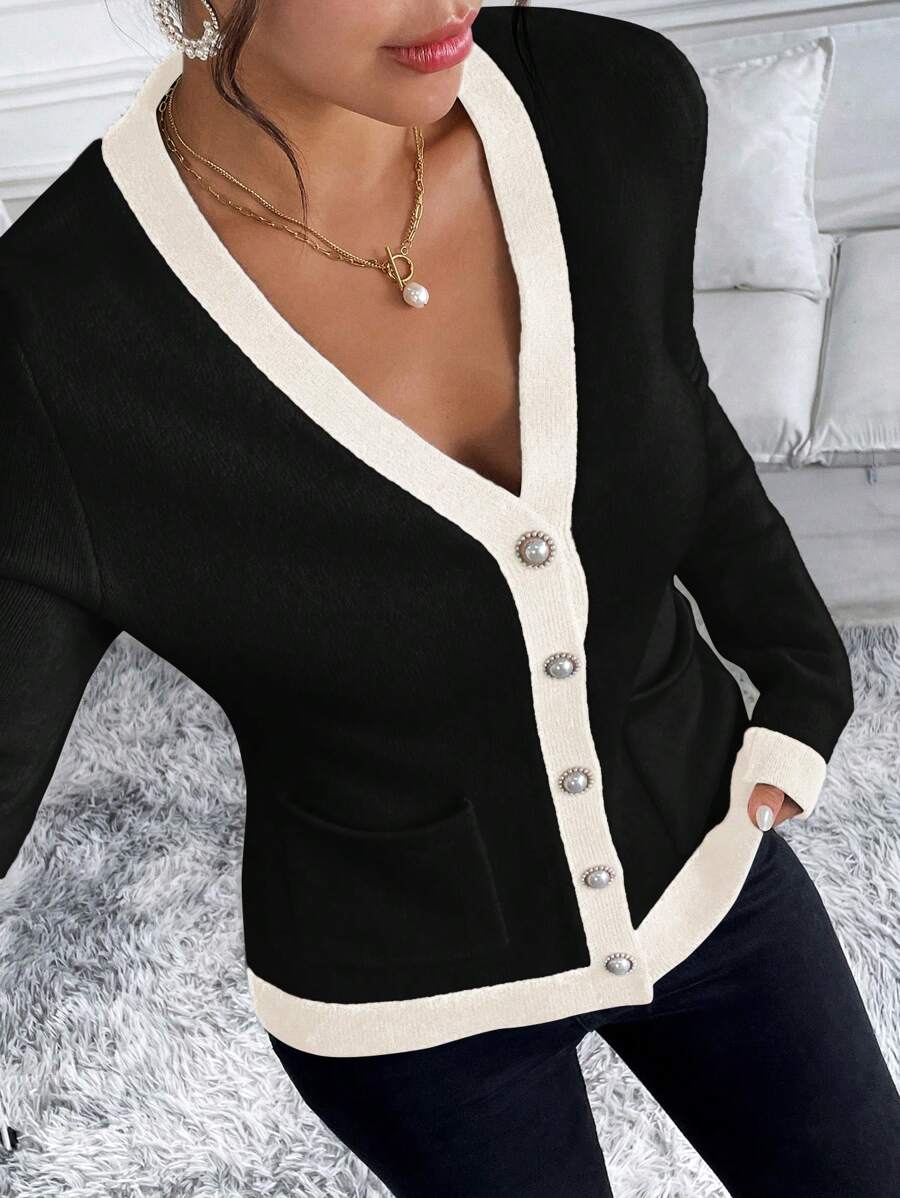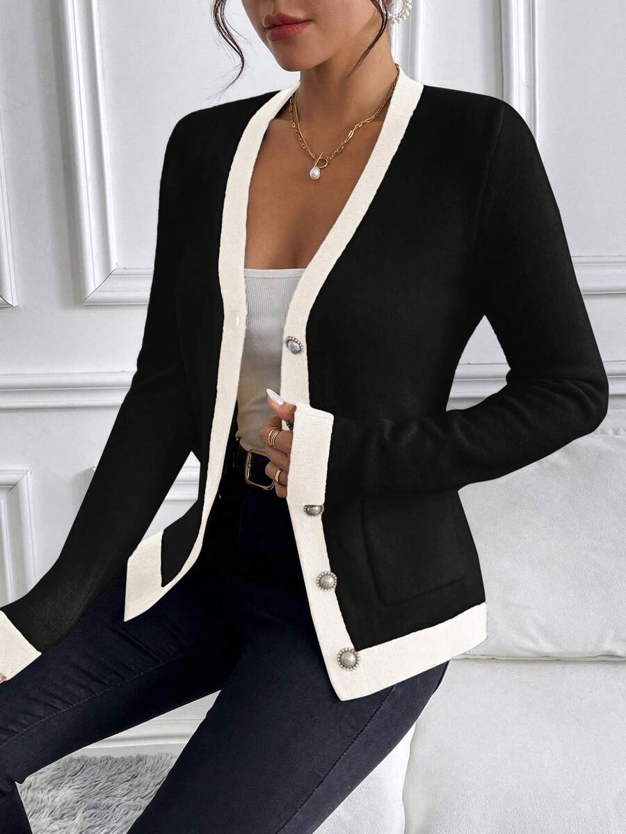 Cardigan elegante da donna invernale, con collo a V, in stile classico